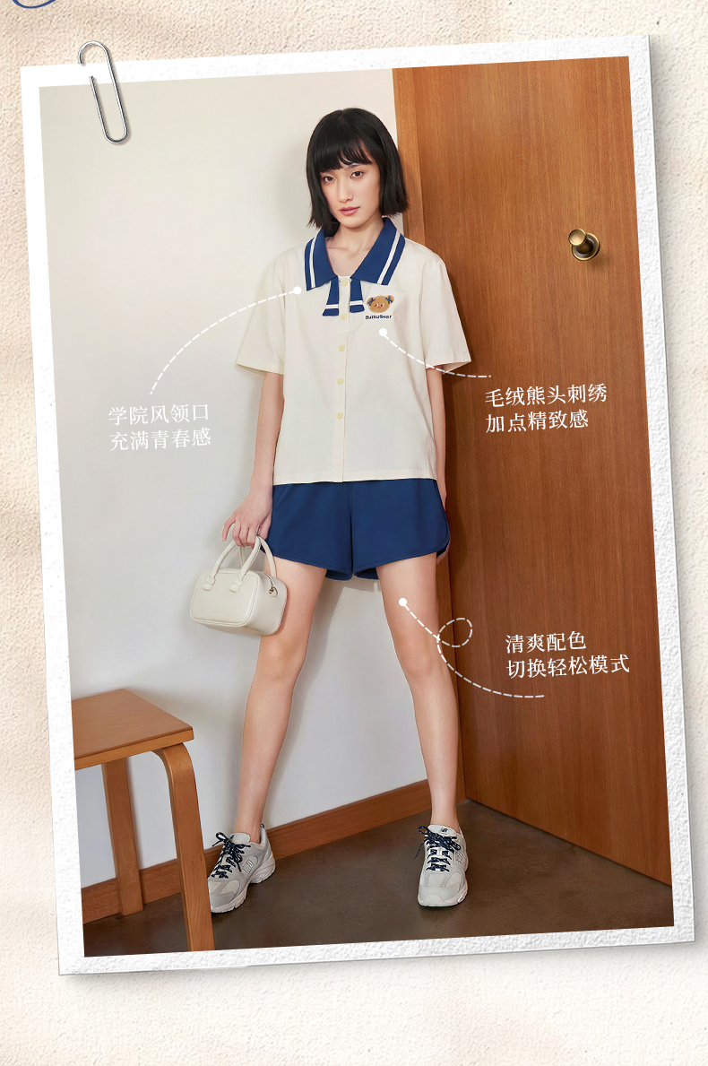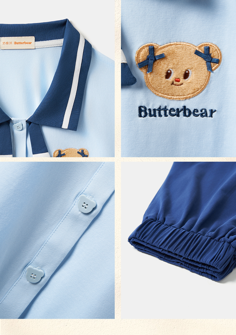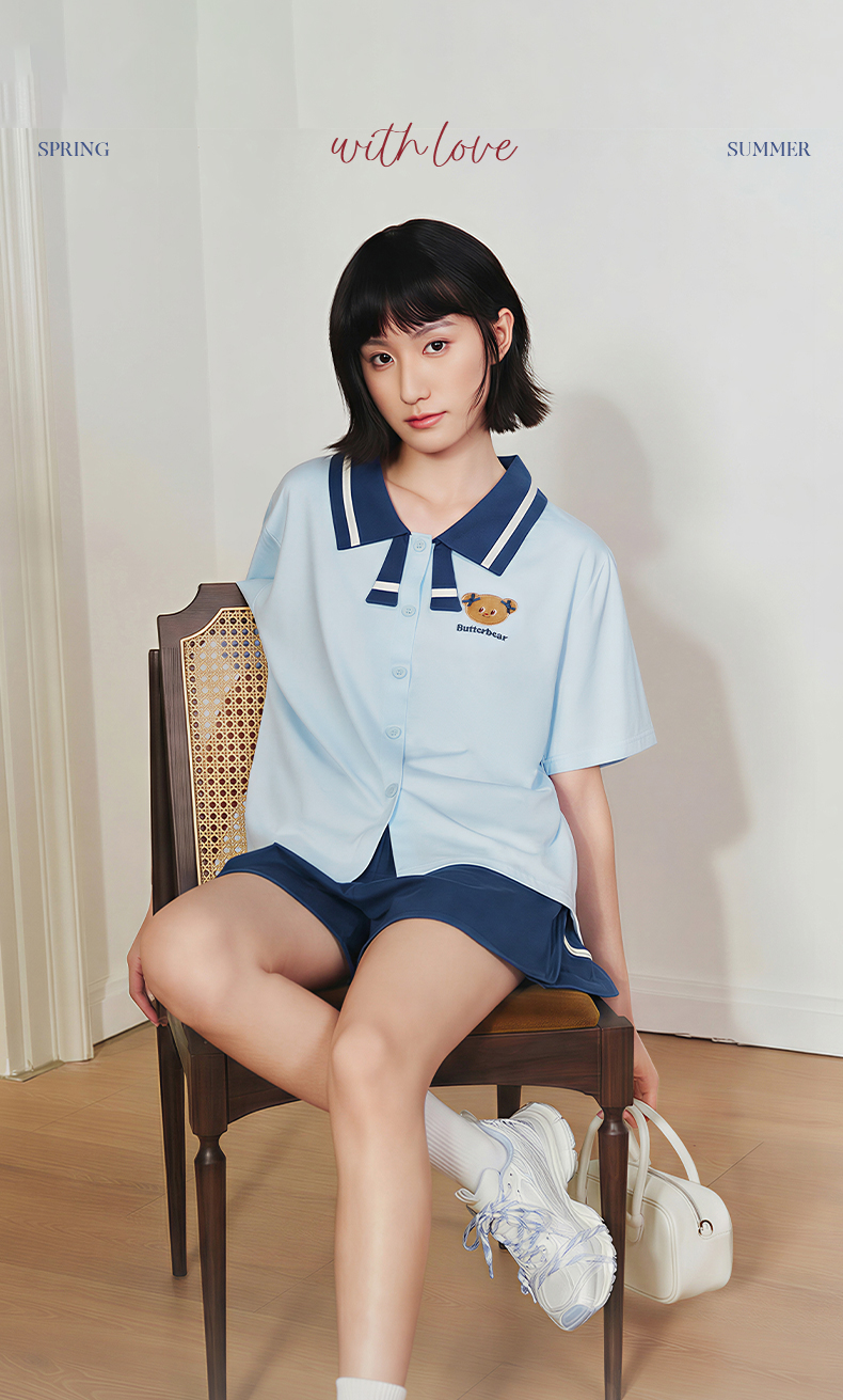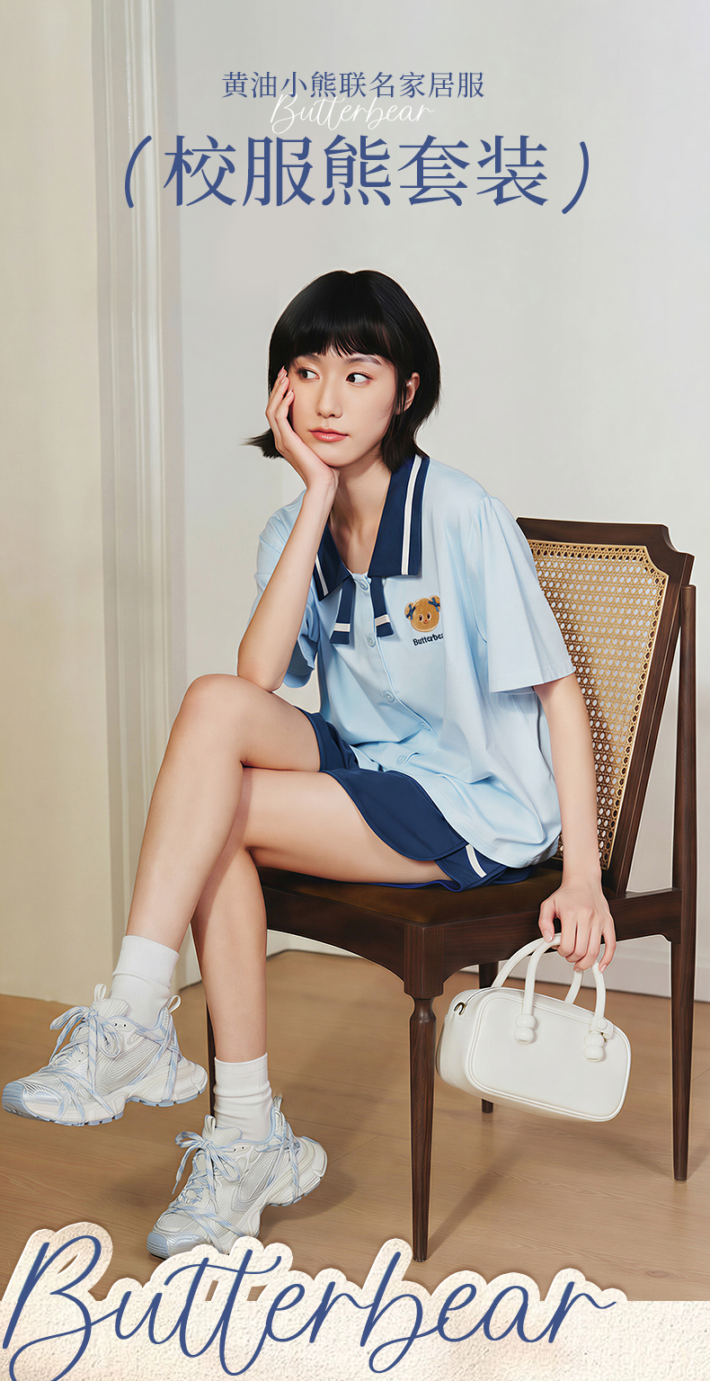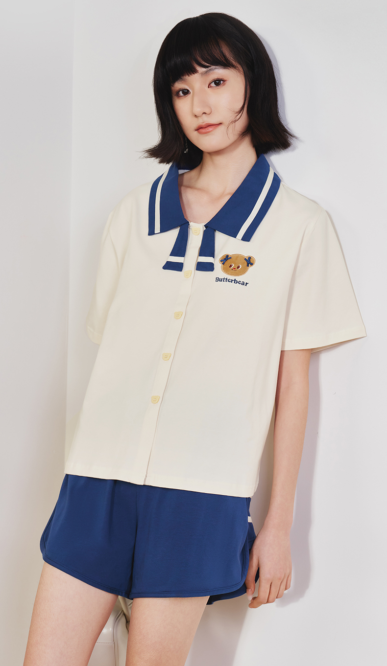 奶糖派夏季睡衣短袖女学院风黄油小熊联名校服熊家居服套装可外出