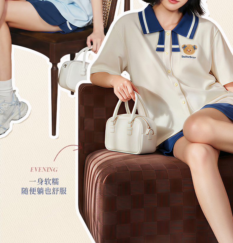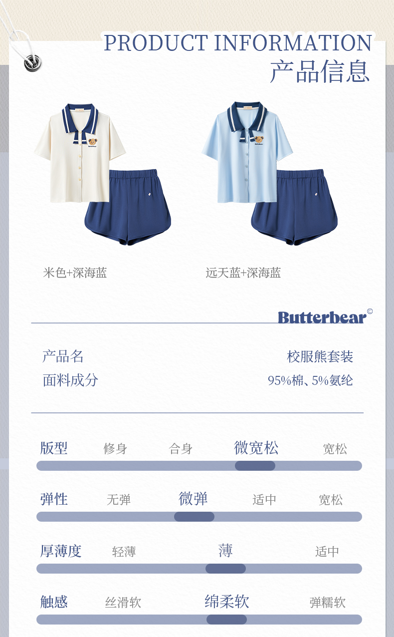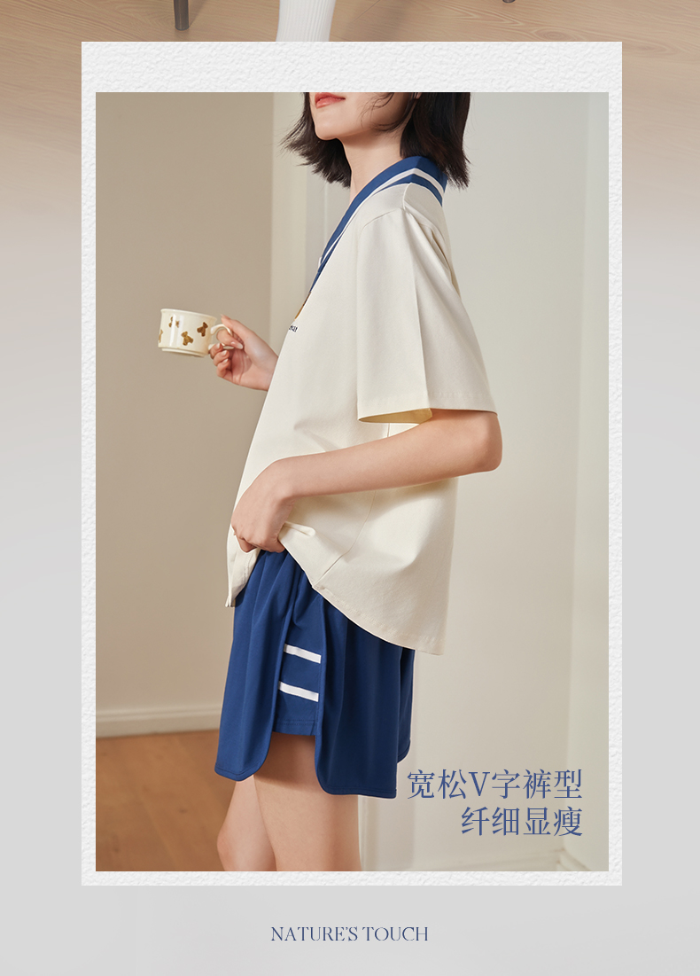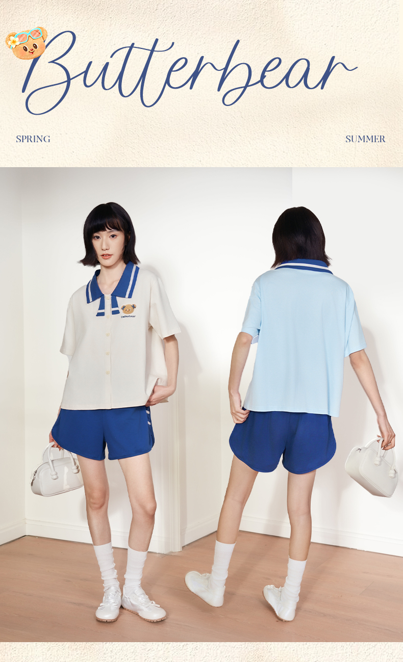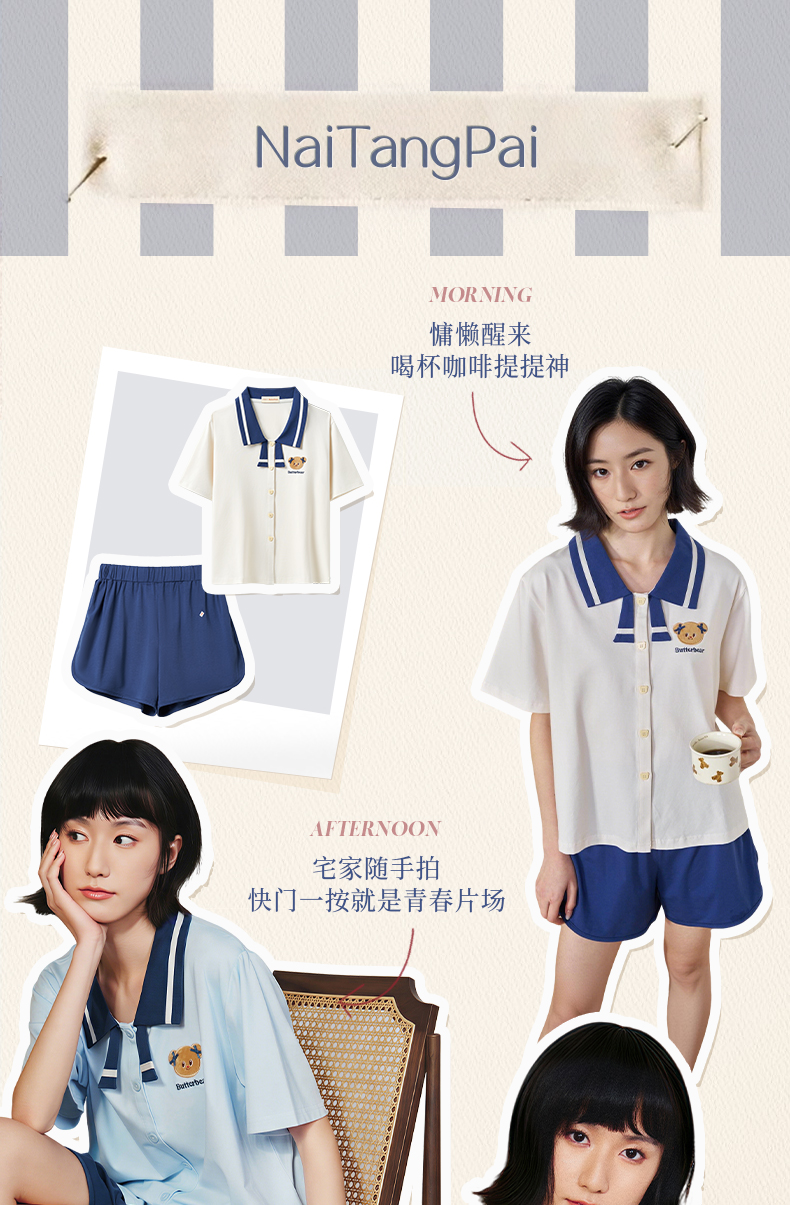 奶糖派夏季睡衣短袖女学院风黄油小熊联名校服熊家居服套装可外出