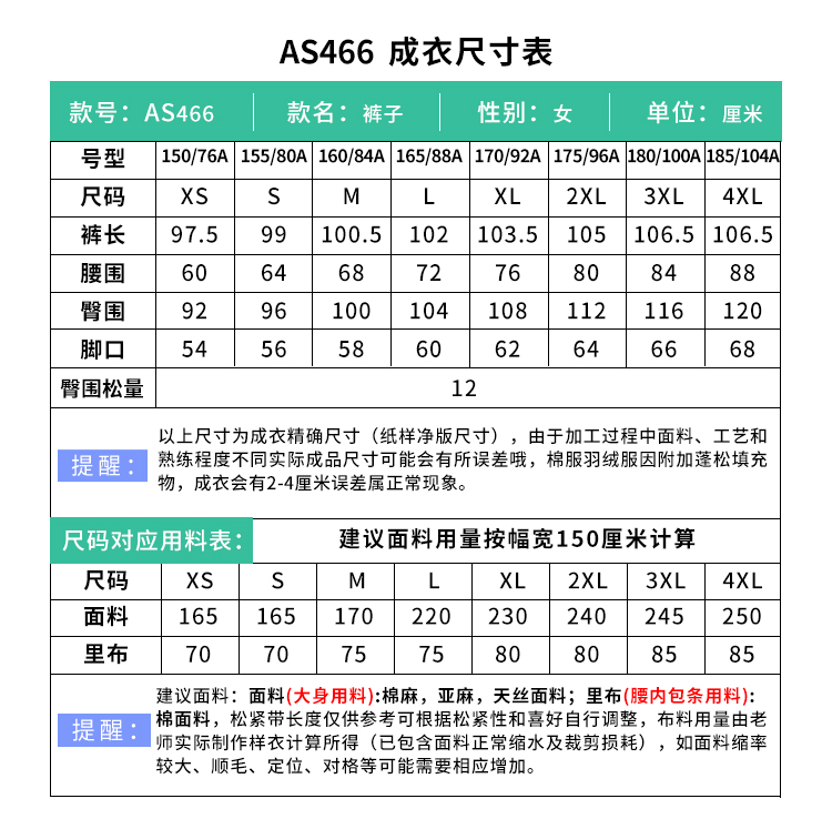裁缝学苑AS466高腰亚麻阔腿裤纸样女装窄版直筒拖地裤版型图纸