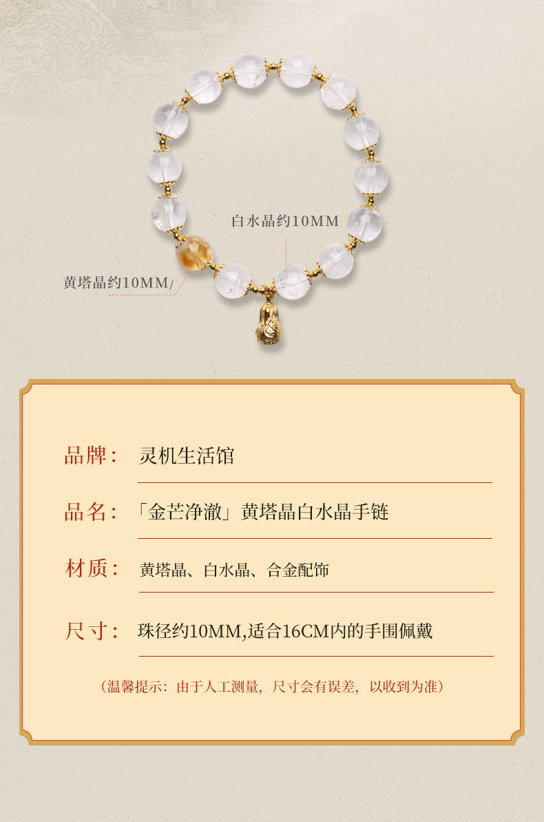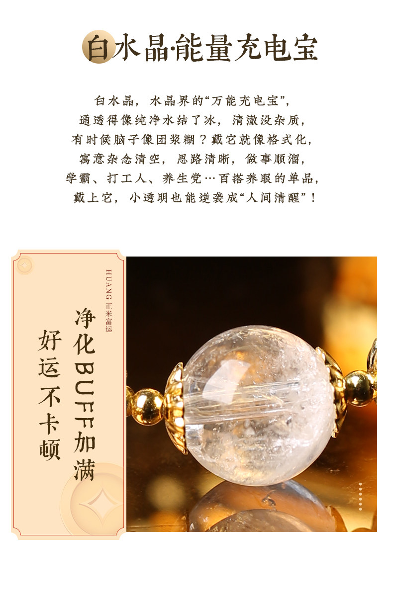 【祈愿吉品】「金芒净澈」黄塔晶白水晶手链