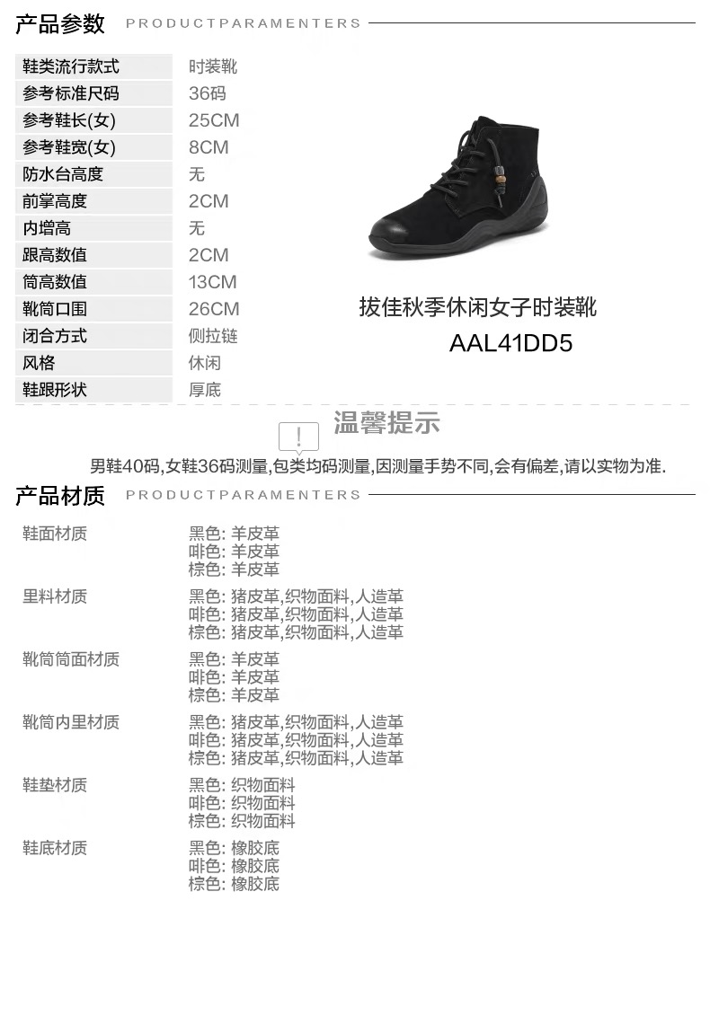 【云粉节】【拔佳】BF楼Bata休闲靴女2025冬款羊皮休闲通勤高帮鞋AAL41DD5 吊牌价1059活动价699