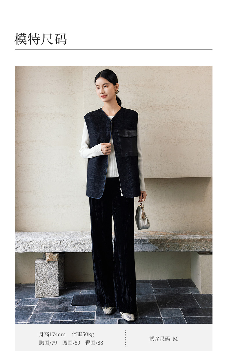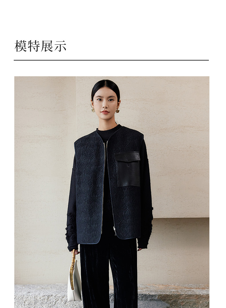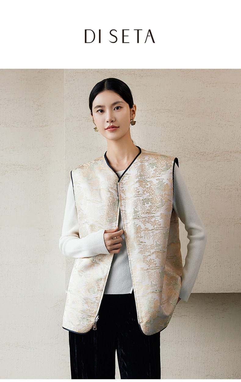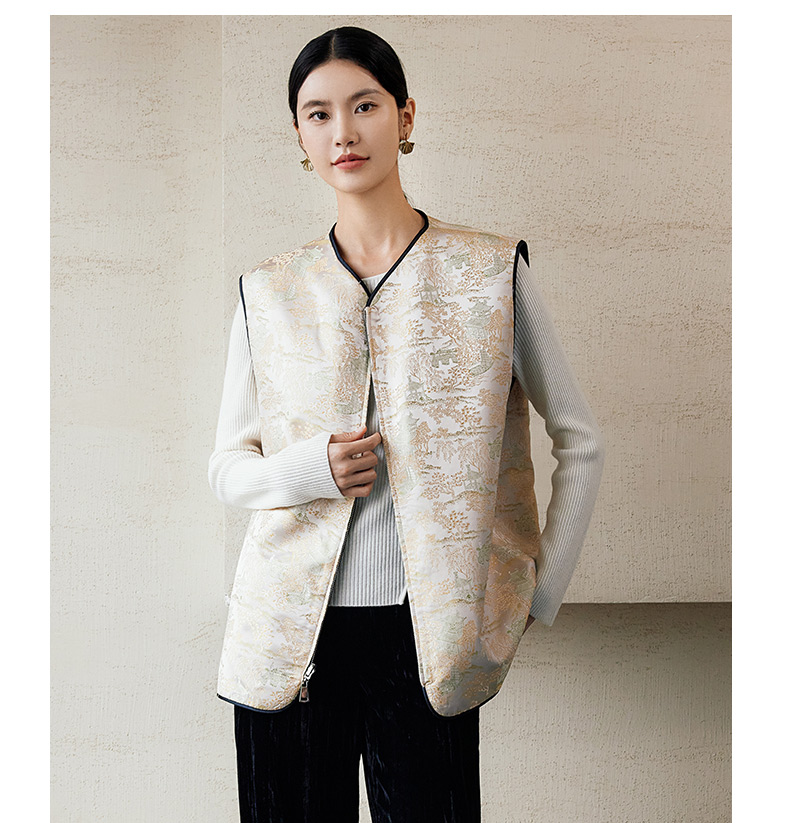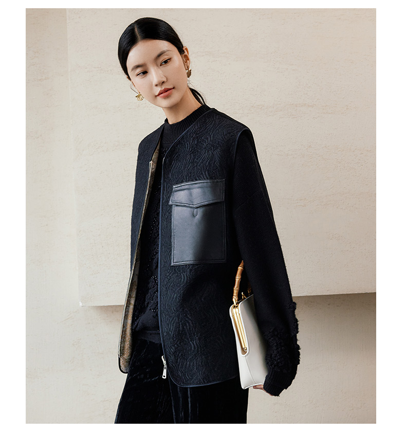 玳莎两面穿中式马夹女2024年冬季复古拼接面料设计感宽松V领外套 ED37002