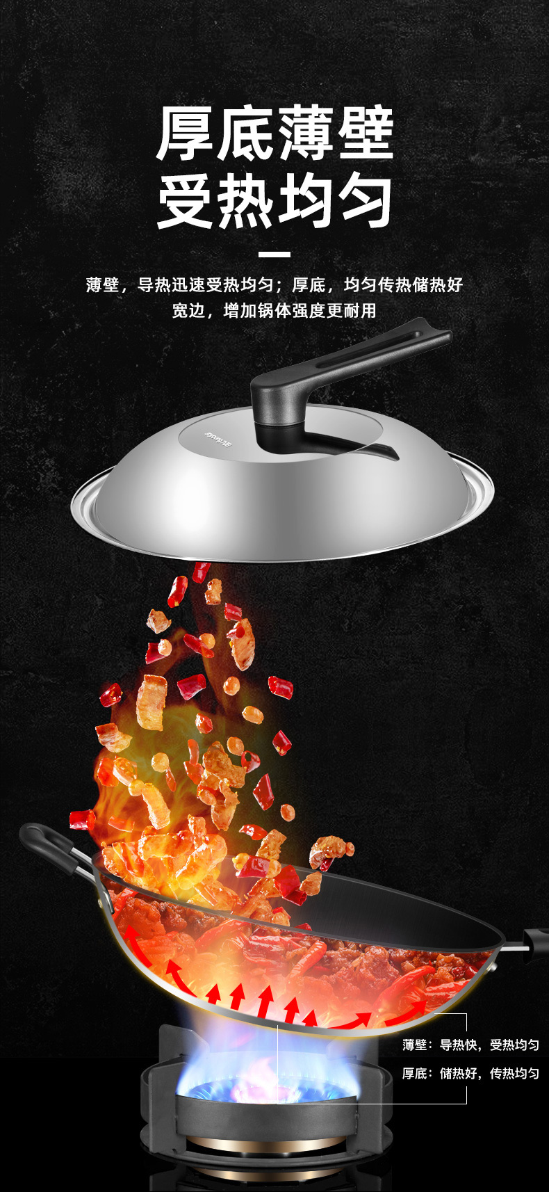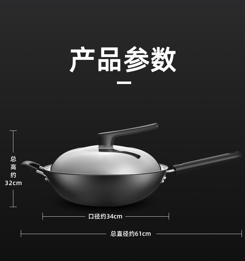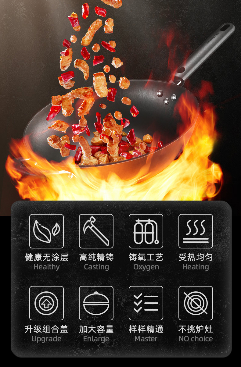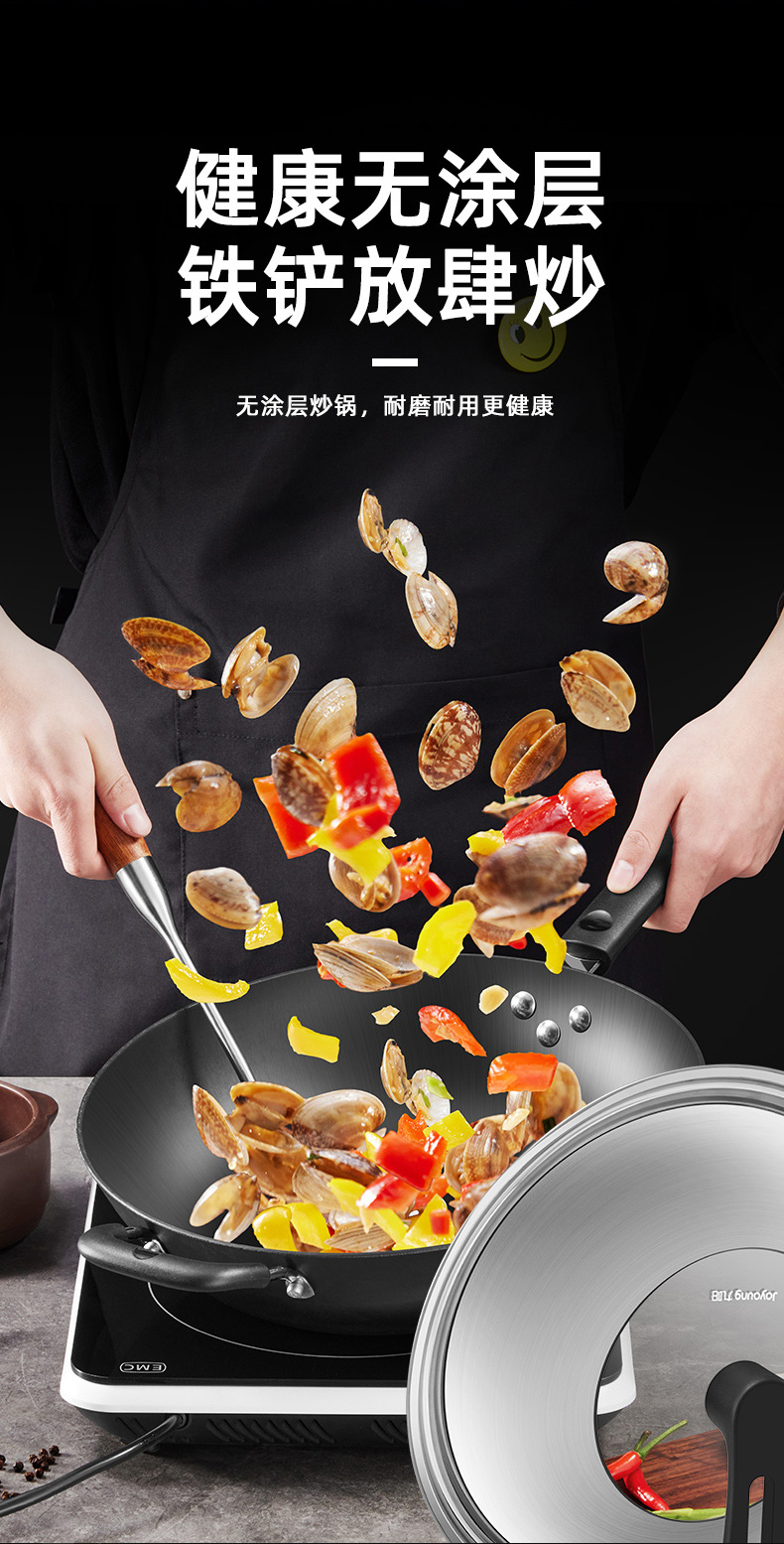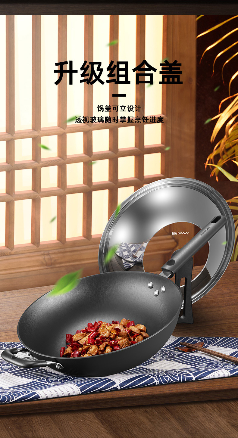 【铸铁真不锈】Joyoung/九阳CZH3407铁釜一体炒锅无涂层防刮耐磨组合盖34cm