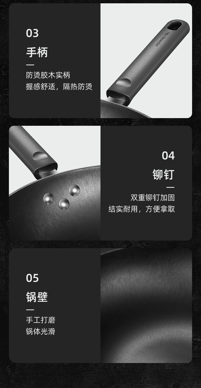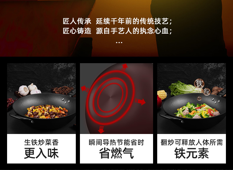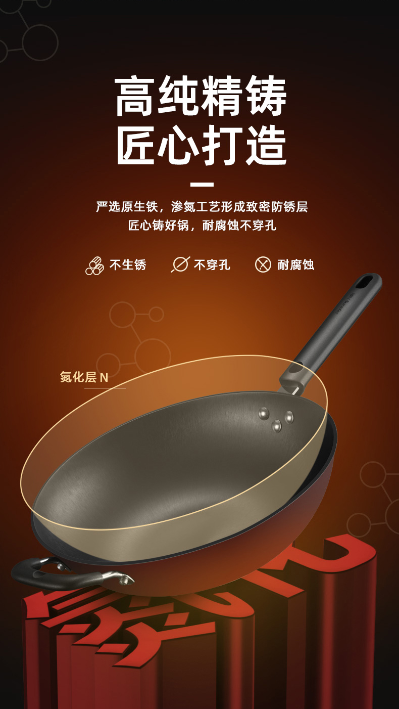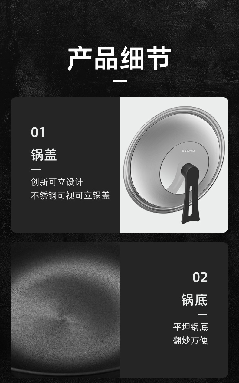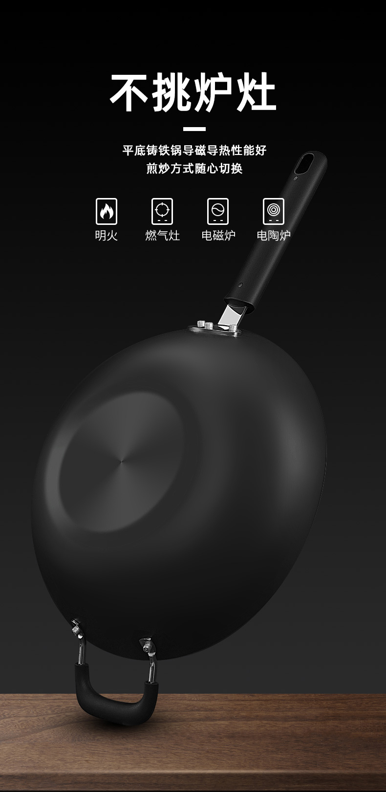 【铸铁真不锈】Joyoung/九阳CZH3407铁釜一体炒锅无涂层防刮耐磨组合盖34cm