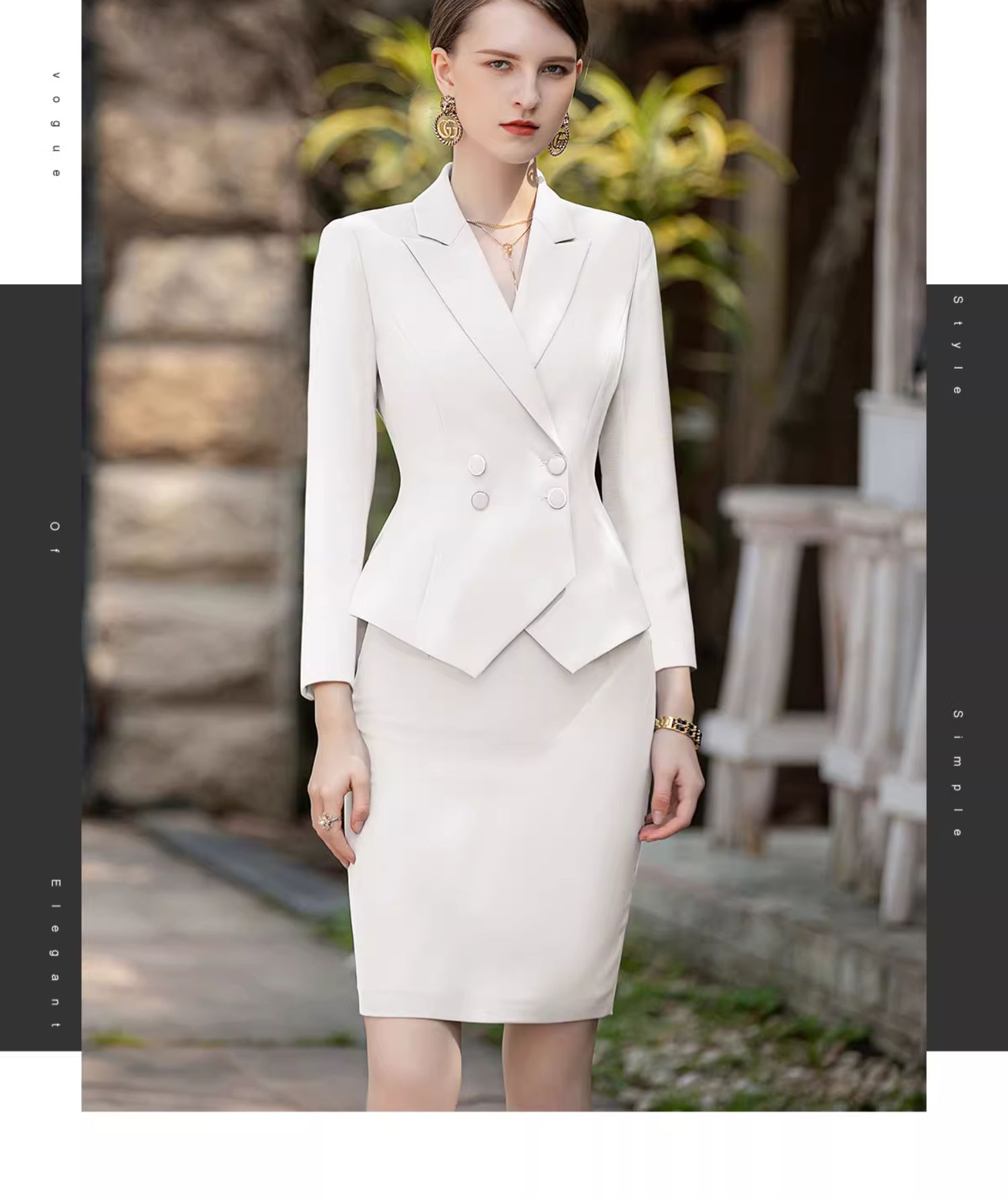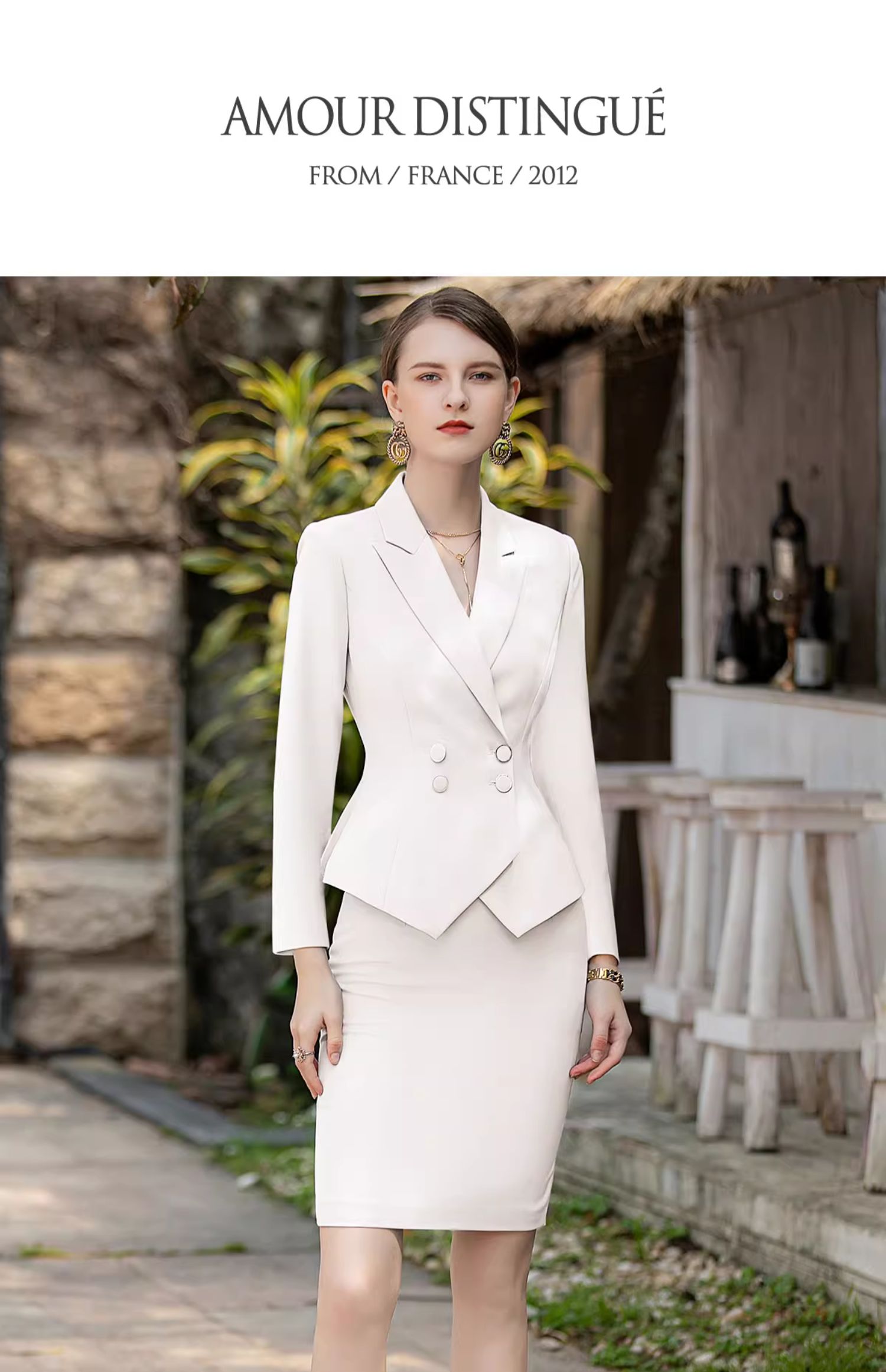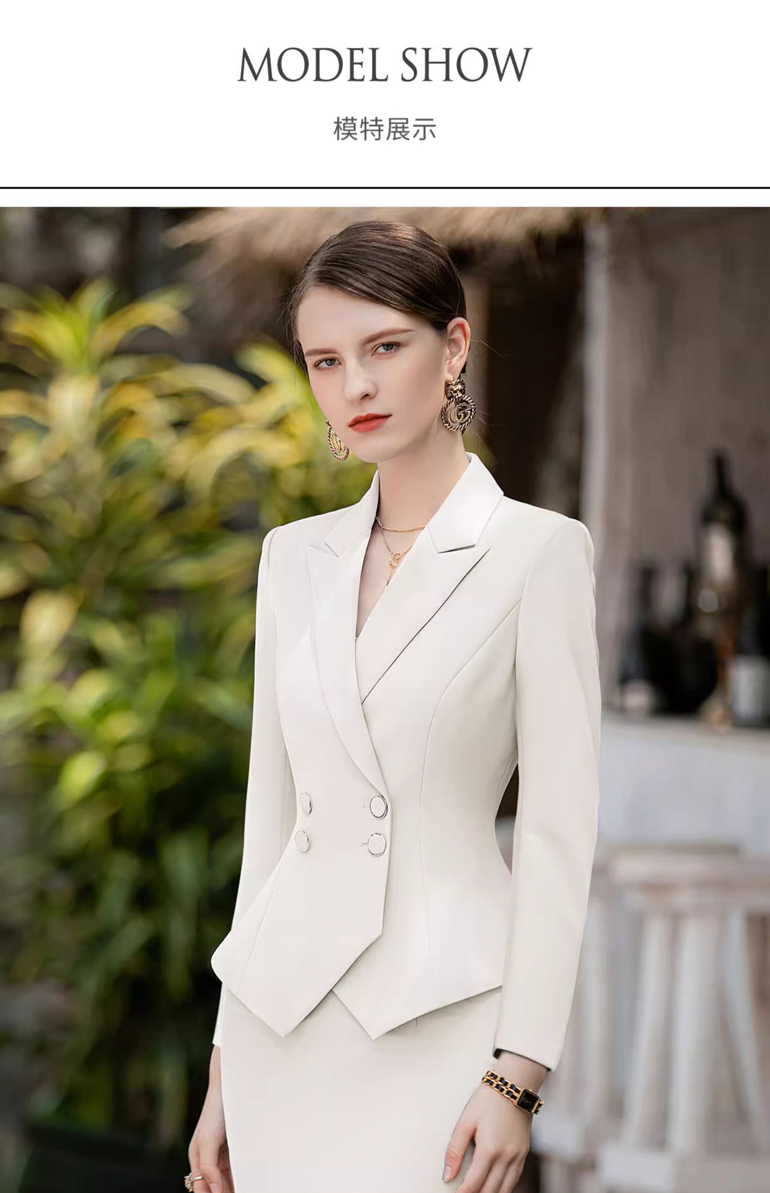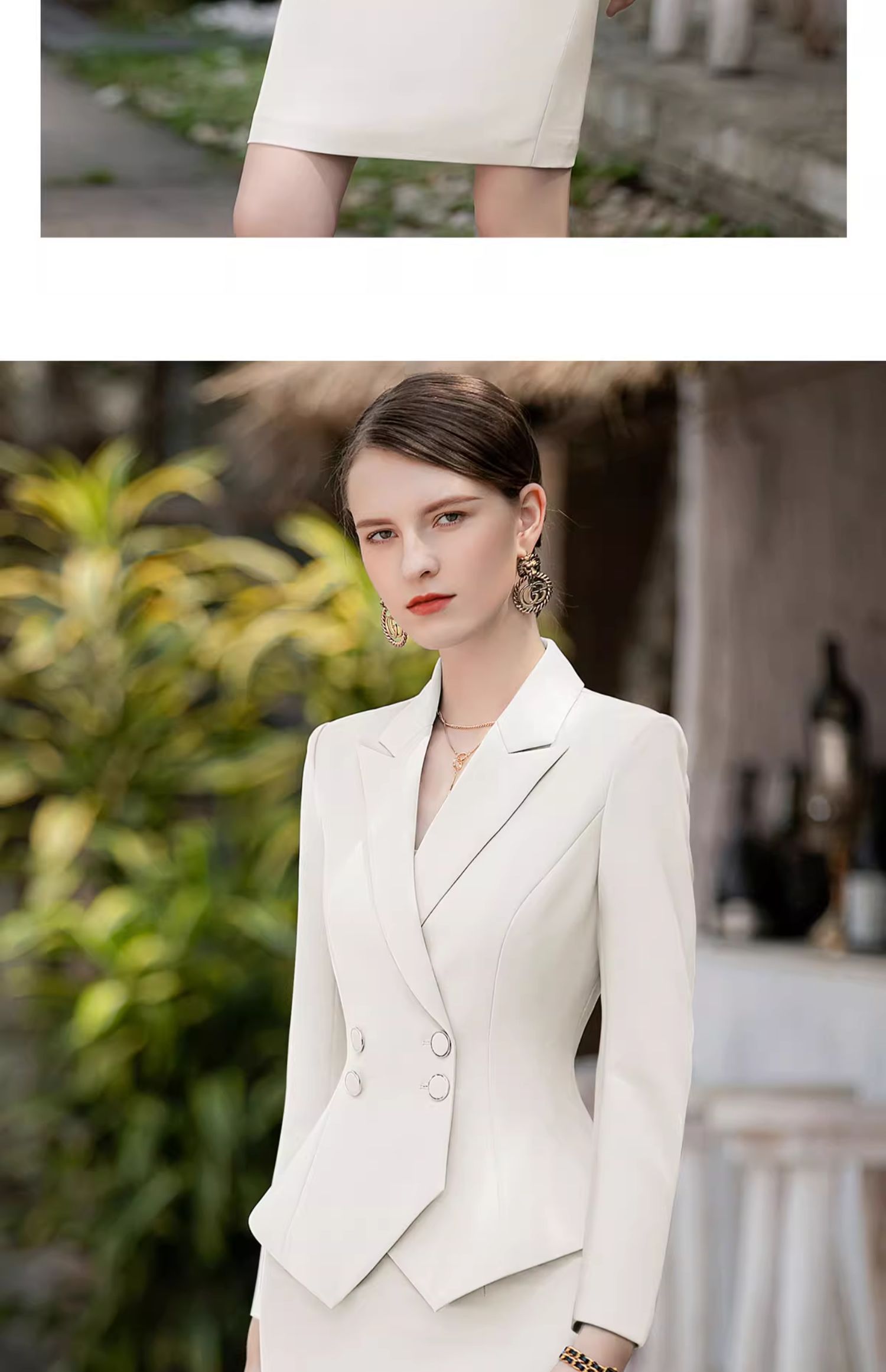 AD高端白色西装套装女收腰显瘦西服小洋装两件套新款主持人正装