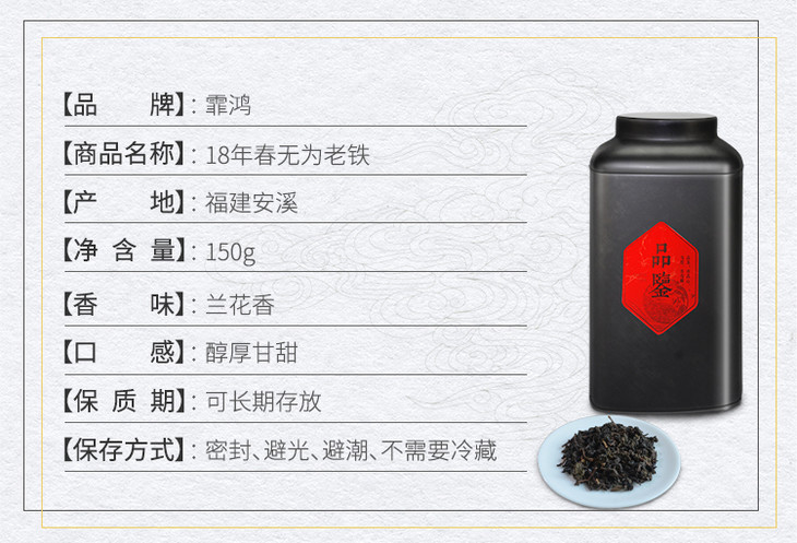 霏鸿茶叶【无为老铁】 荒野茶树自然农法 古早味老铁传统工艺安溪铁观音 特级浓香型150g