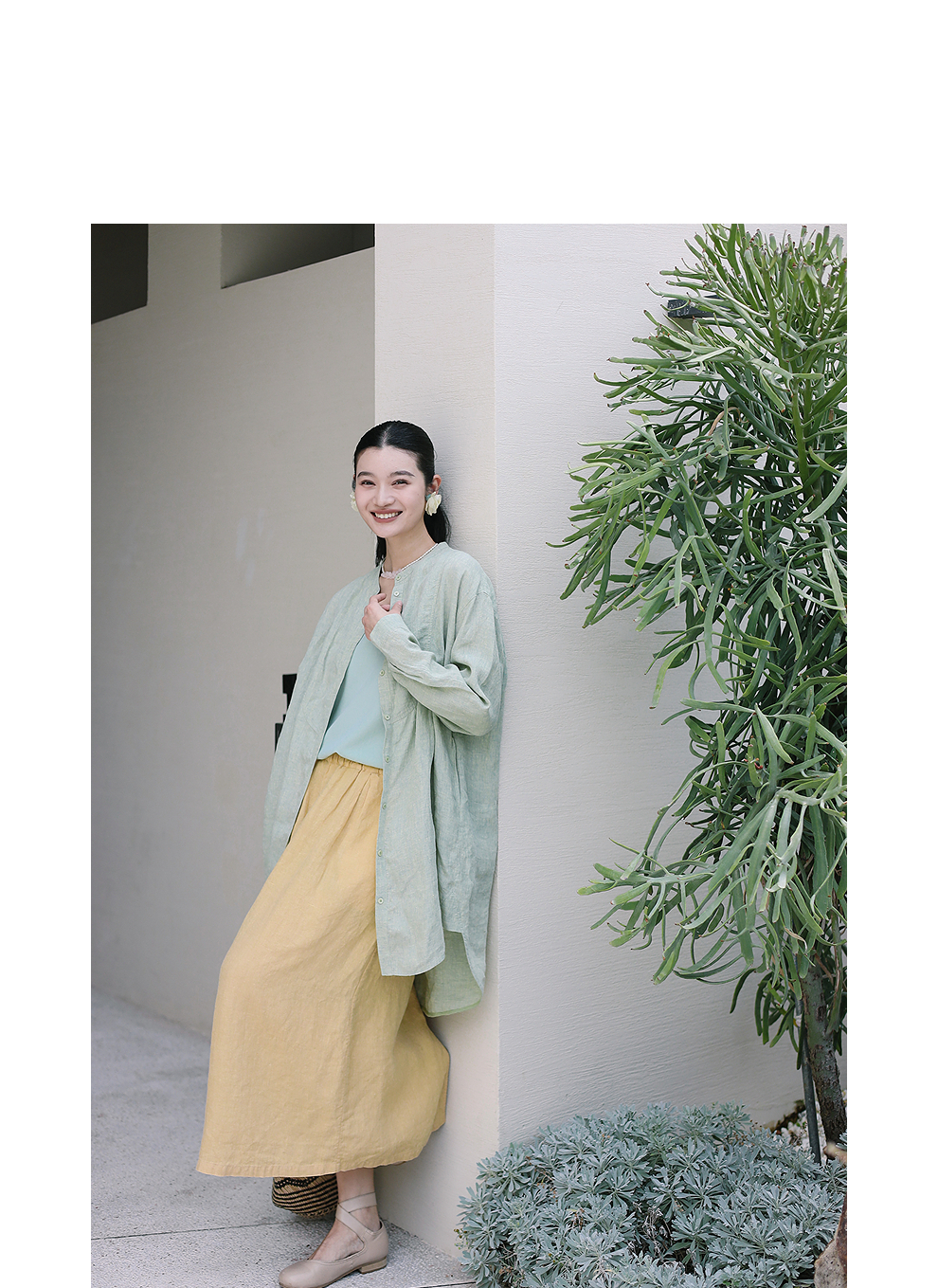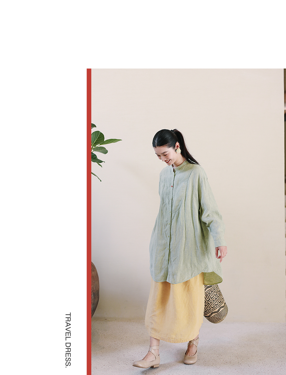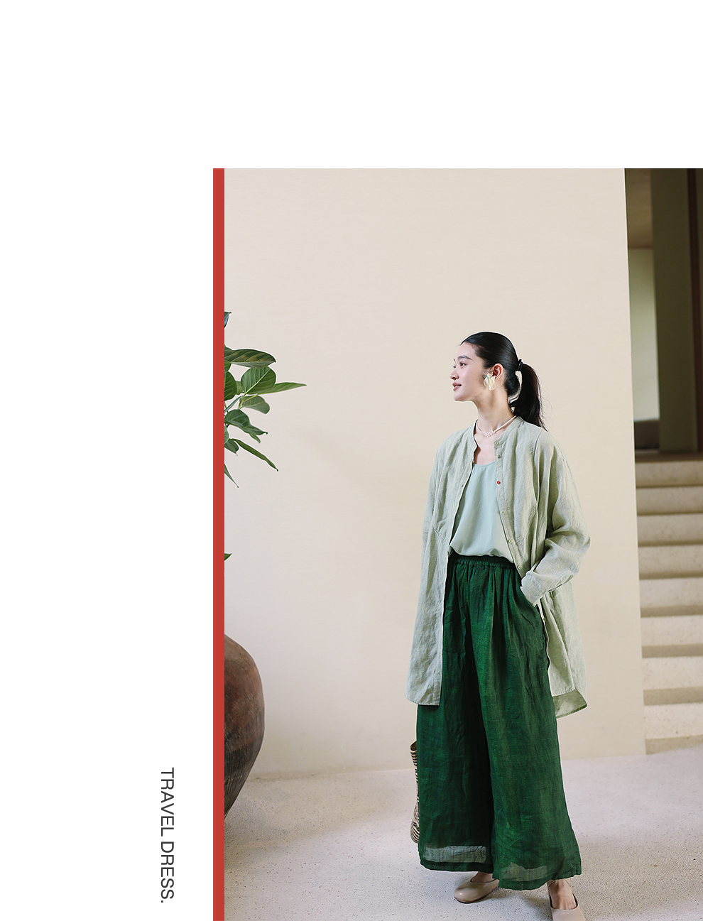 以天然亚麻为载体,融合热烈色彩与自在剪裁为身在城市、心怀远方的女性提供兼具美学与舒适的旅行着装