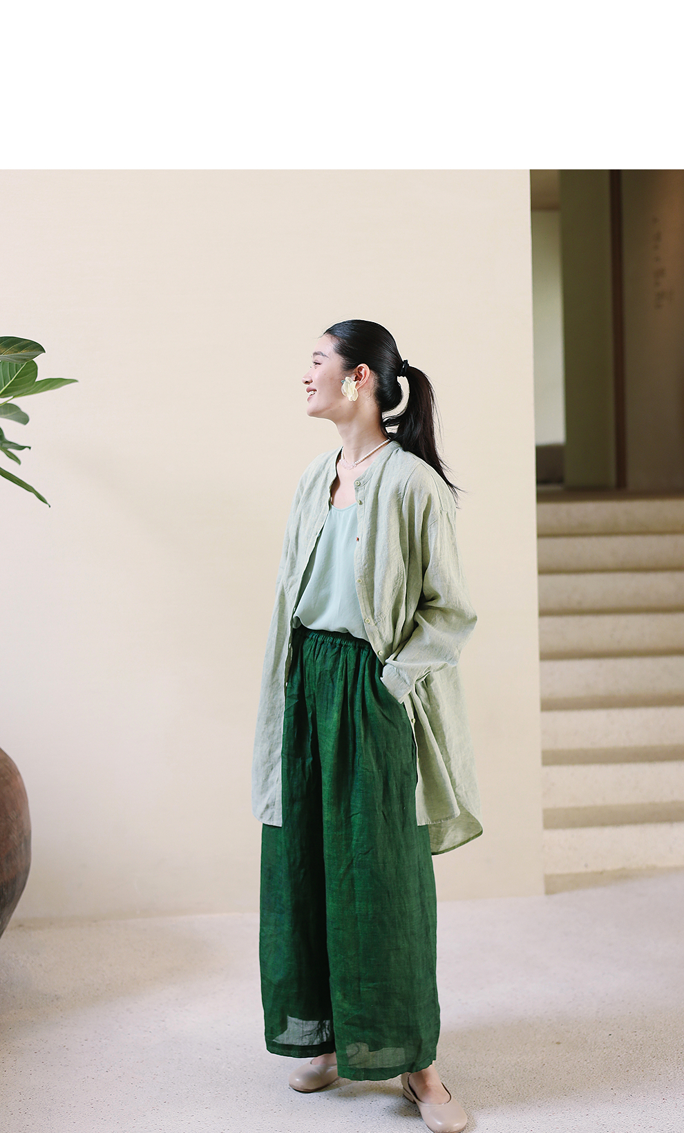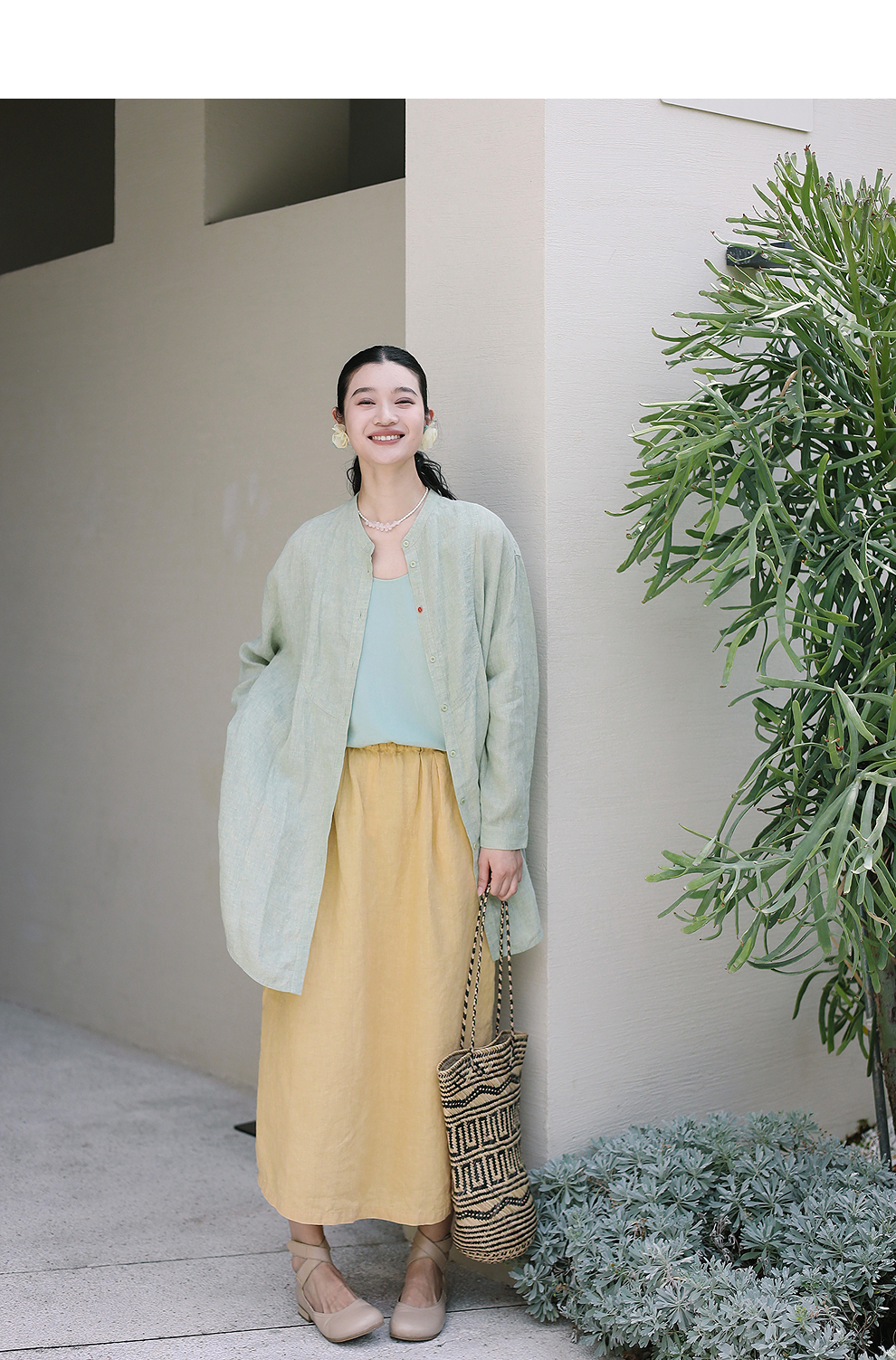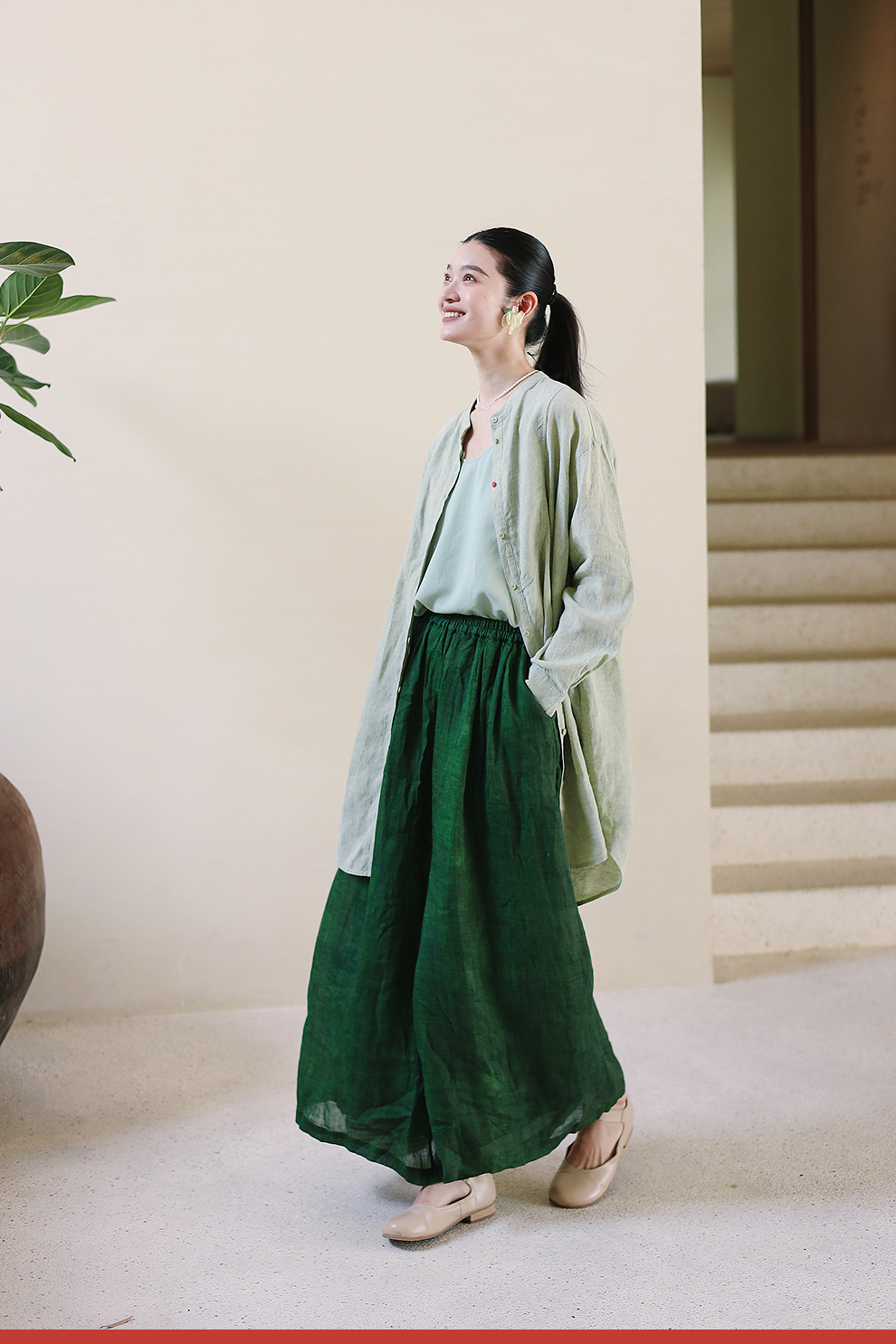 以天然亚麻为载体,融合热烈色彩与自在剪裁为身在城市、心怀远方的女性提供兼具美学与舒适的旅行着装
