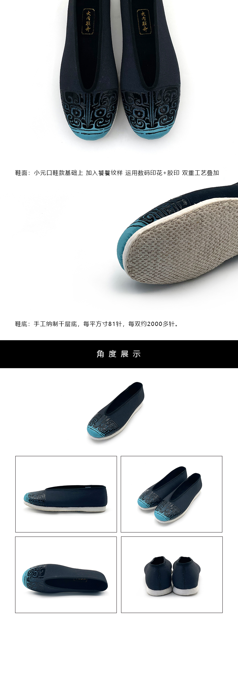 内联升男鞋单鞋千层底大内山海之饕餮小元口布鞋SH8529