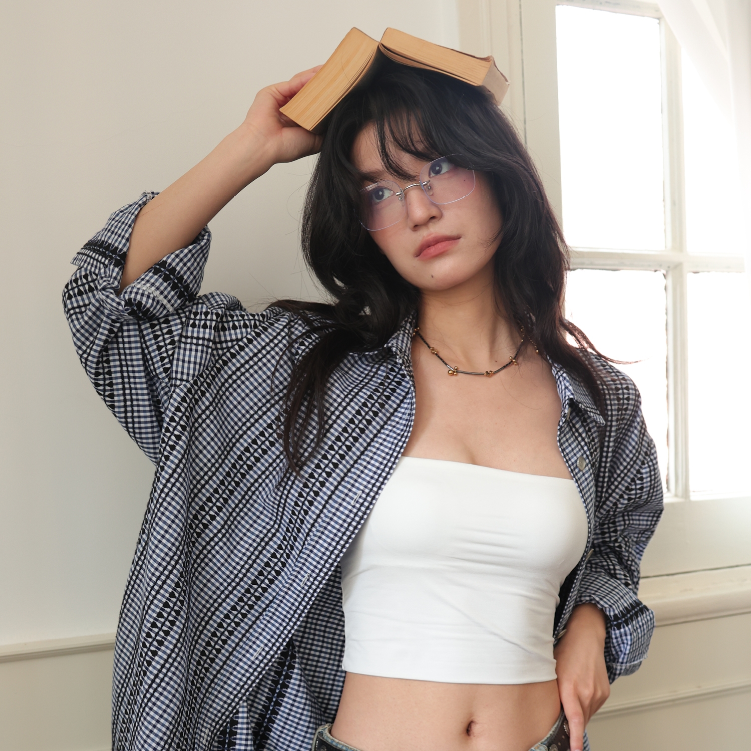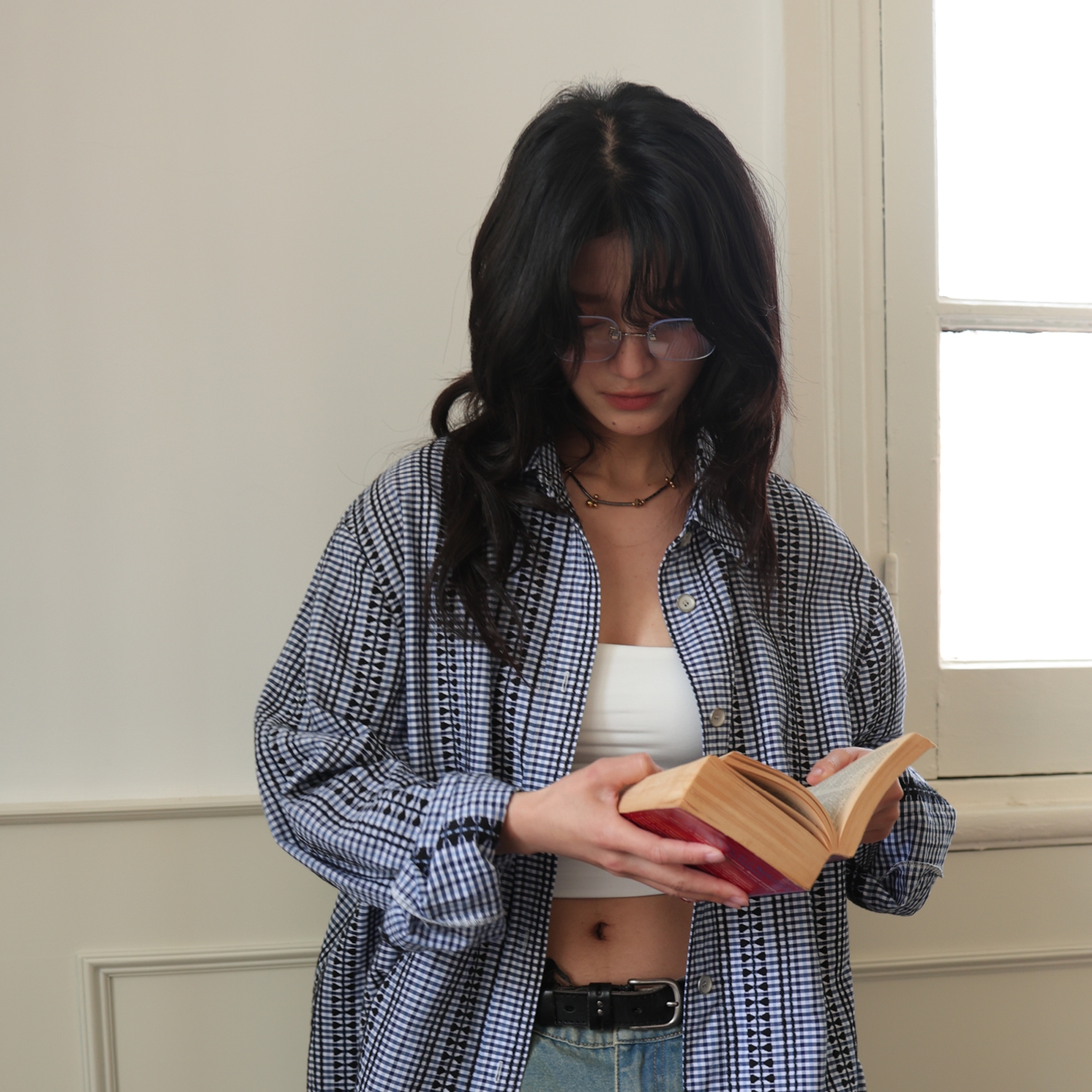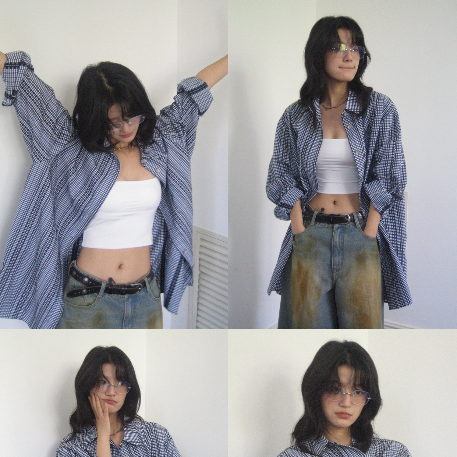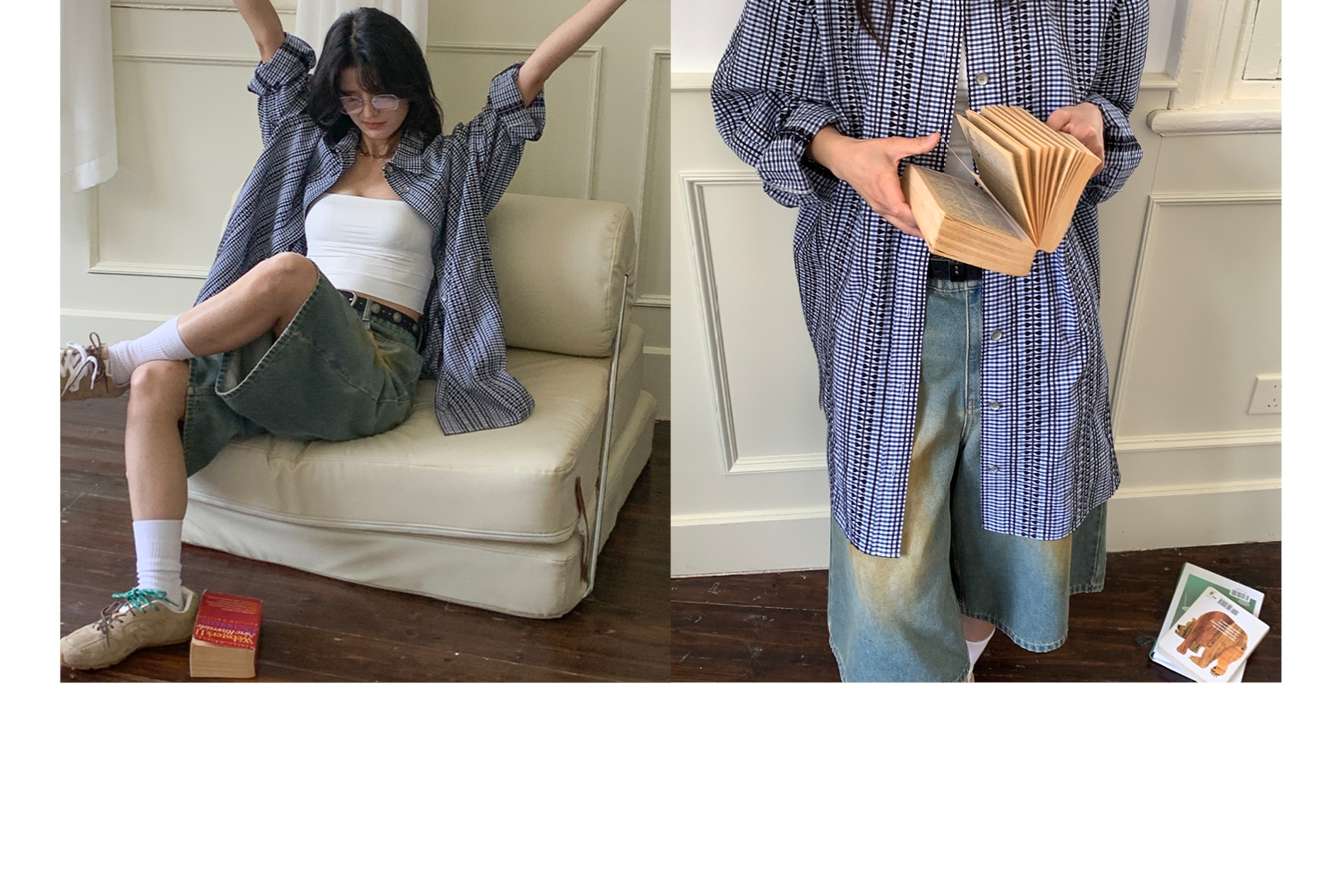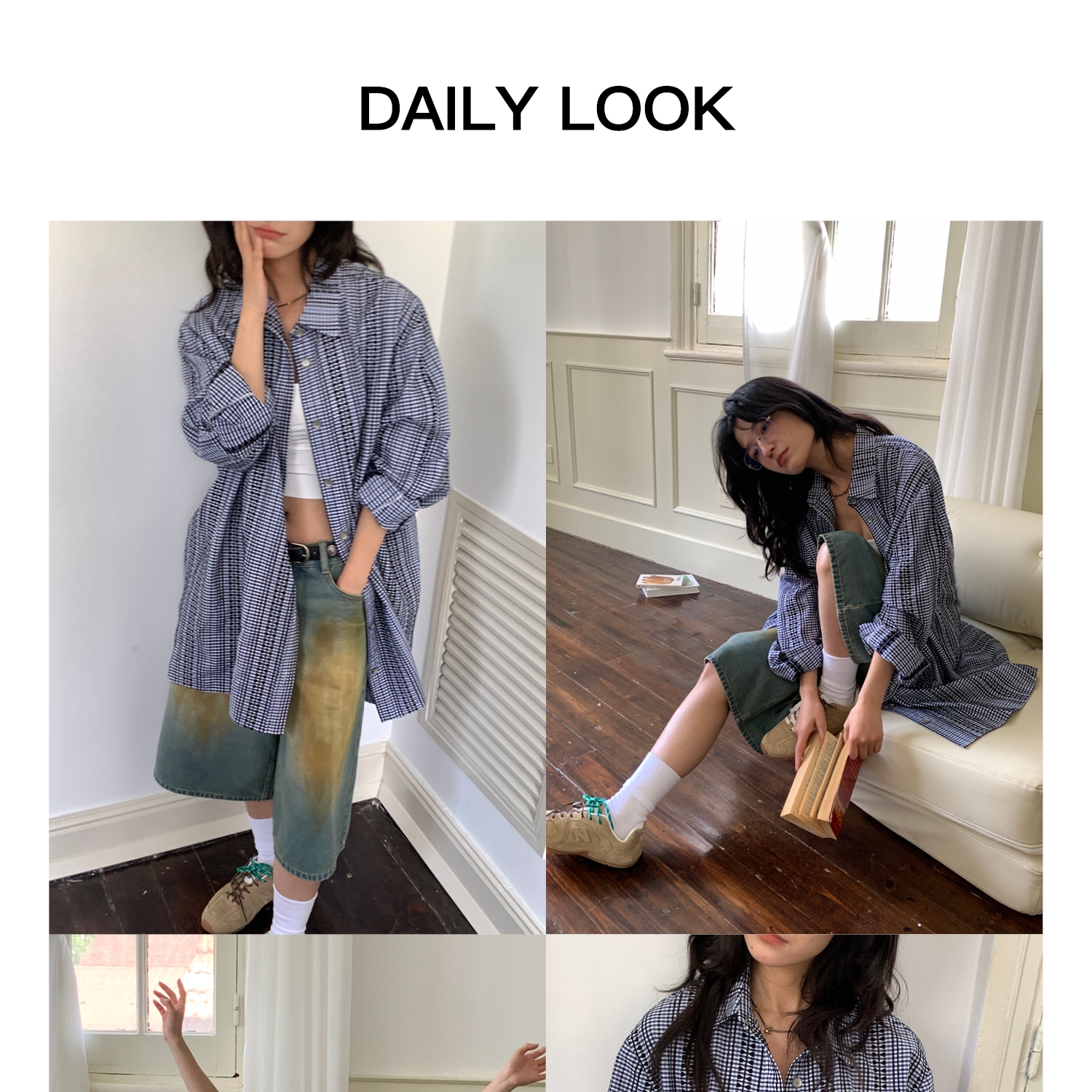 【399/2件自选福袋不退换】SUPERSCAPE刺绣格纹宽松衬衫裙