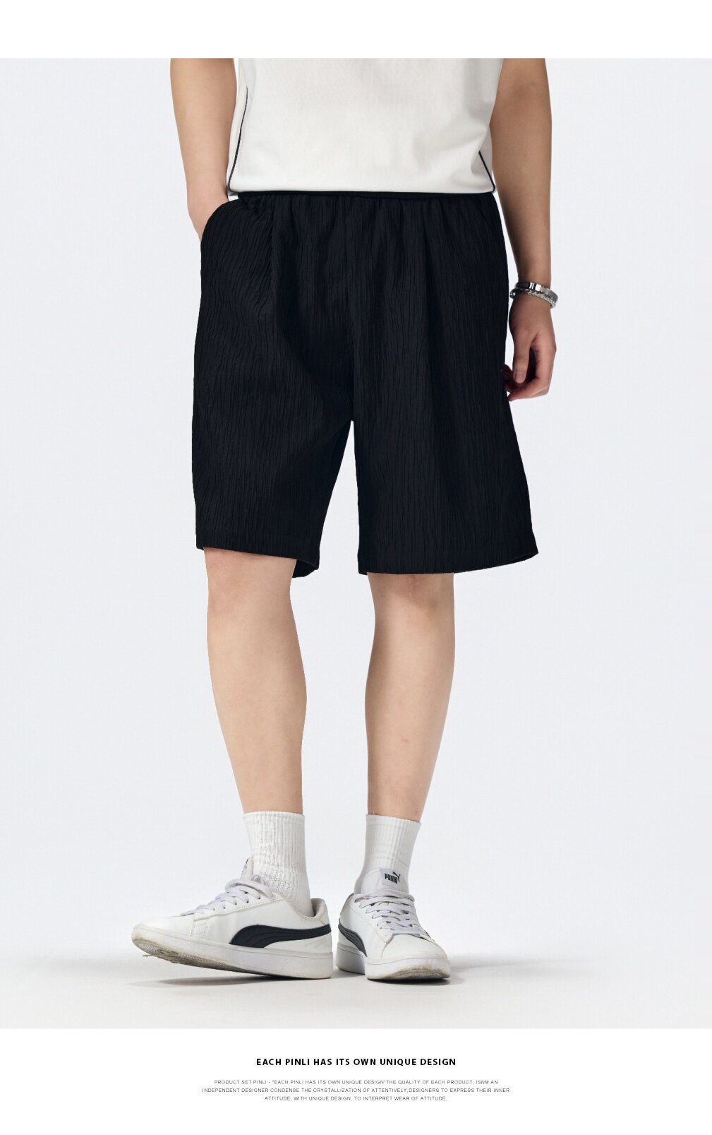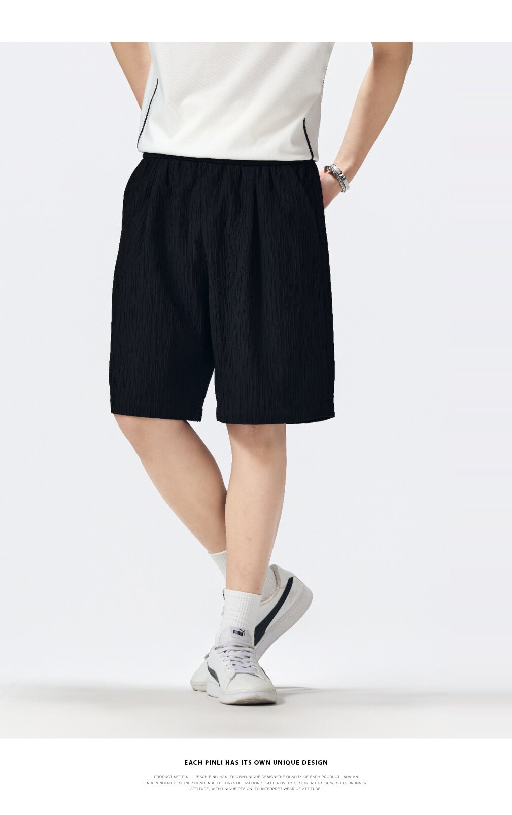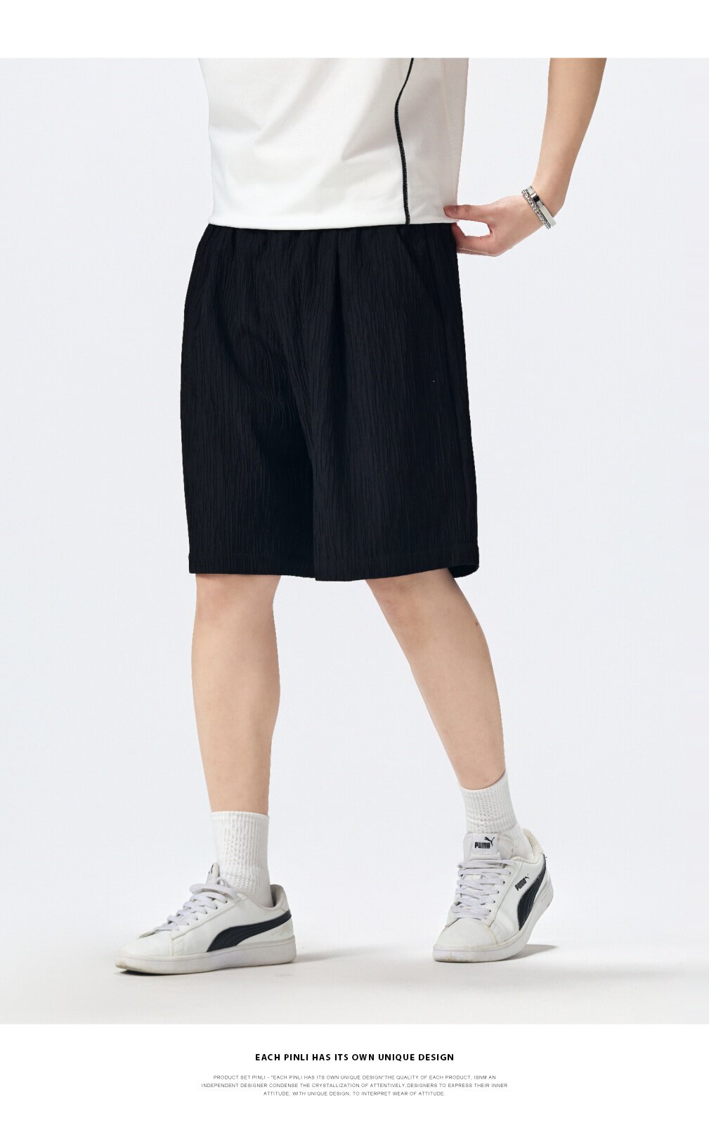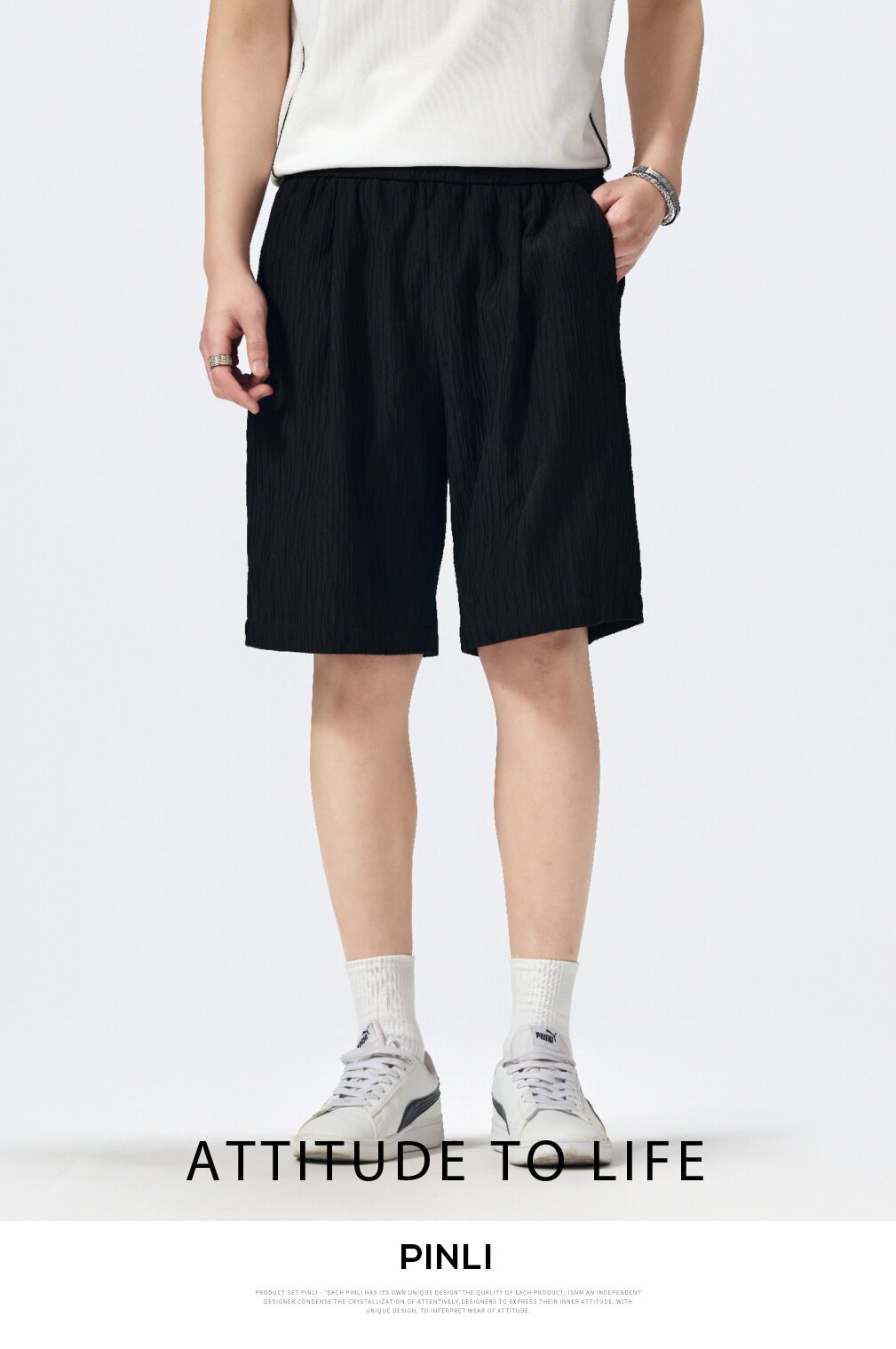 PINLI品立2026新款男士宽松纯色直筒休闲短裤五分裤夏季百搭潮牌B262117021