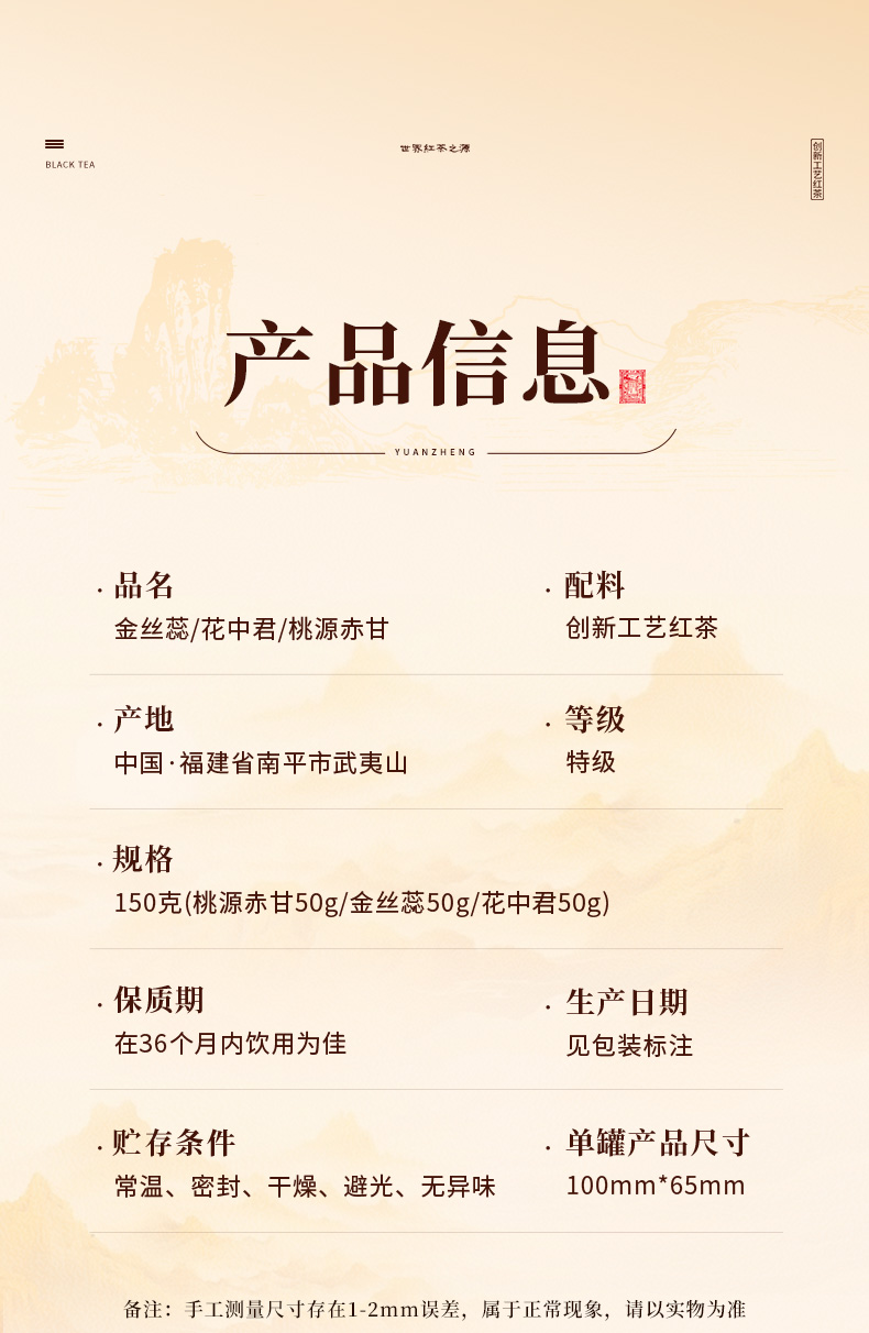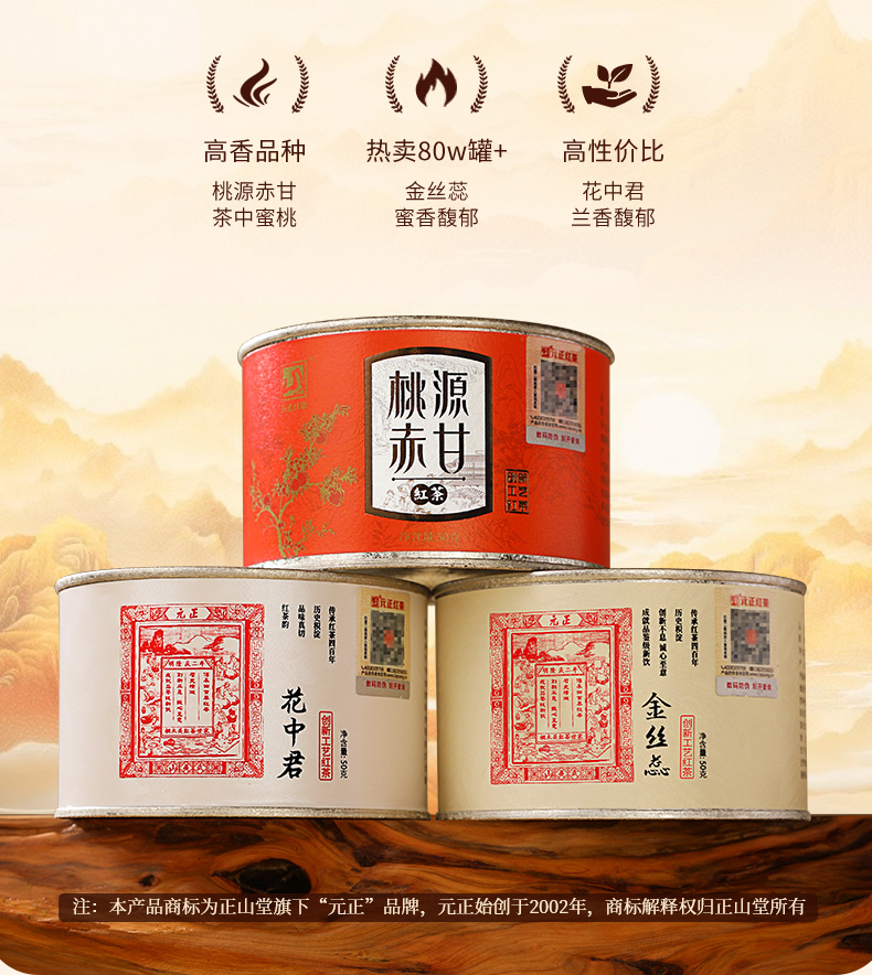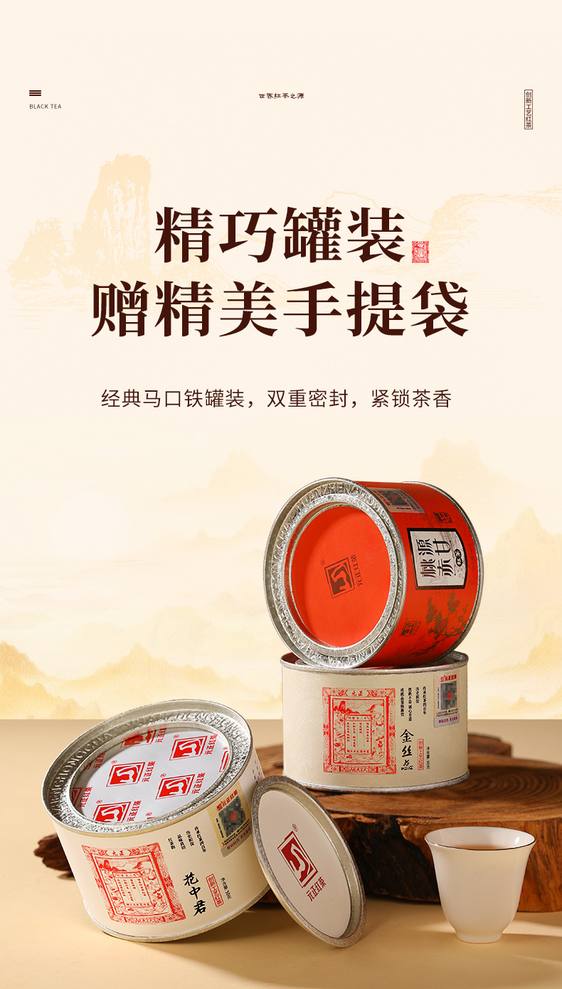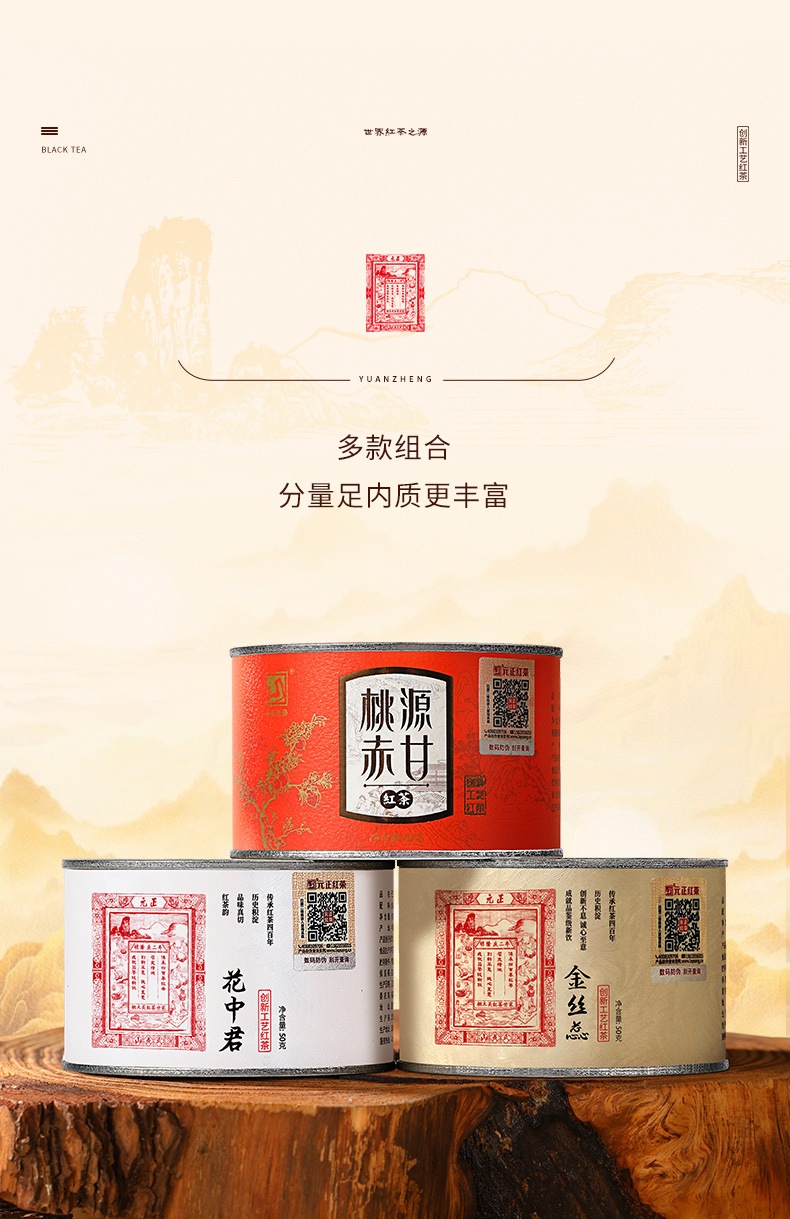 元正 蜜香金丝蕊花中君桃源赤甘 特级红茶正宗口粮茶组合装罐装150g