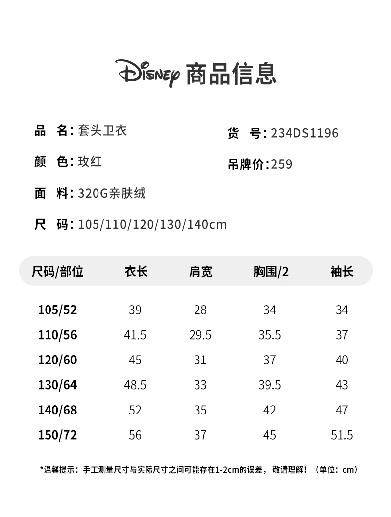 【商场同款】迪士尼女童秋季保暖套头卫衣234DS1196