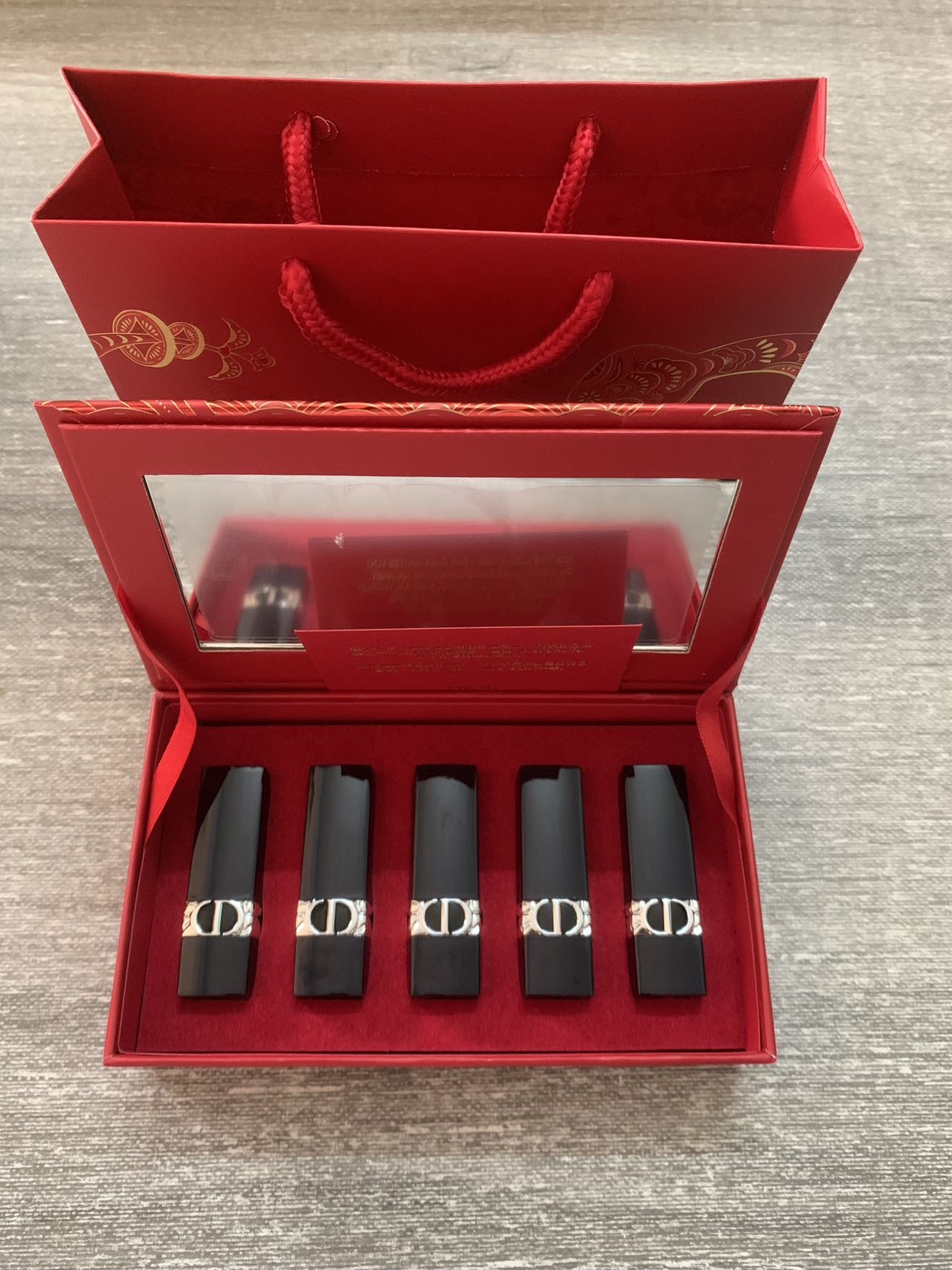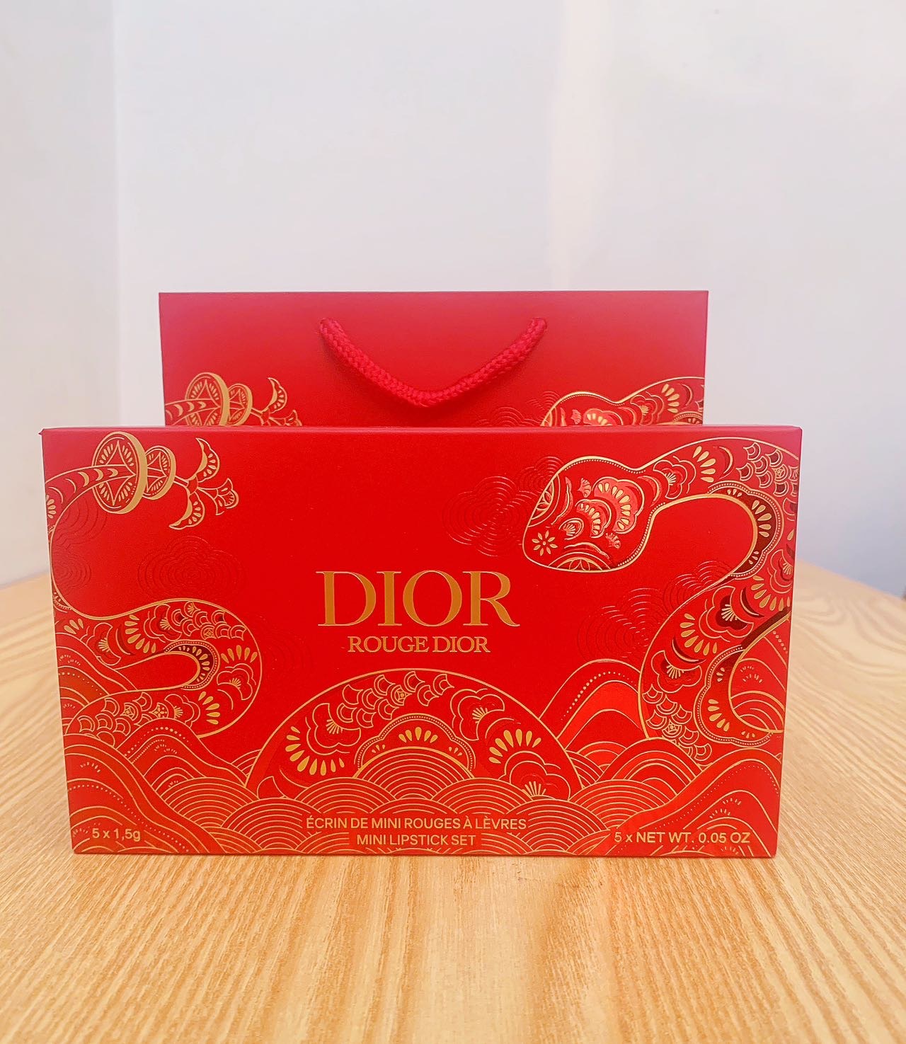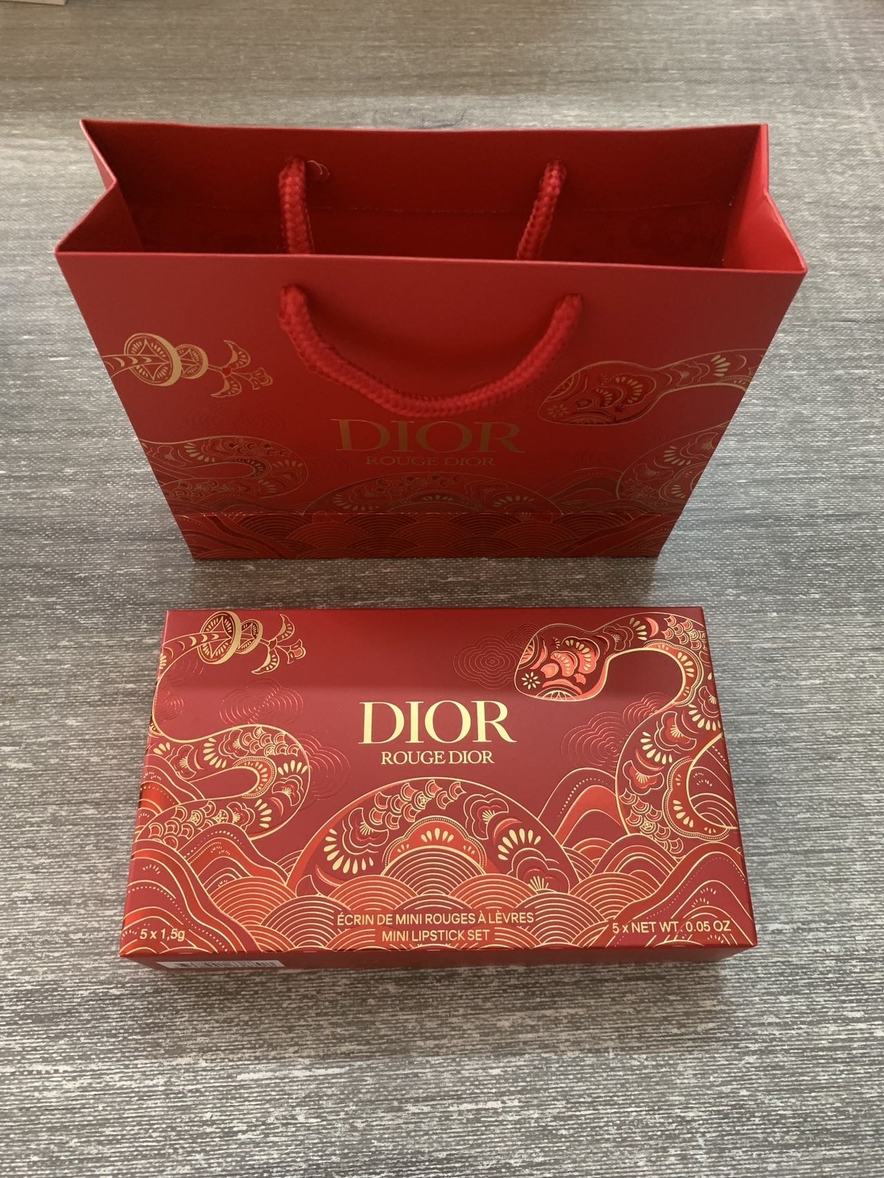 【蛇年款迪奥口红Mini五件套】 新年限定礼盒 Dior你真的好懂中国红 一抹新年「红」稳坐C位~ 整个系列的颜色都好适合新年哦 教你轻松拿捏新年氛围感!质地是丝绒和哑光二合一妆效~