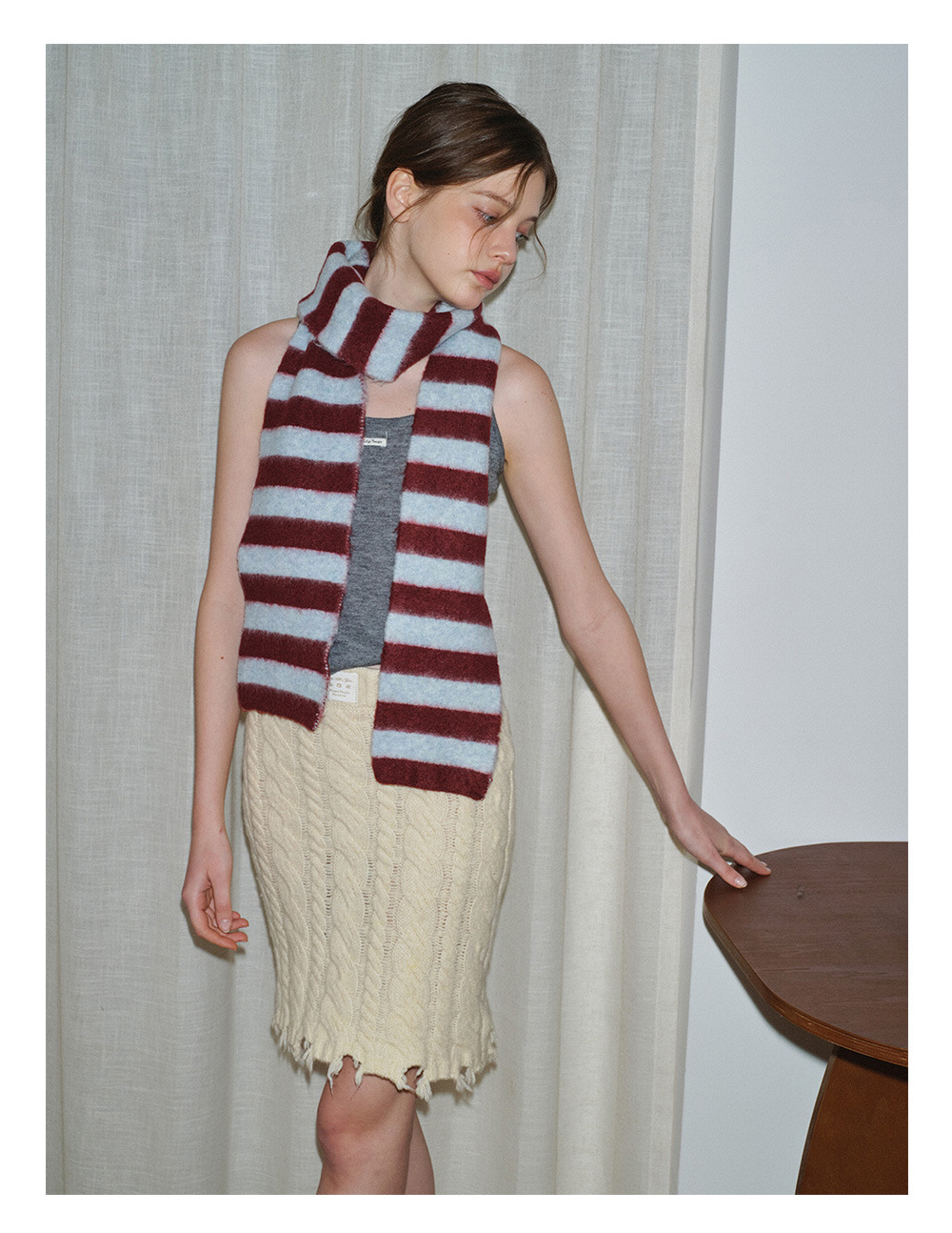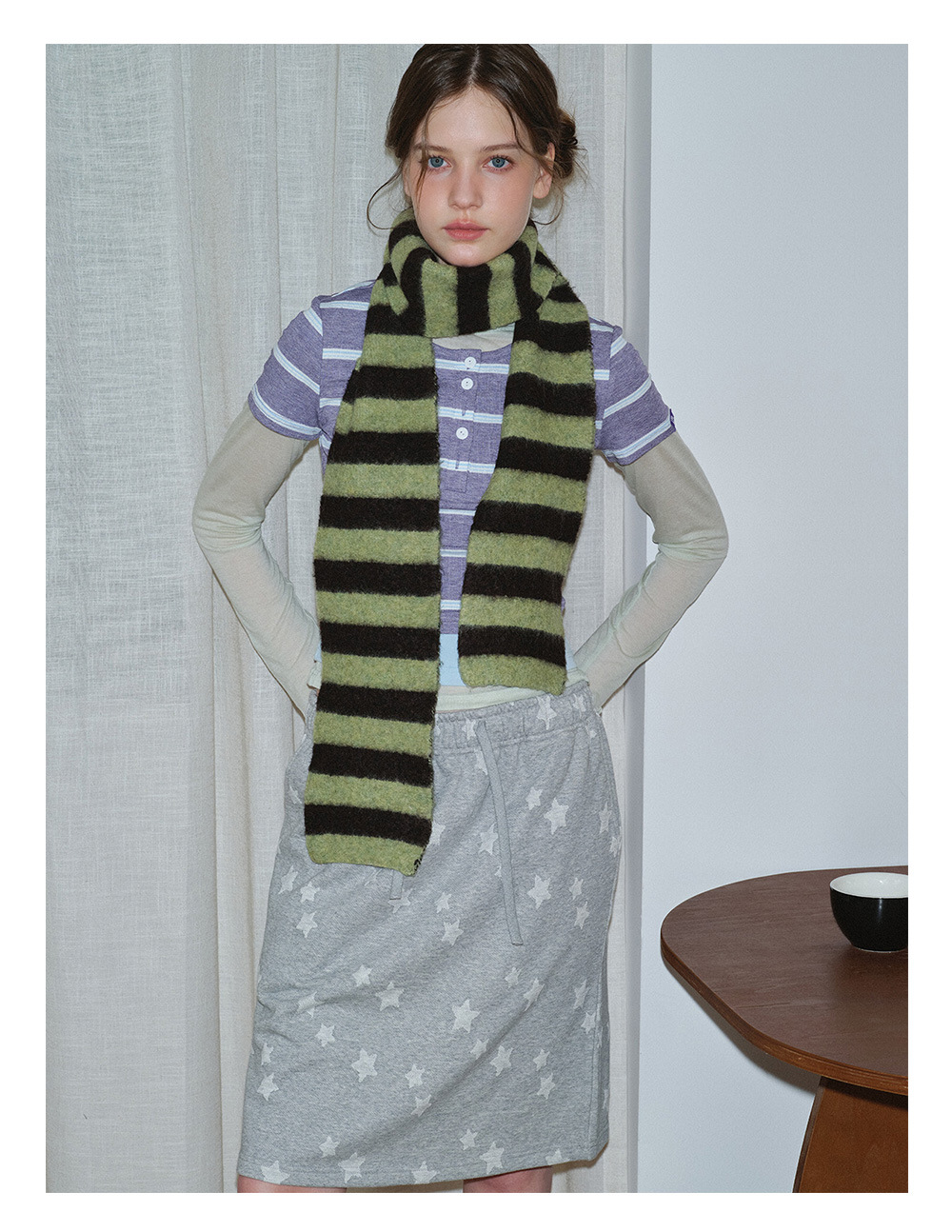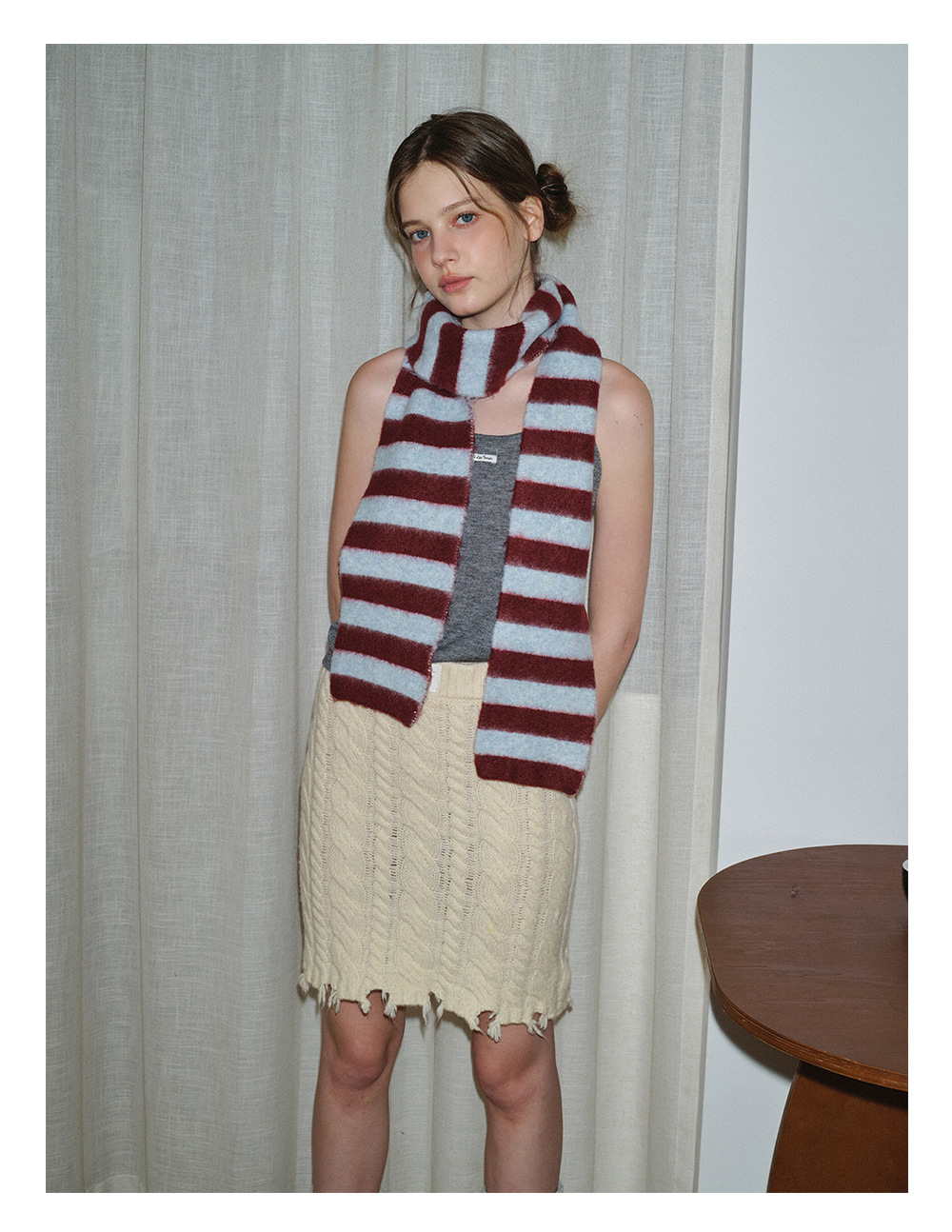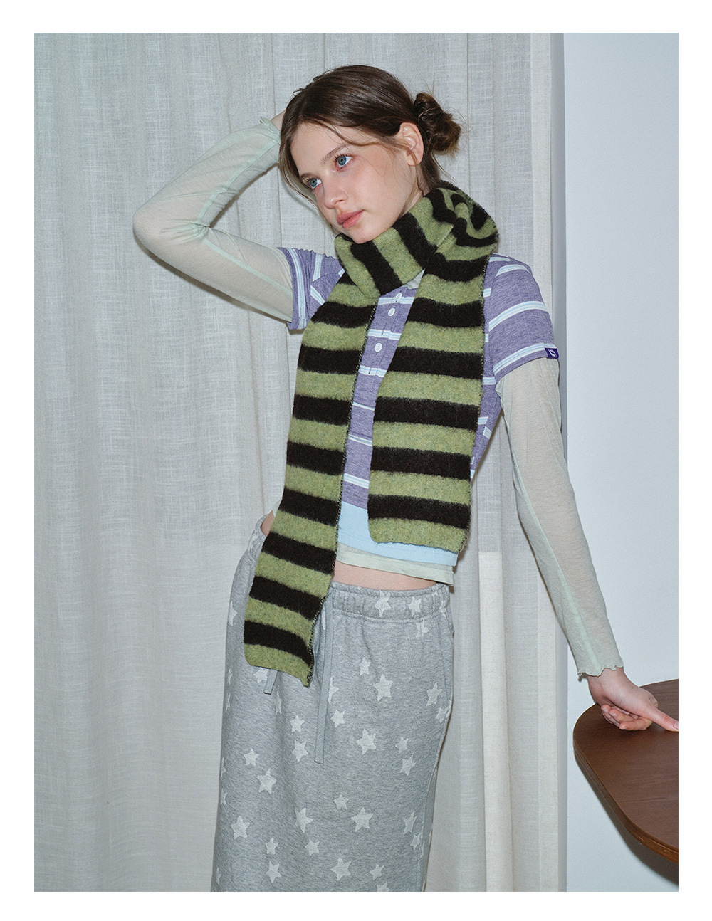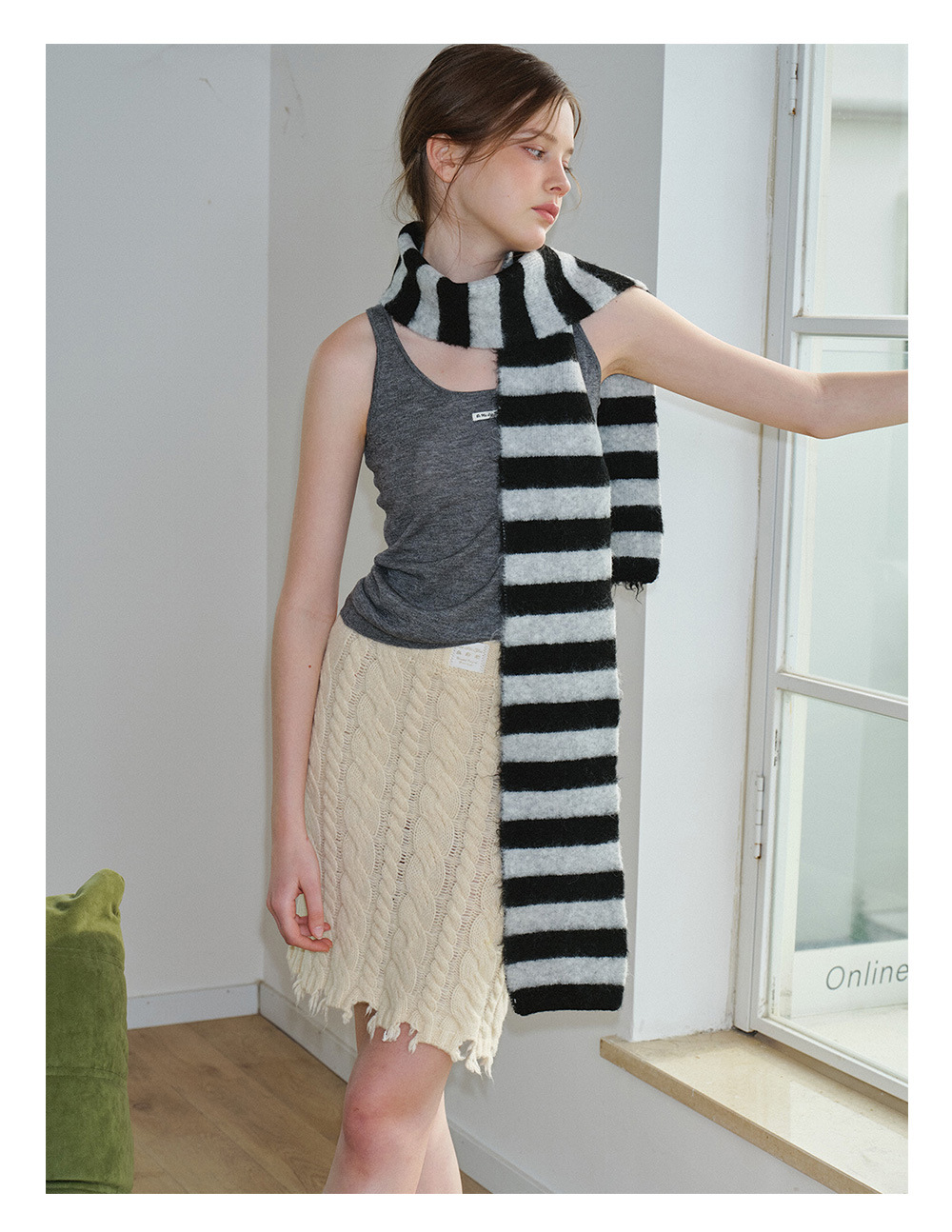 原创小众拉绒羊毛混纺条纹针织围巾!2025女秋冬季柔软搭配撞色毛线围脖!