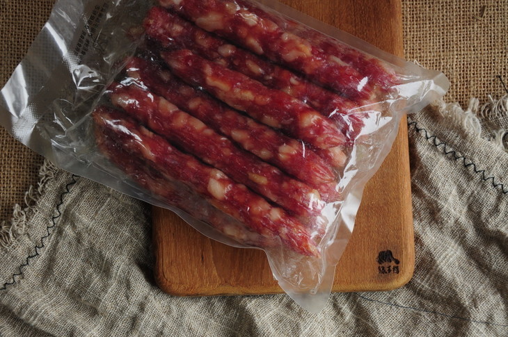 他们这次的腊肠加工,严格按照传统广式腊肠的加工方式。腊肠真空包装,因为没有添加防腐剂,所以需要冷冻保存,可保存12个月。