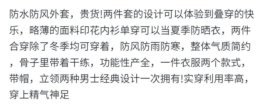 P*家 男士两件套 防风防雨外套 内衫夏季可当防晒衣 M323275
