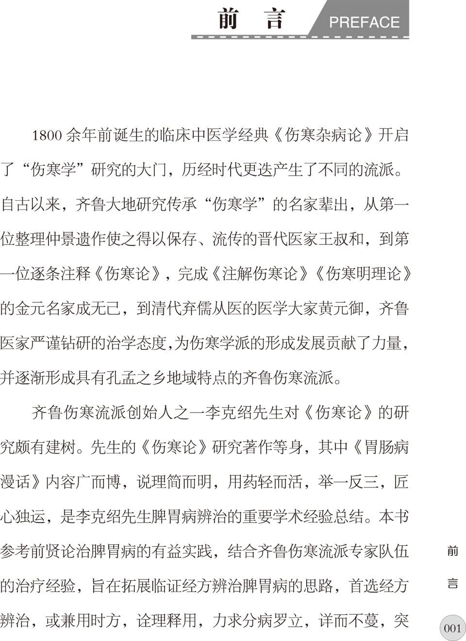 内容简介:齐鲁伤寒流派创始人之一李克绍先生对《伤寒论》的研究颇有建树。先生的《伤寒论》研究著作等身,其中《胃肠病漫话》内容广而博,说理简而明,用药轻而活,举一反三,匠心独运,是李克绍先生脾胃病辨治的重要学术经验总结。本书参考前贤论治脾胃病的有益实践,结合齐鲁伤寒流派专家队伍的治疗经验,旨在拓展临证经方辨治脾胃病的思路,首选经方辨治,或兼用时方,诠理释用,力求分病罗立,详而不蔓,突出临床实用目的。本书以中医病证为纲,共21个病证,每个病证分为概述、现代医学认识及治疗、经方辨治、验方、其他疗法五部分。《伤寒》愈读愈有味,经方愈用愈神奇。此本小册,献己一得之愚,以就正于贤达。