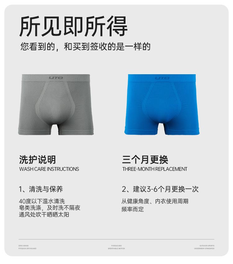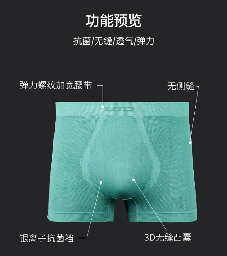UTO悠途跑步内裤男士运动平角裤【4条】-分销