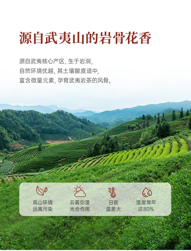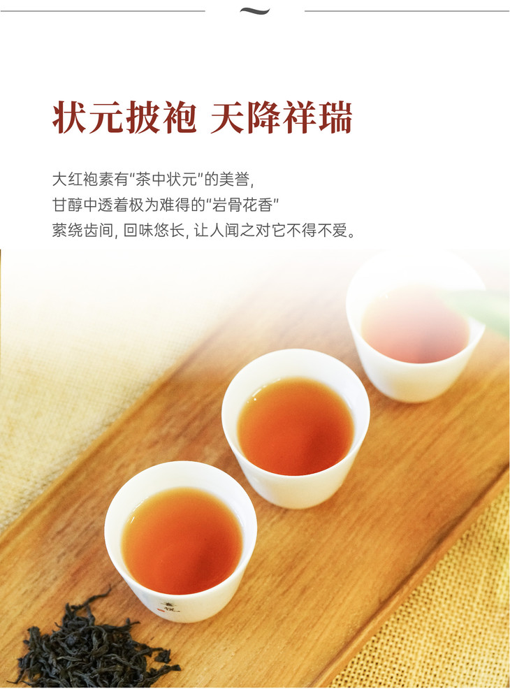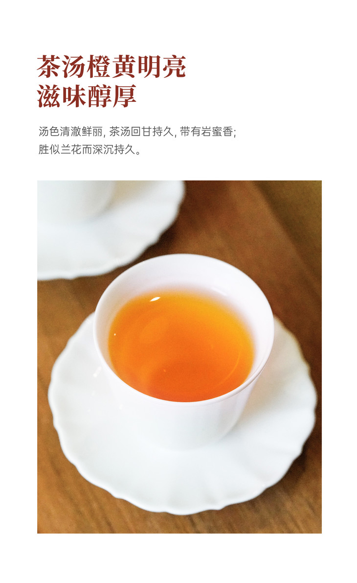 【昀茶·乌龙茶系列】小美 • 福建大红袍 “状元披袍”——福建武夷岩茶· 茶汤橙黄明亮· 滋味醇而精妙· 香气丰盈有层次; 啜一口· 齿颊留香· 回味悠长(100g/罐)