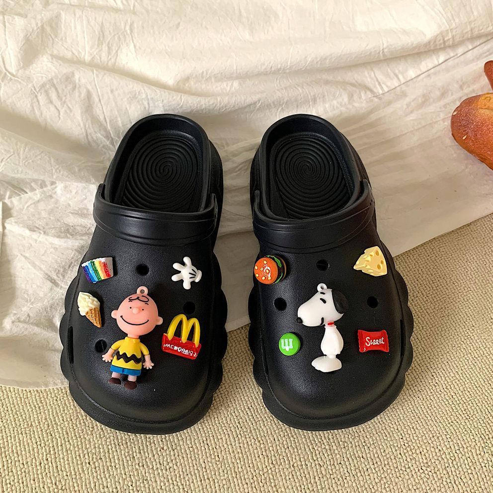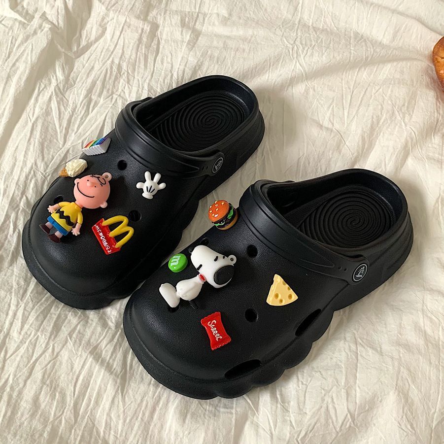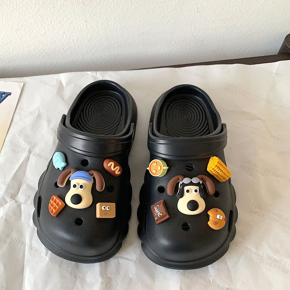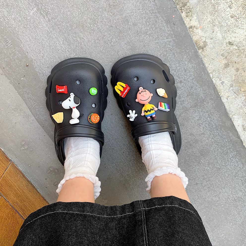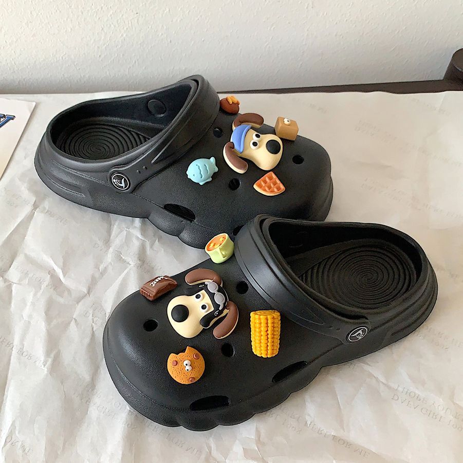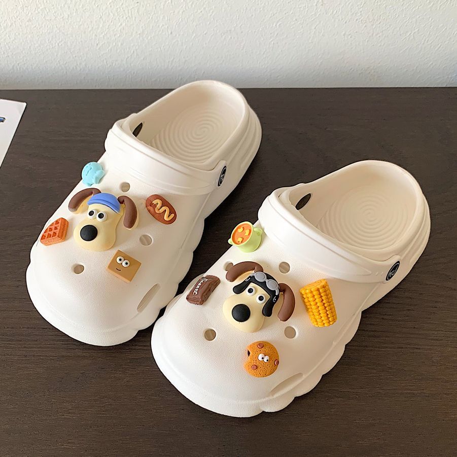 新款夏天洞洞鞋女外穿防滑不臭脚卡通室内厚底踩屎感护士包头拖鞋