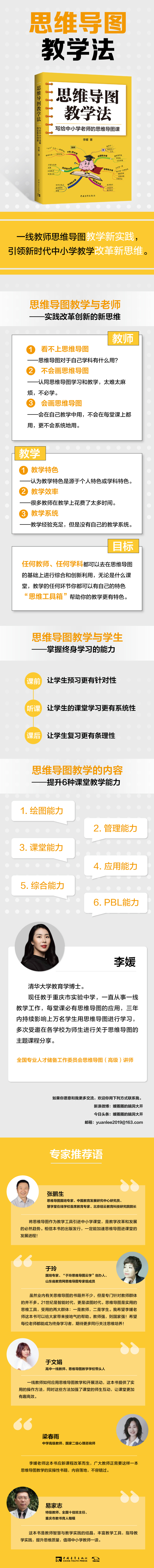 虽然业内有关思维导图的书籍并不少,但是专门针对教师群体的并不多。21世纪是智能时代,更是读图时代。思维导图是最实用的思维工具,受用的两大群体:一是教师,二是学生。我希望李媛老师这本书可以给到大家带来接地气的帮助。教师强,则国家强!希望每位老师都能成为终身学习者,期待更多同行关注思维培养!
