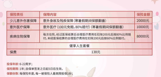 包括门急诊费,此项保障范围较大,体育课摔伤、碰伤、交通意外、煤气中毒、动物咬伤、烫伤等意外事件皆在保障之列……