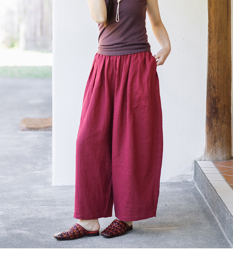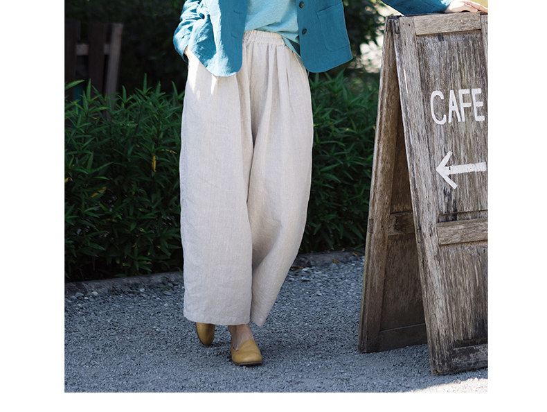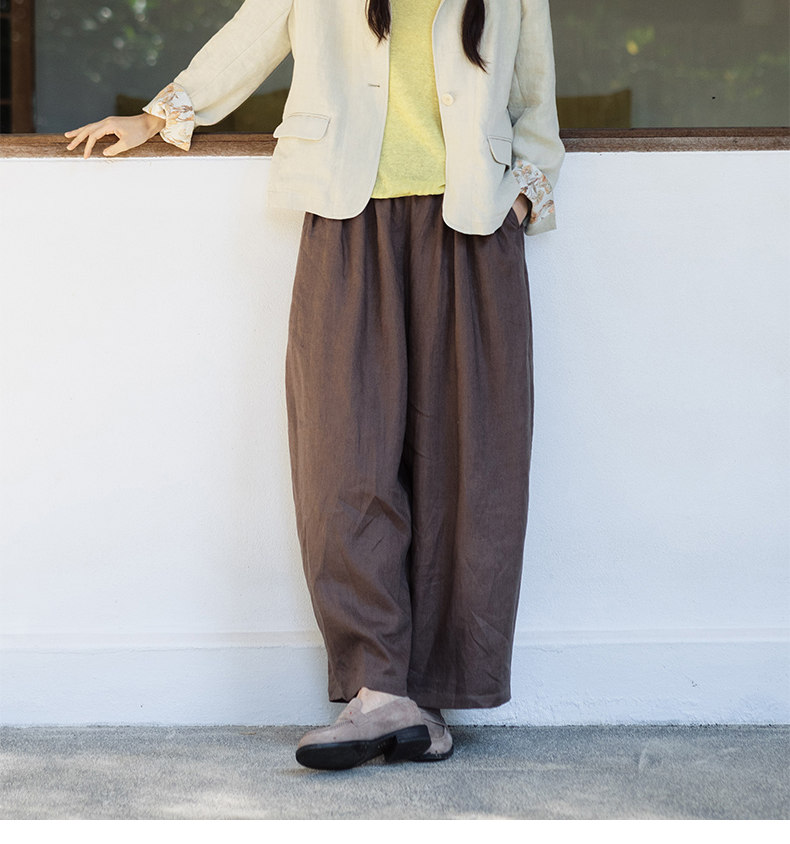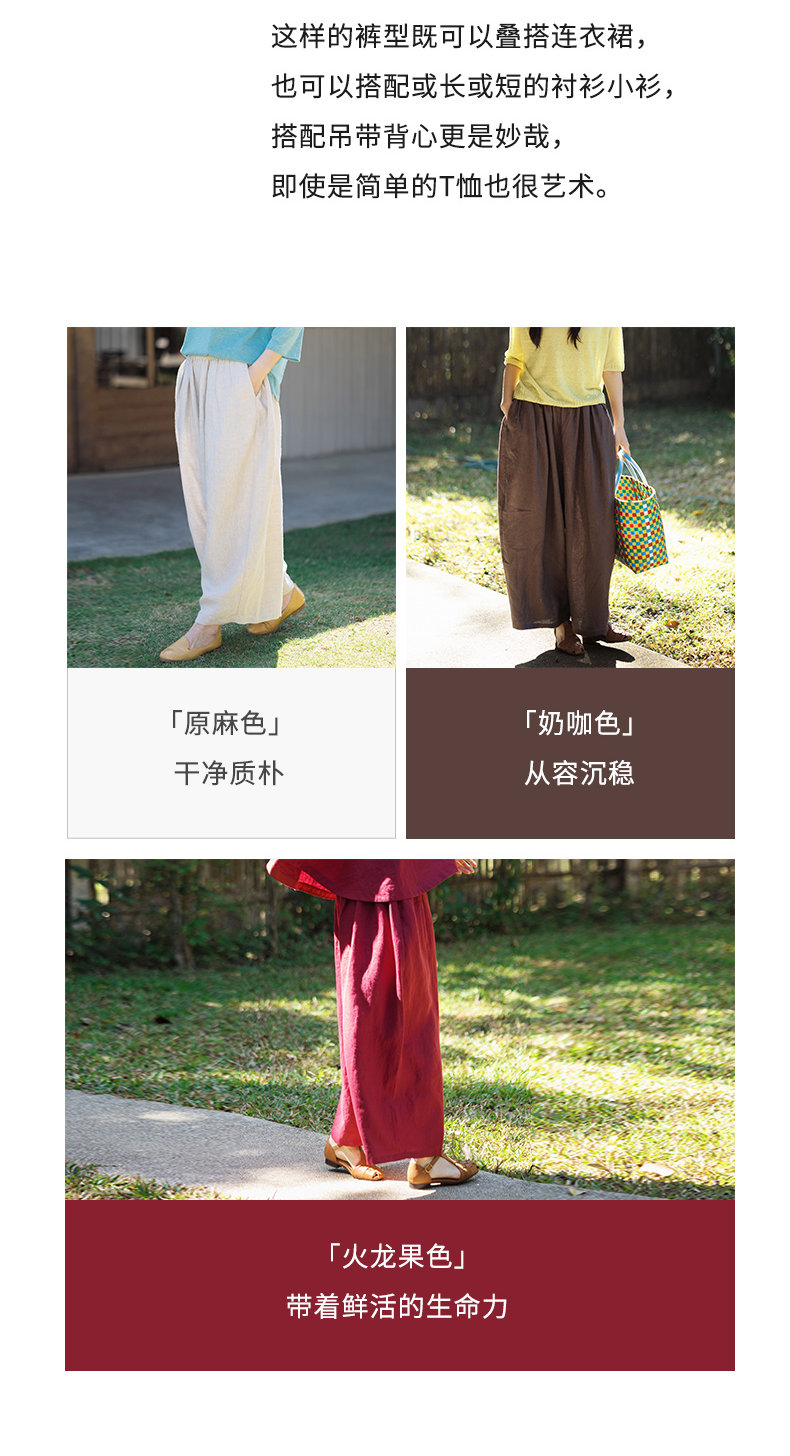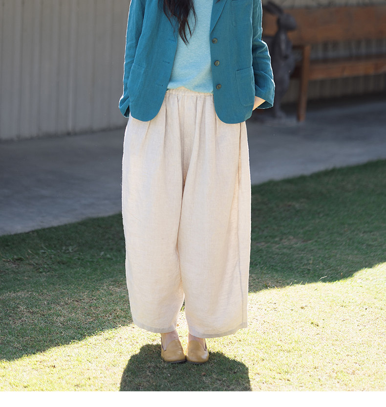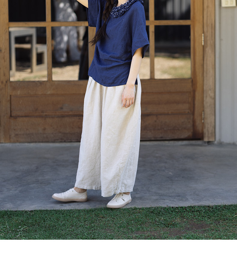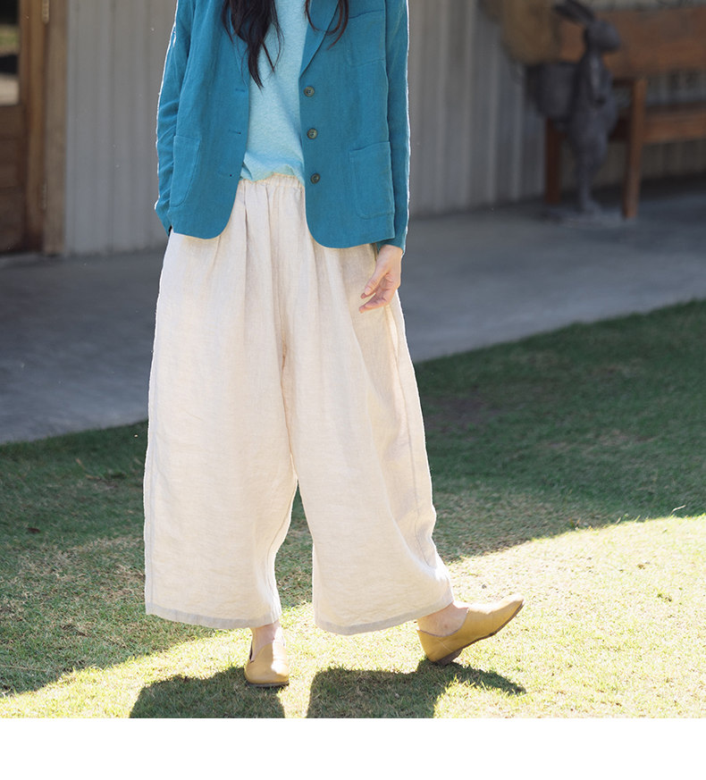 特绽放101朵/旅行的心动*14支纯亚麻宽松压褶阔腿裤弯刀显瘦长裤