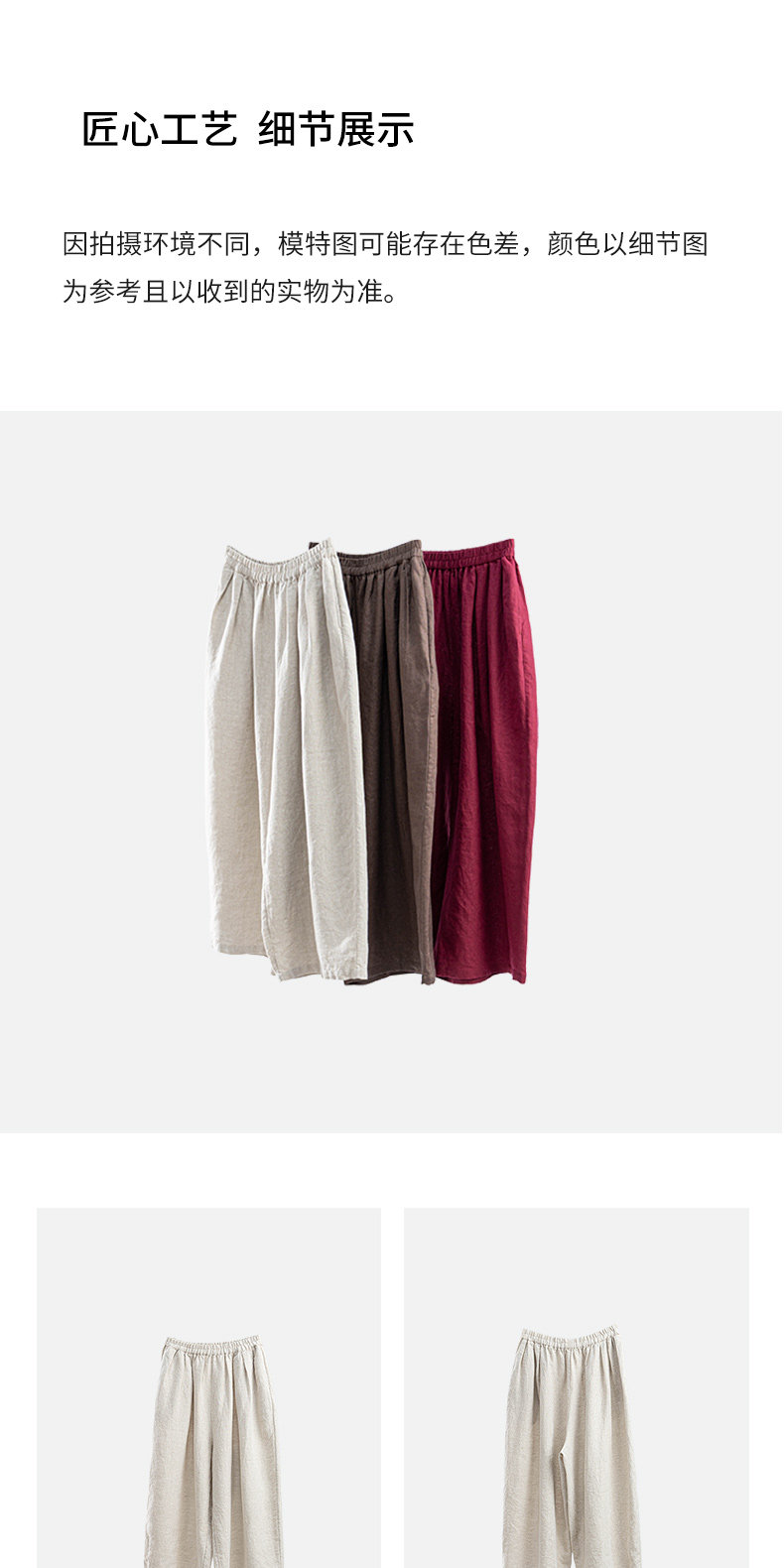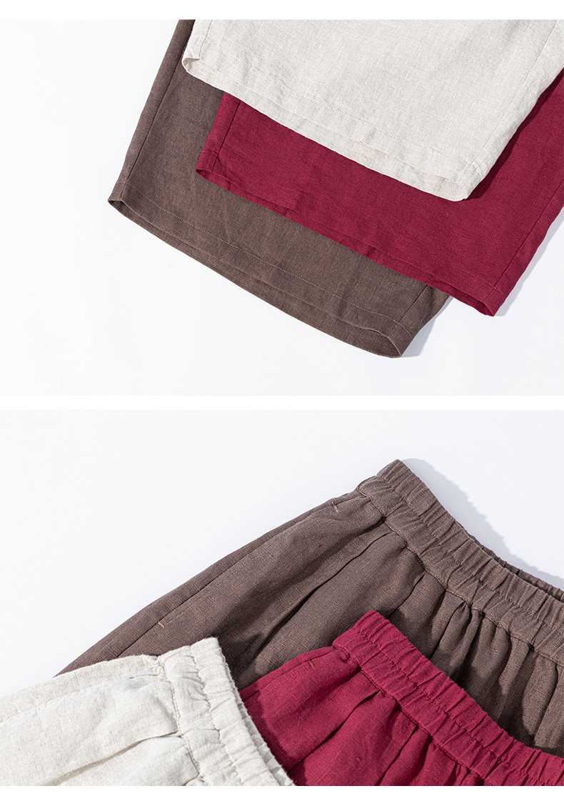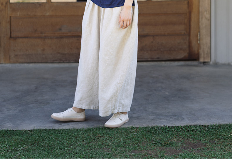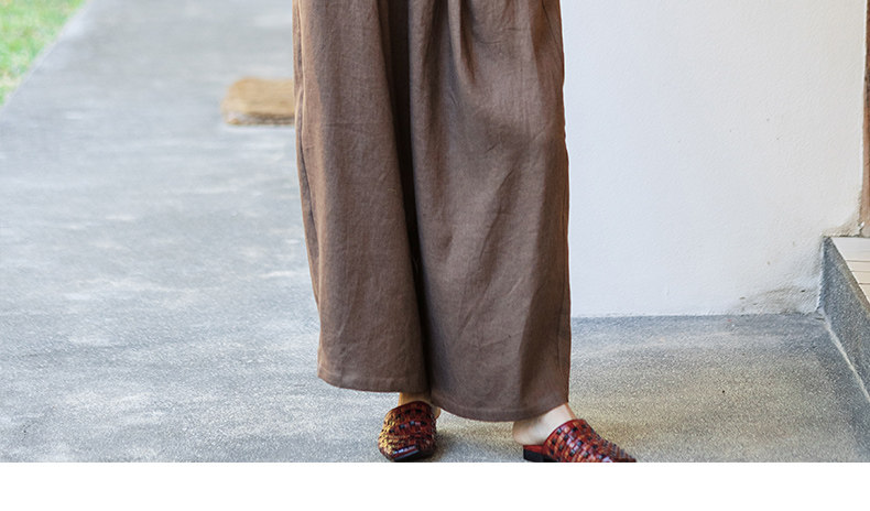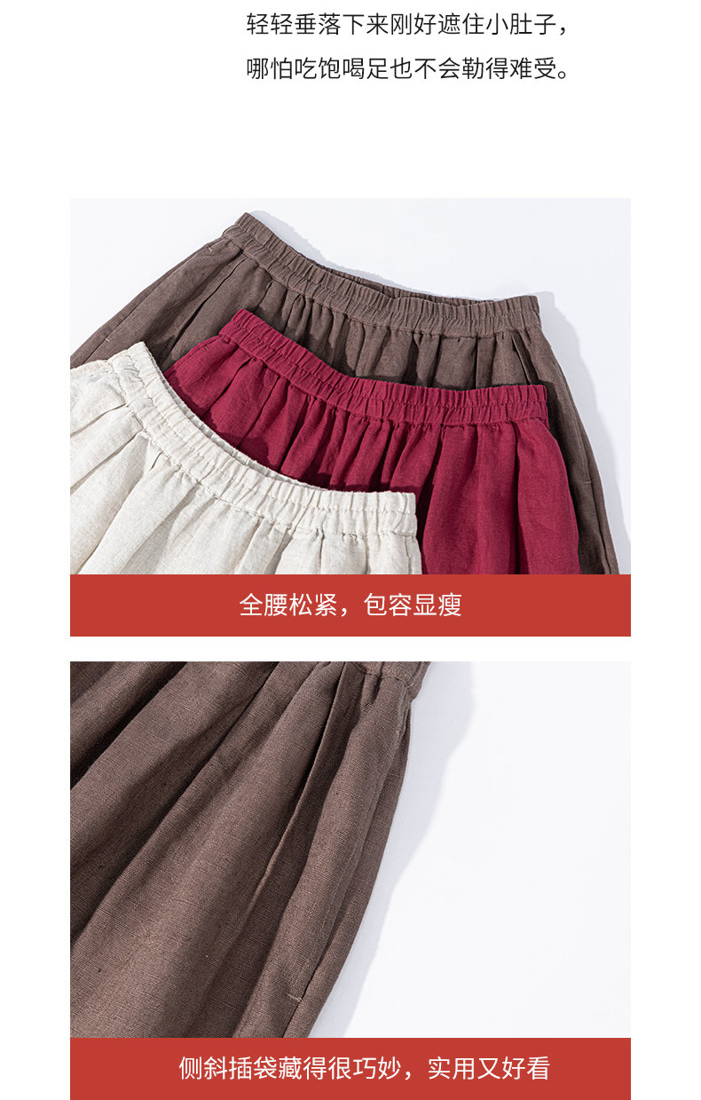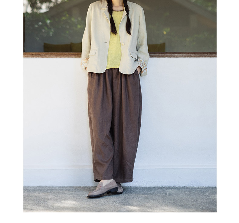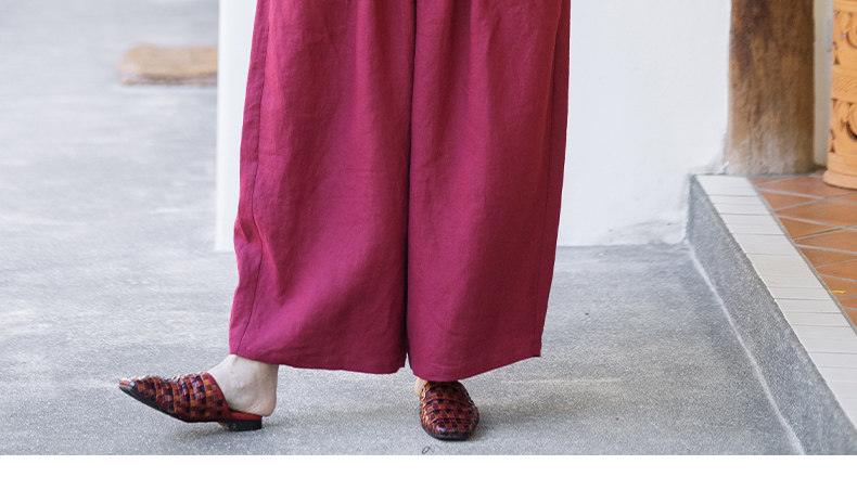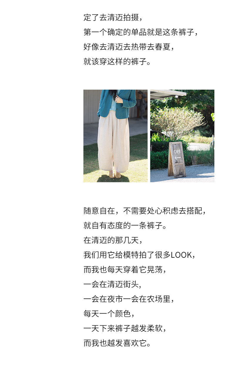 特绽放101朵/旅行的心动*14支纯亚麻宽松压褶阔腿裤弯刀显瘦长裤
