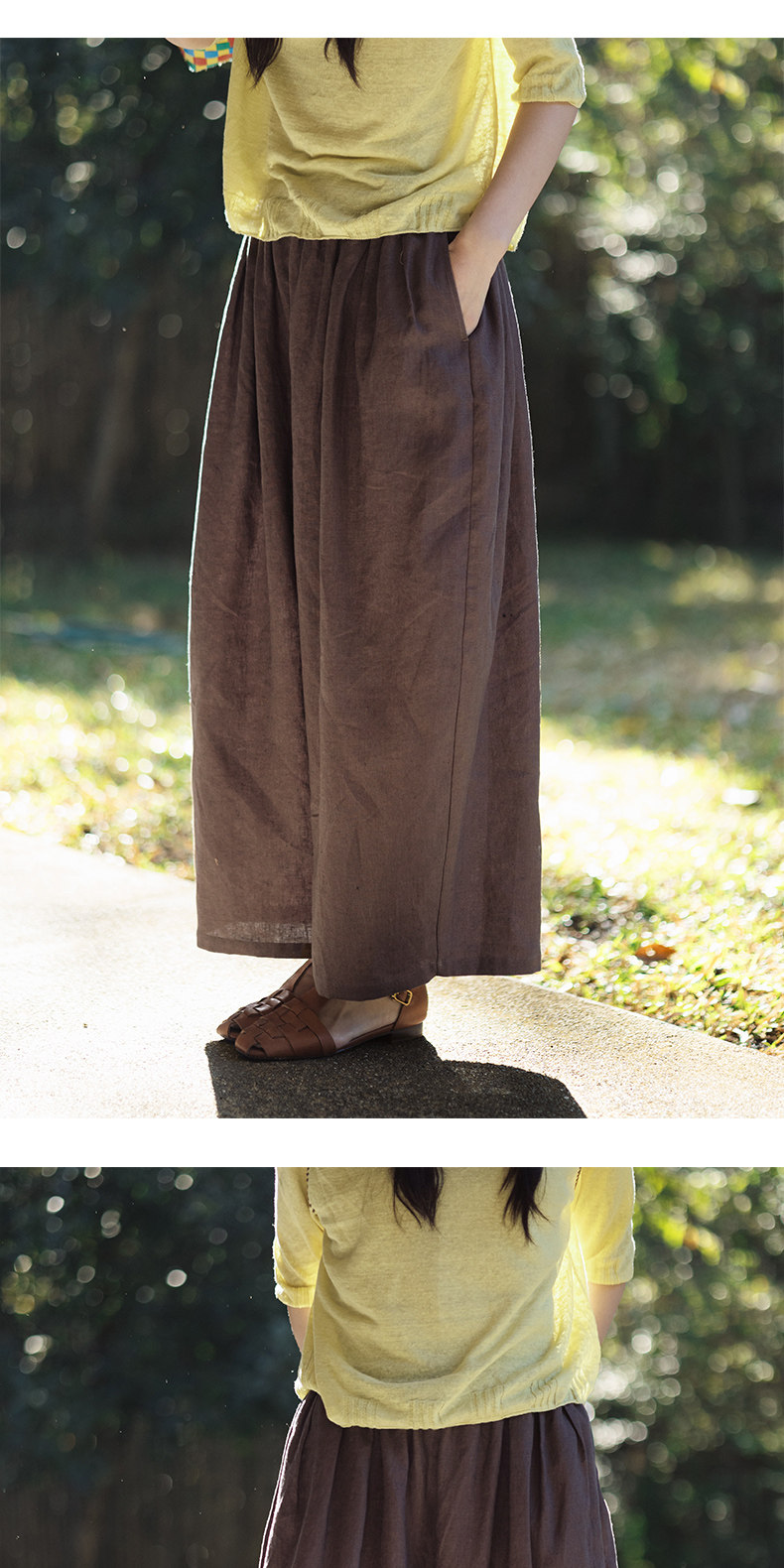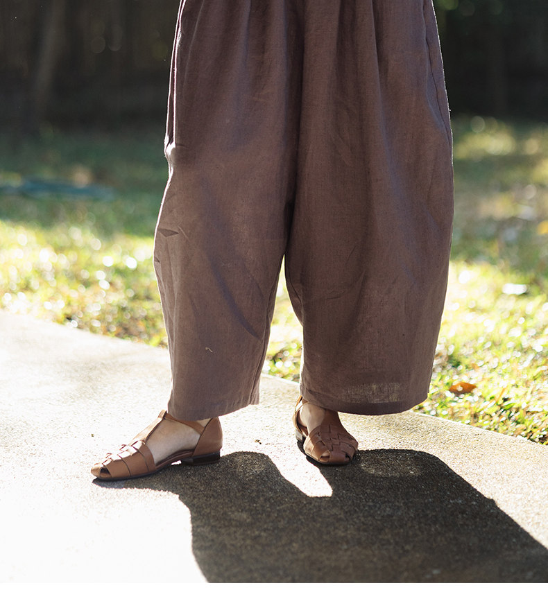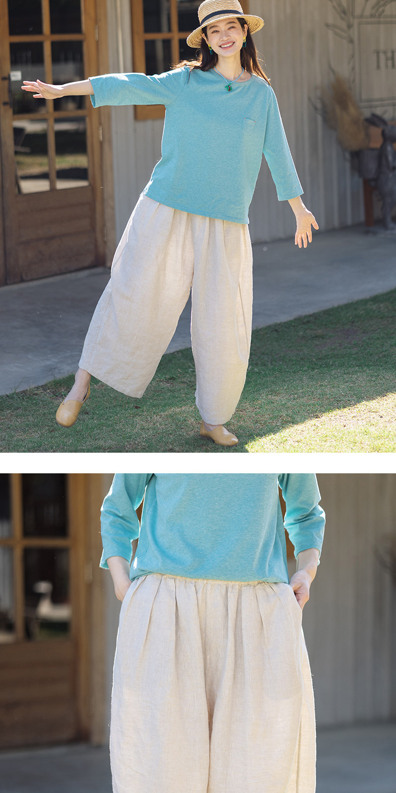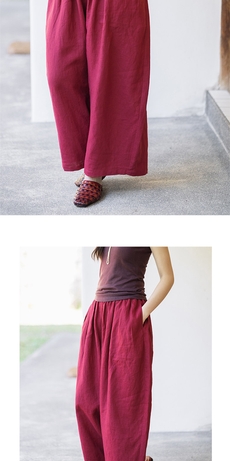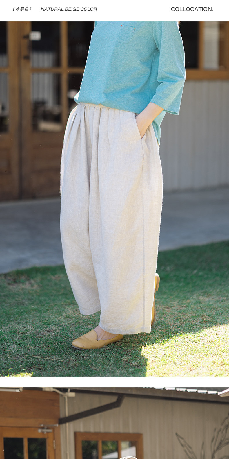 特绽放101朵/旅行的心动*14支纯亚麻宽松压褶阔腿裤弯刀显瘦长裤