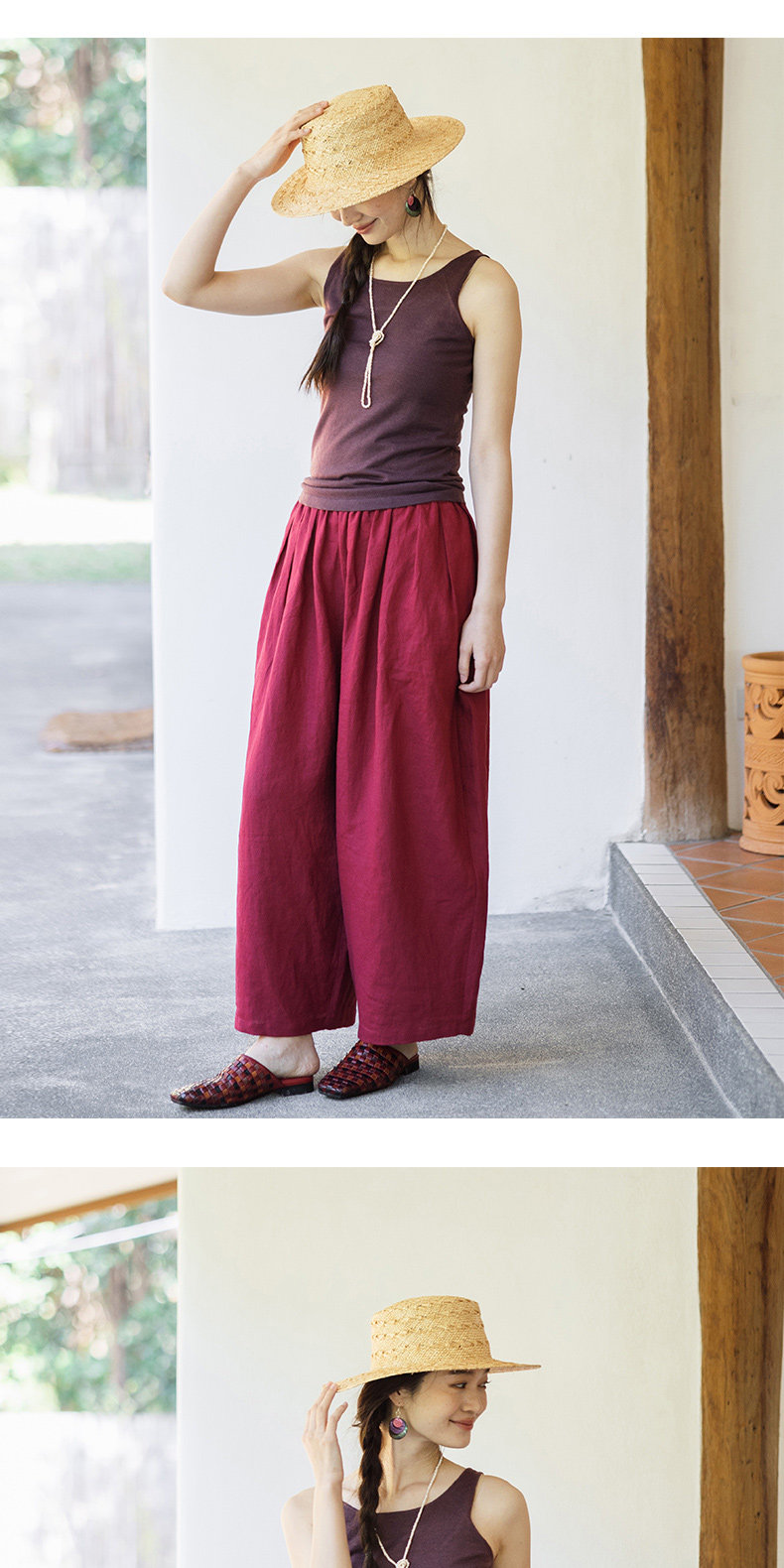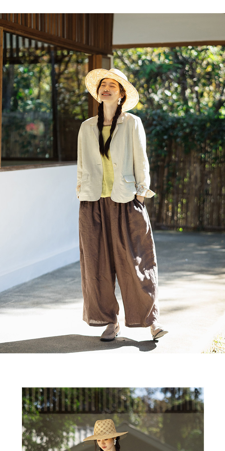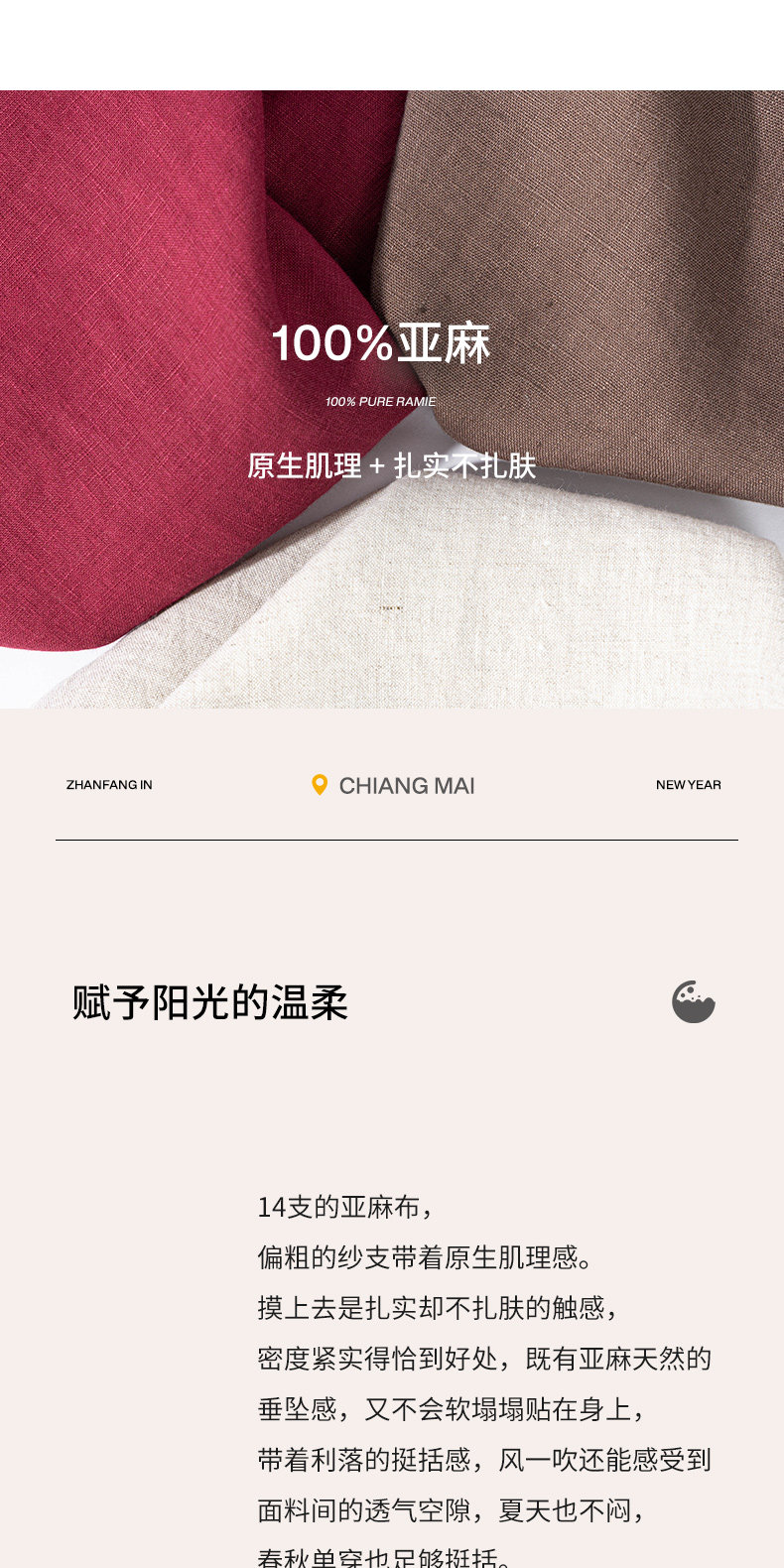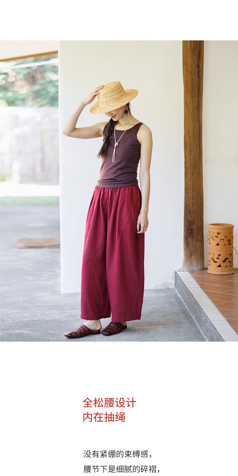 以天然亚麻为载体,融合热烈色彩与自在剪裁为身在城市、心怀远方的女性提供兼具美学与舒适的旅行着装