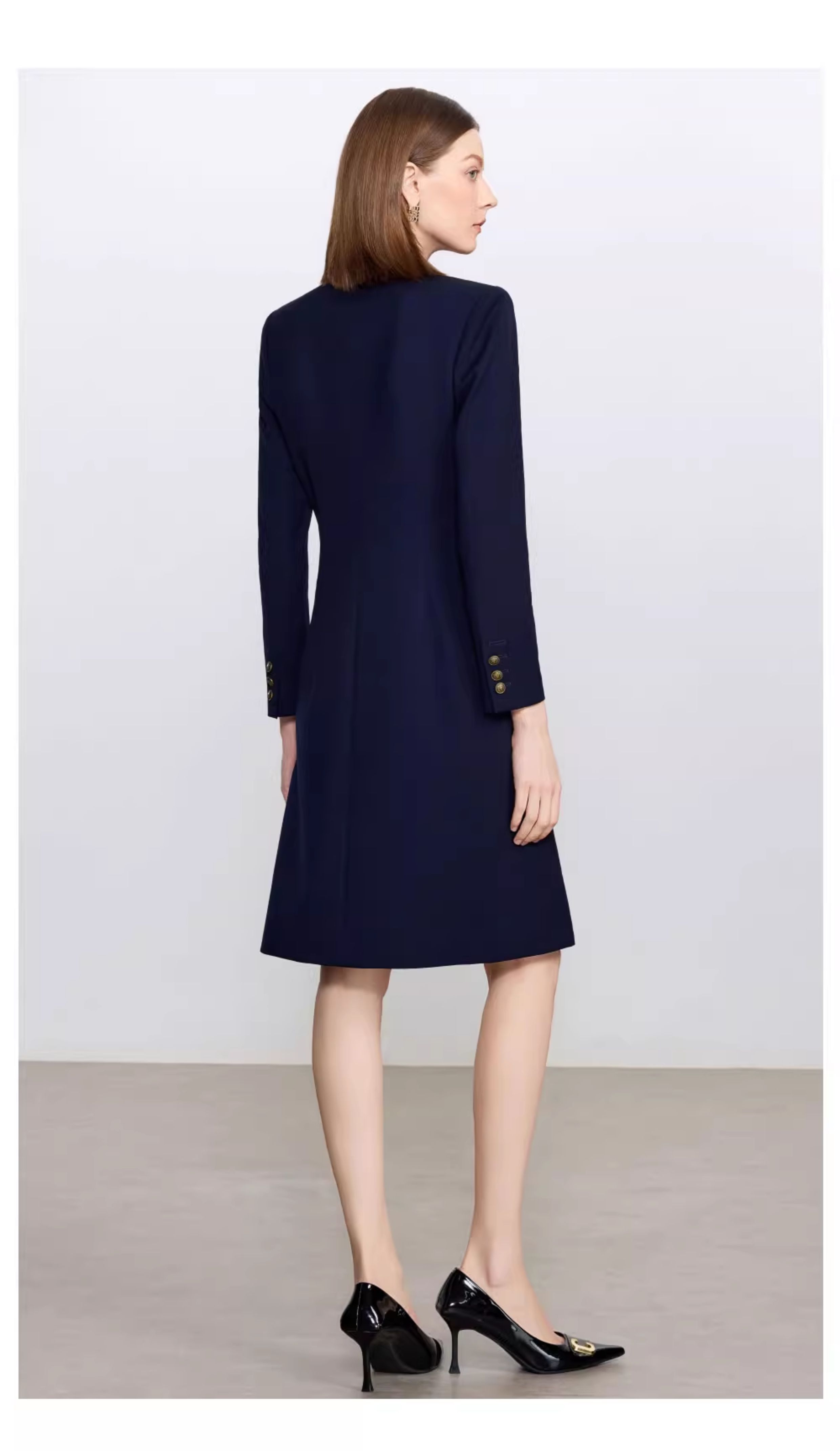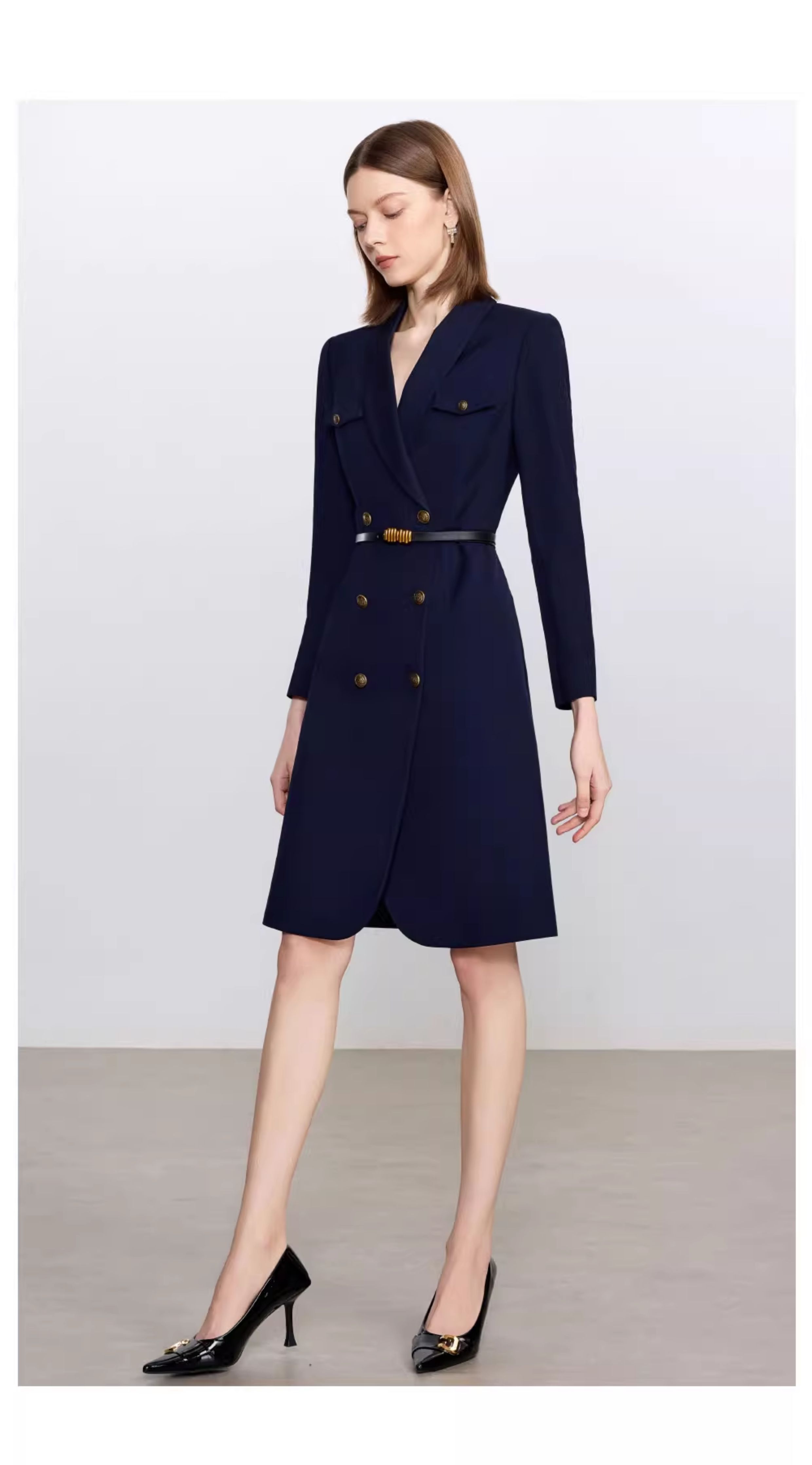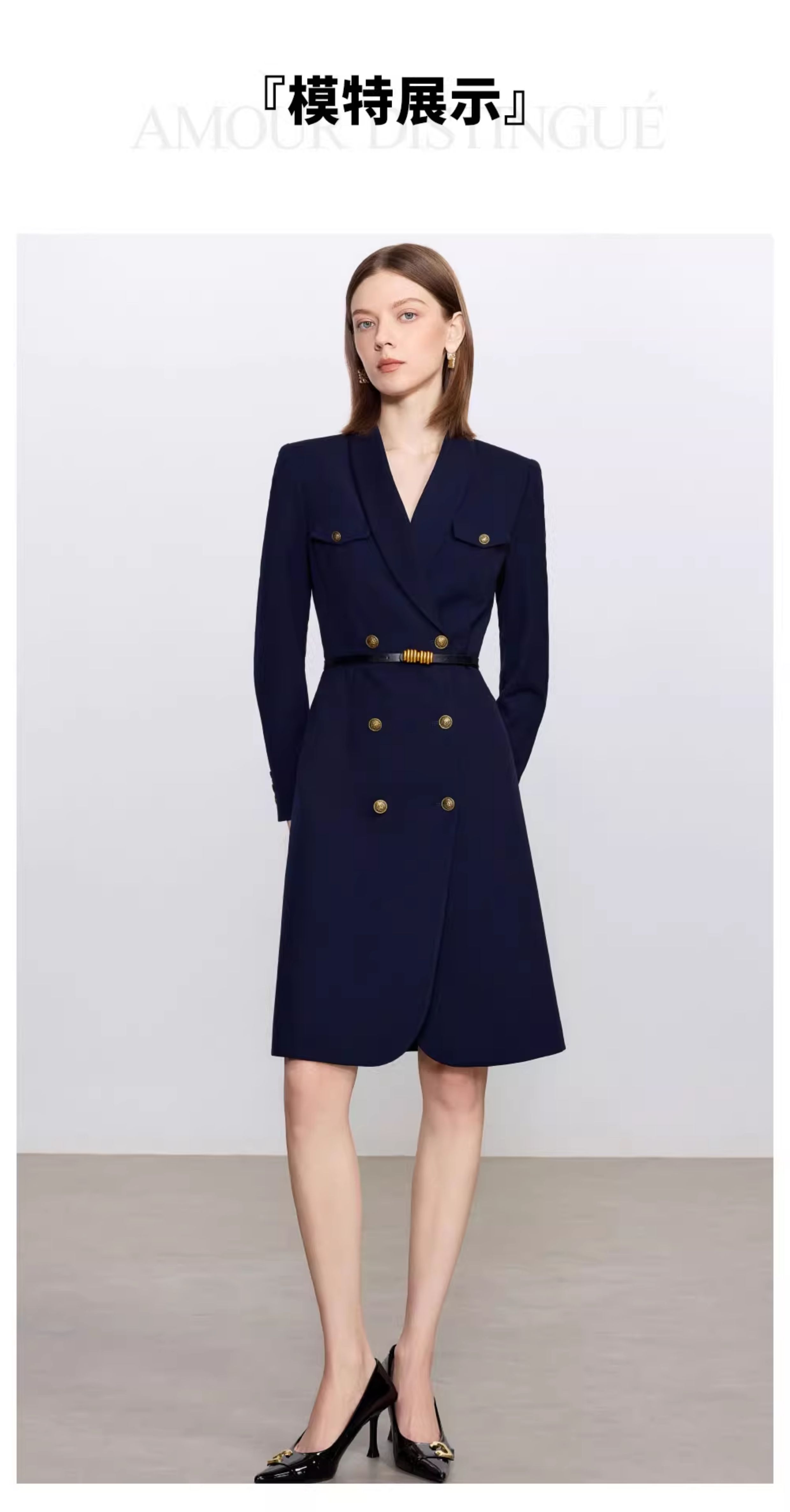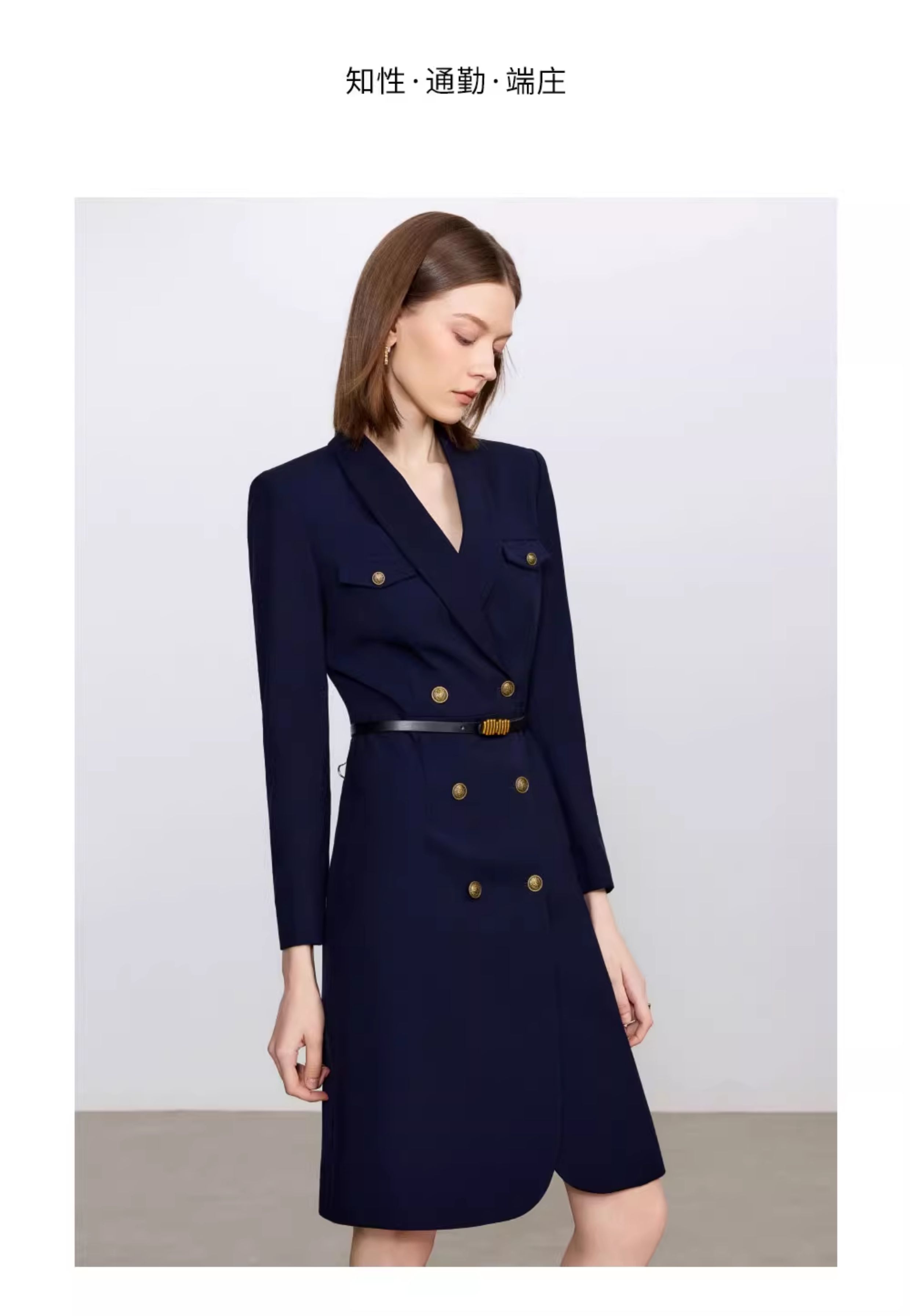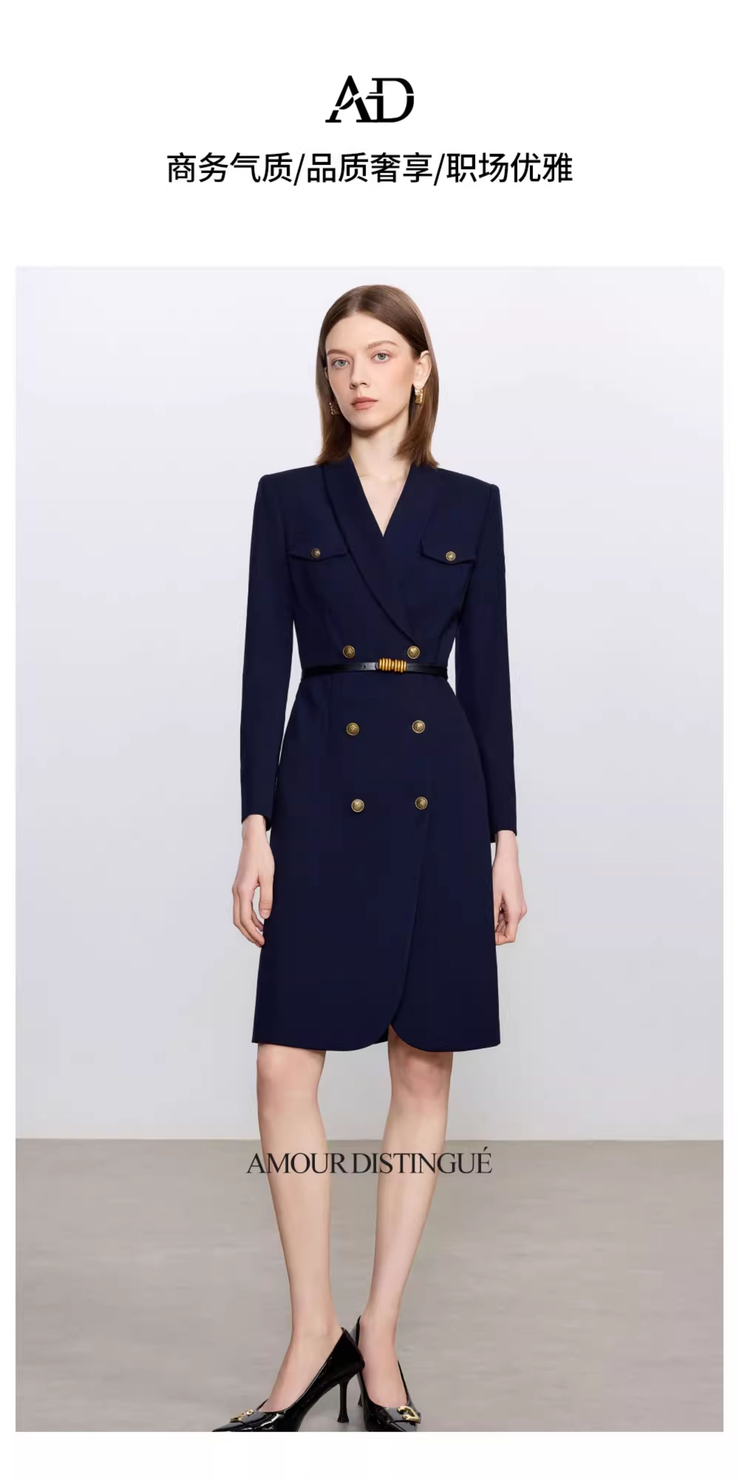AD简单大方高级感穿搭2025新款长袖西服裙双排扣职业装藏青色工装