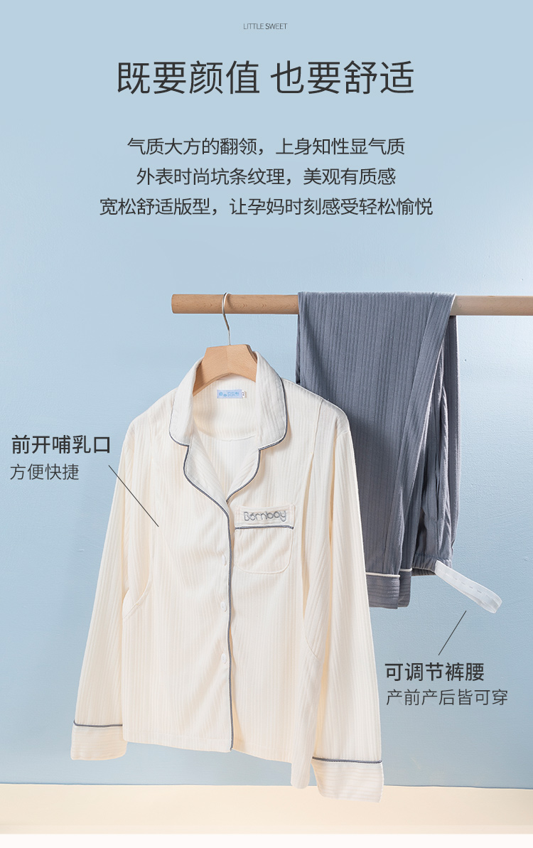 贝贝怡孕妇家居服套装春秋新款产后宽松休闲哺乳月子服