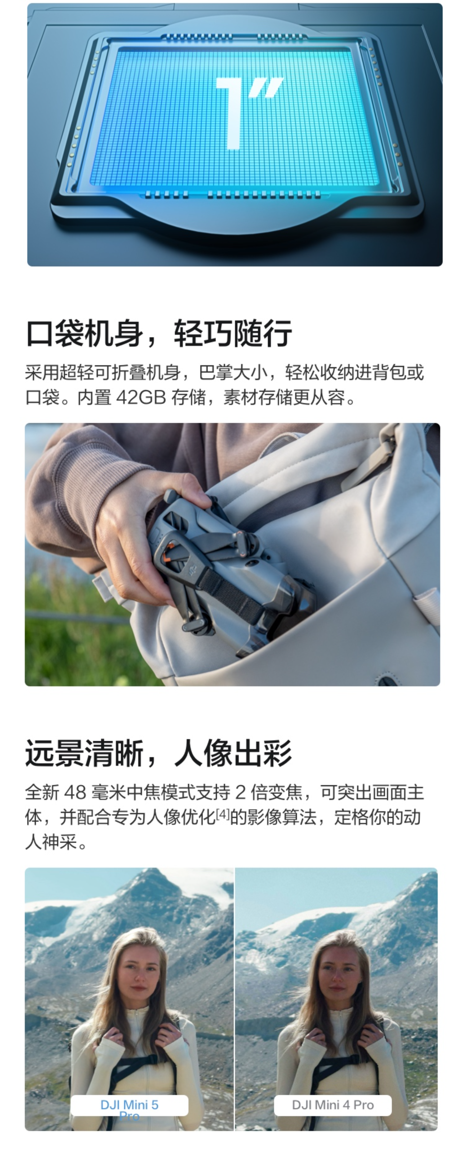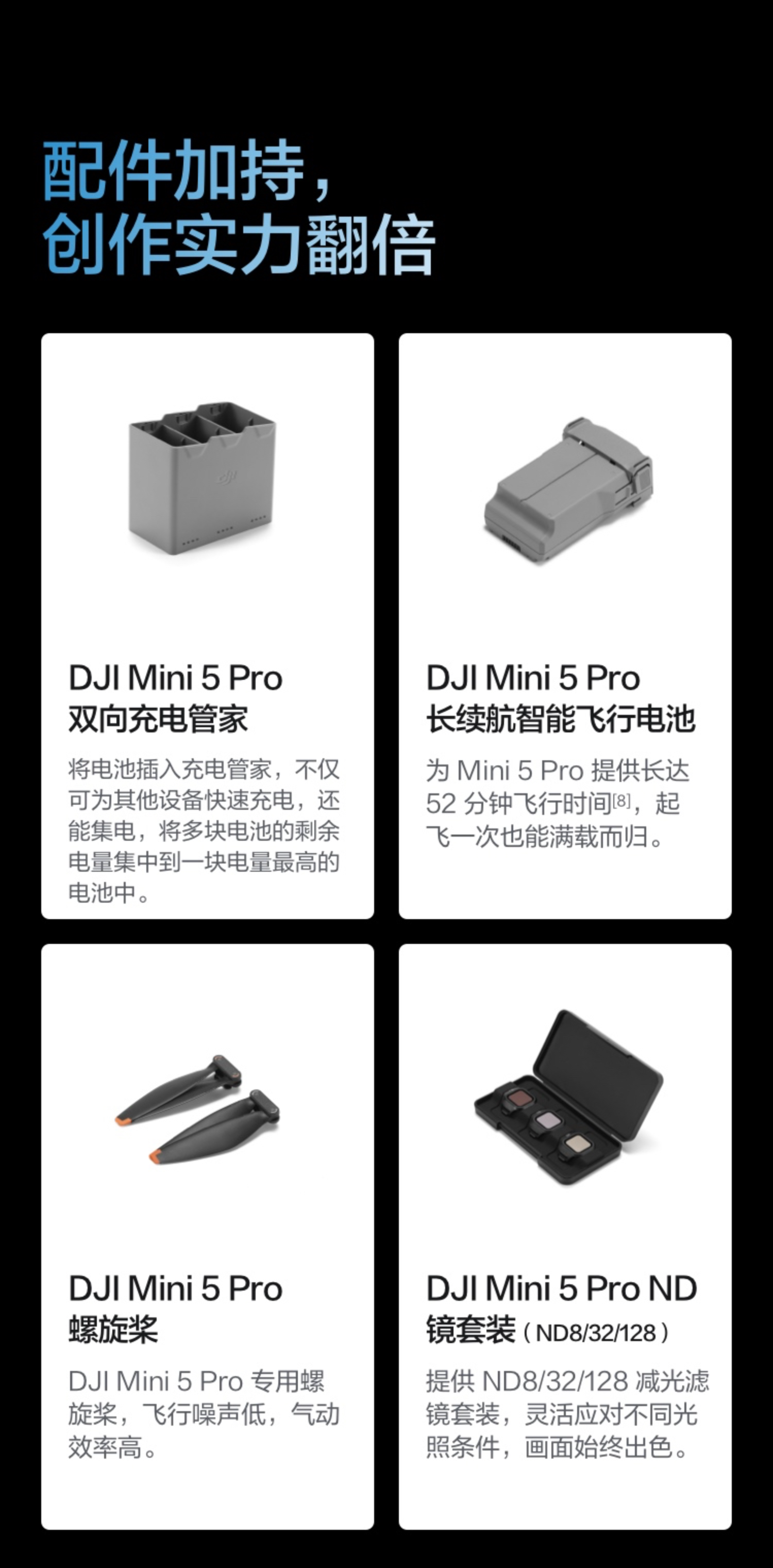 大疆 DJI Mini 5 Pro 一英寸迷你航拍机 轻巧便捷 全向主动避障 全向智能跟随