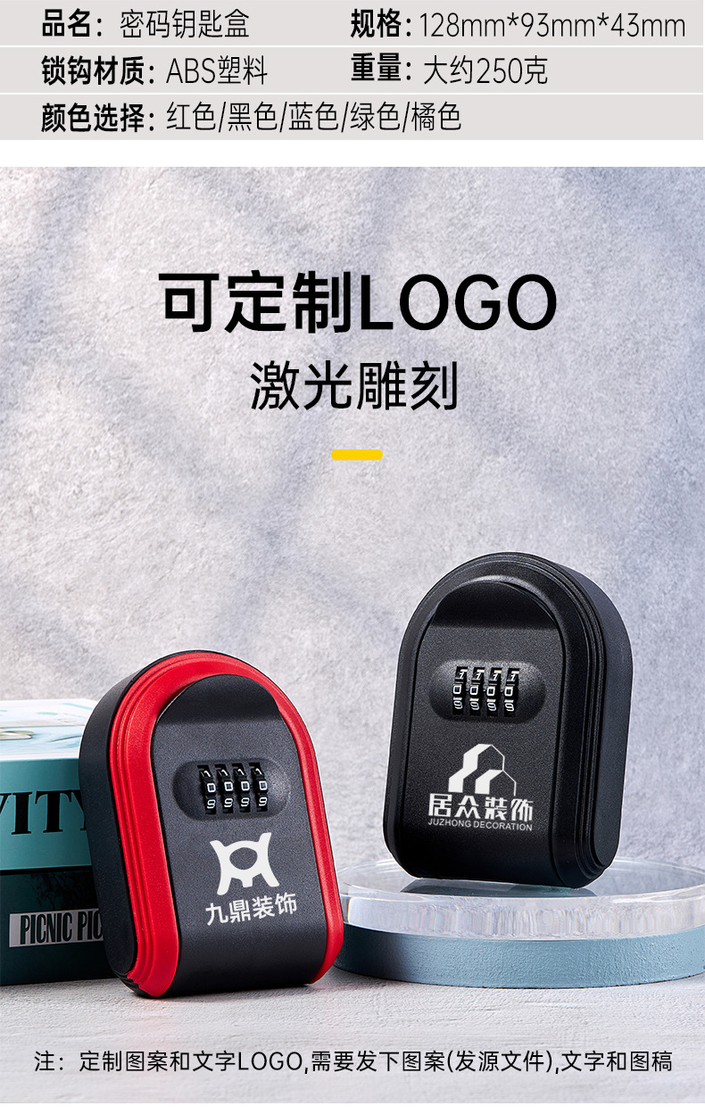 全塑钥匙盒密码锁装修辅料宣传门口钥匙存储密码箱塑料密码钥匙盒