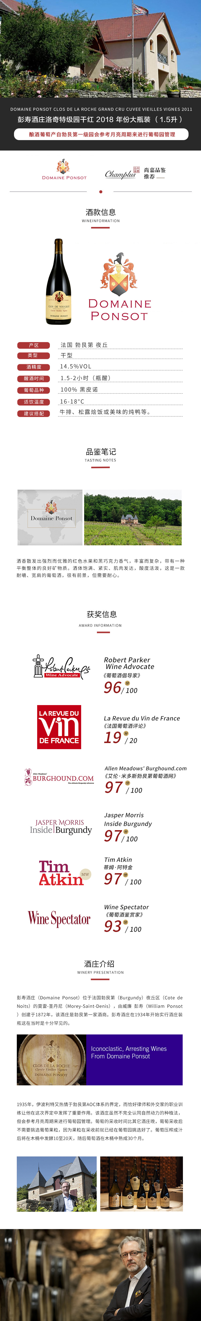 彭寿酒庄洛奇园干红2018年(1.5L) DOMAINE PONSOT CLOS DE LA ROCHE GRAND CRU VIELLES VIGNES 2018