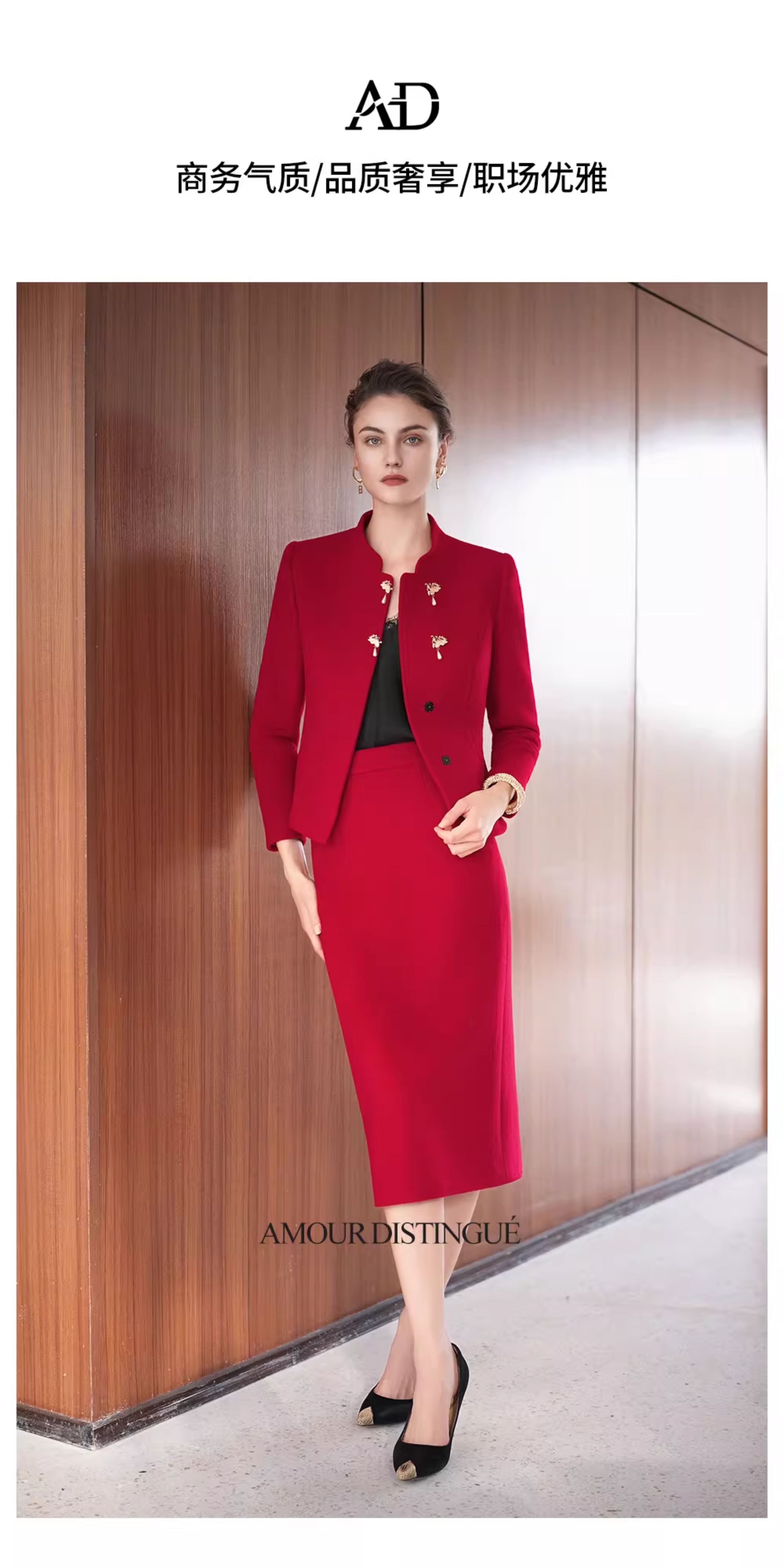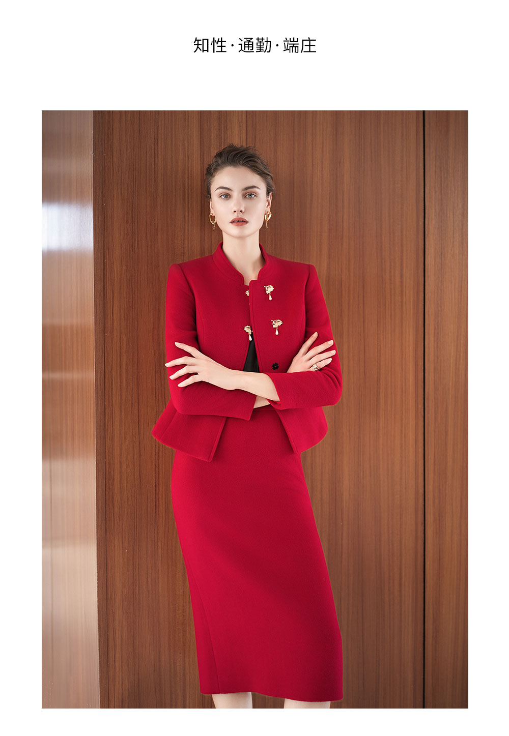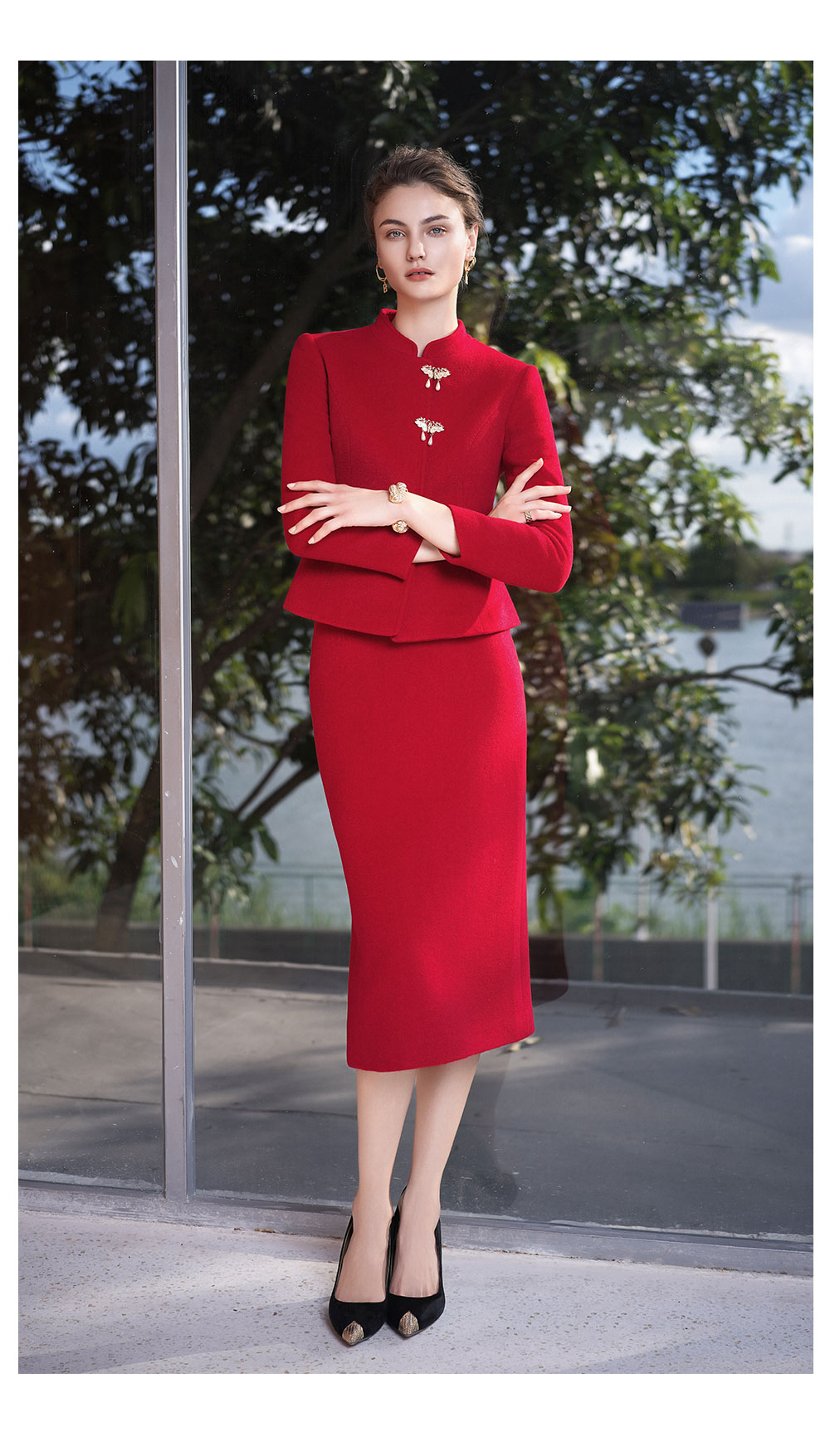 AD时尚套装裙女羊毛秋冬2025年新款优雅修身新中式婚宴装两件套裙