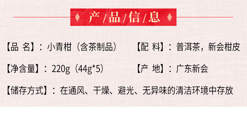 益柑柠丨新会小青柑 礼盒装 220g(44g*5)送礼大气 新旧包装随机发货
