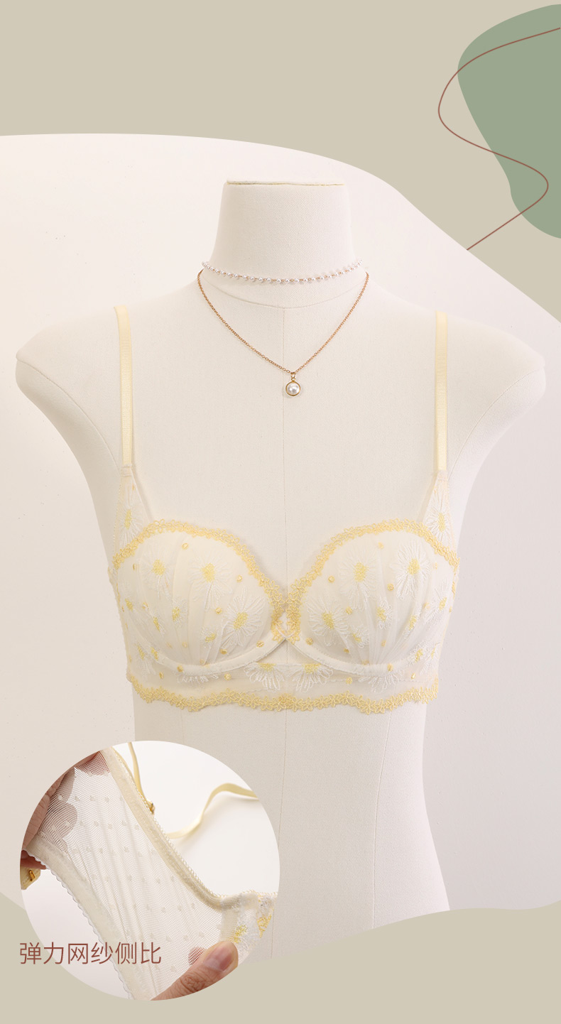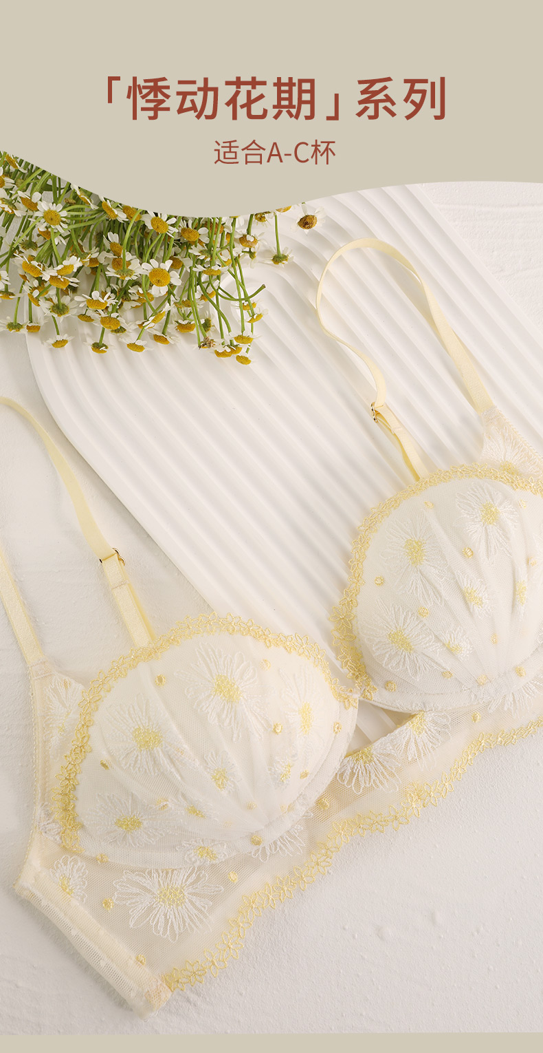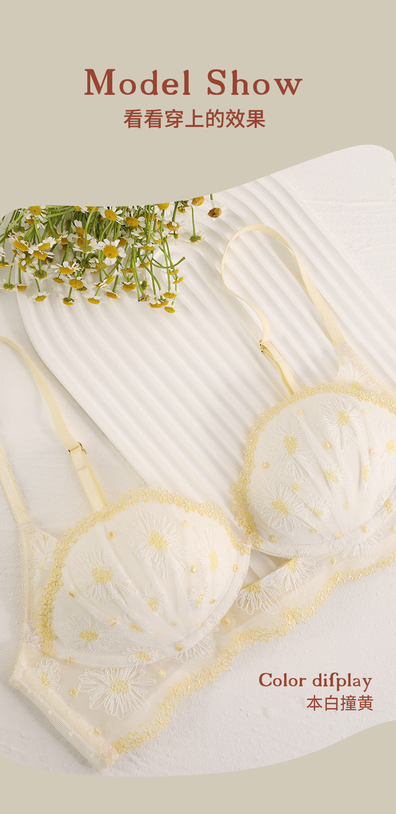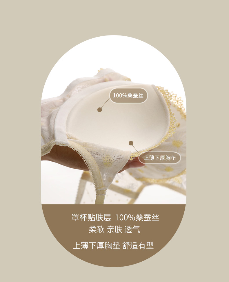 金三塔悸动花期法式蕾丝刺绣内衣女小胸聚拢撞色真丝文胸薄套装 NZFDA397
