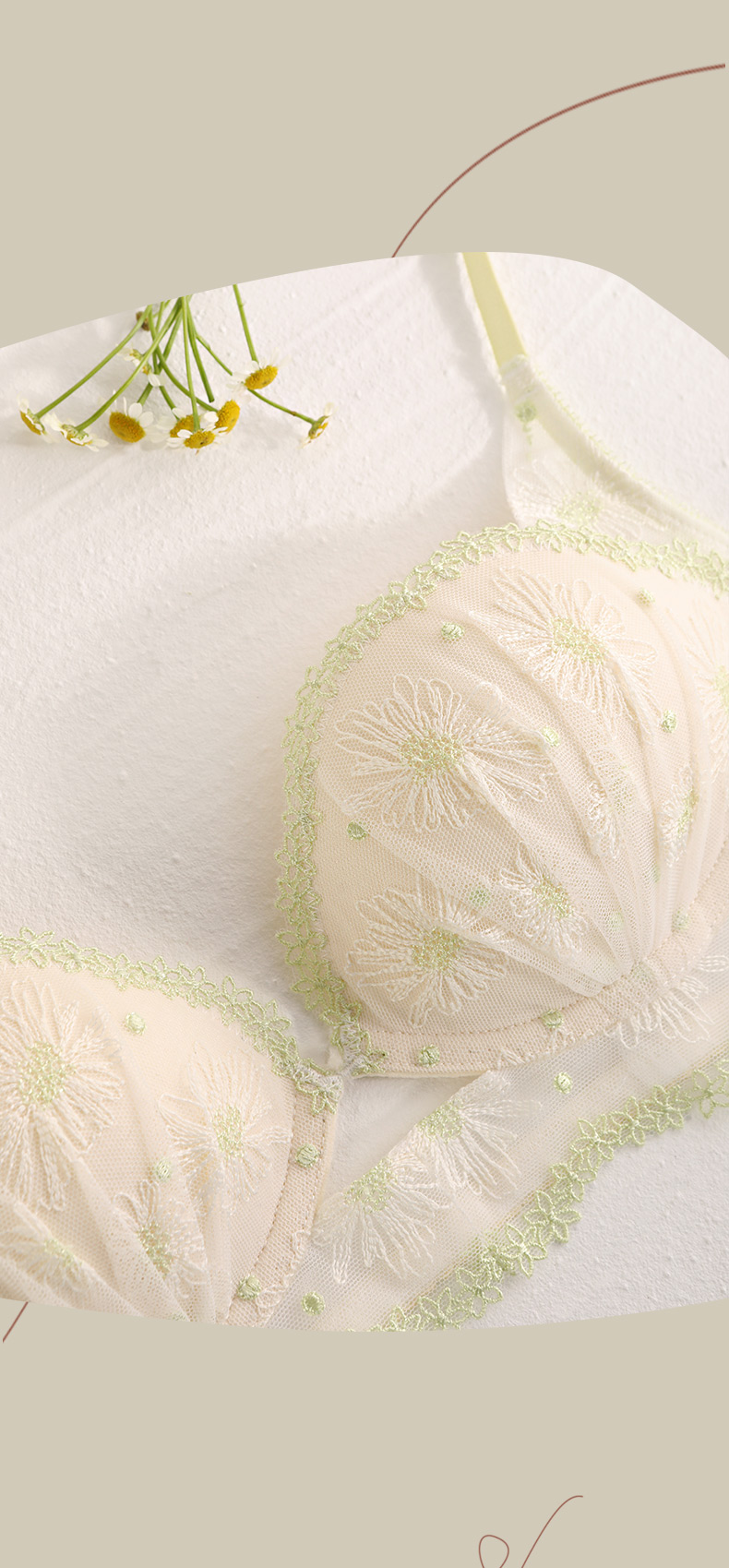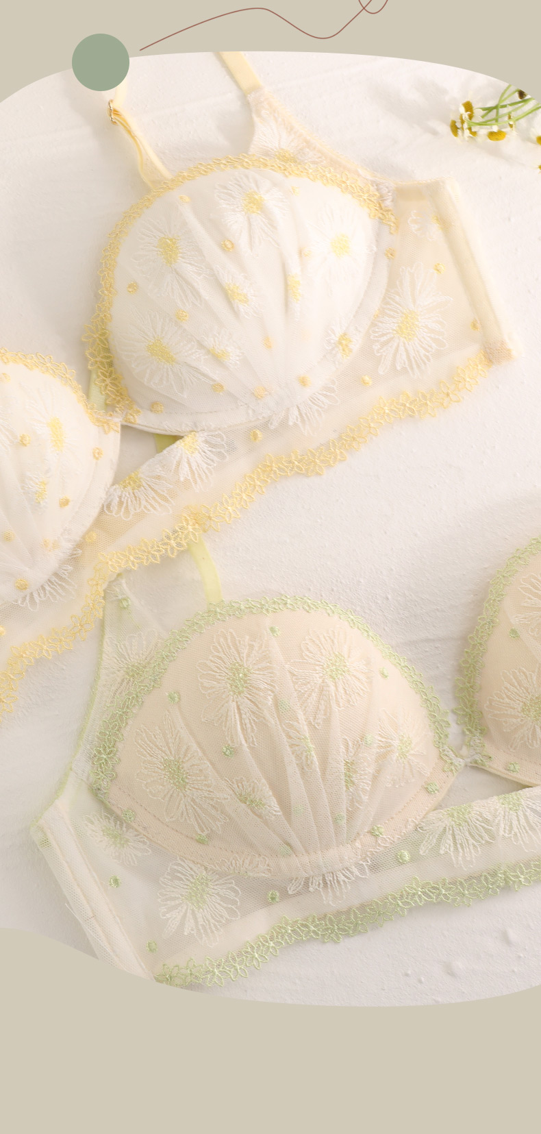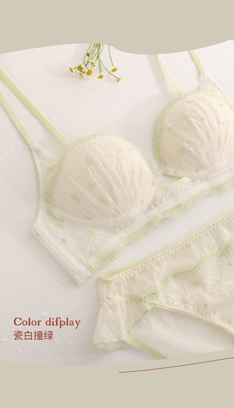 金三塔悸动花期法式蕾丝刺绣内衣女小胸聚拢撞色真丝文胸薄套装 NZFDA397