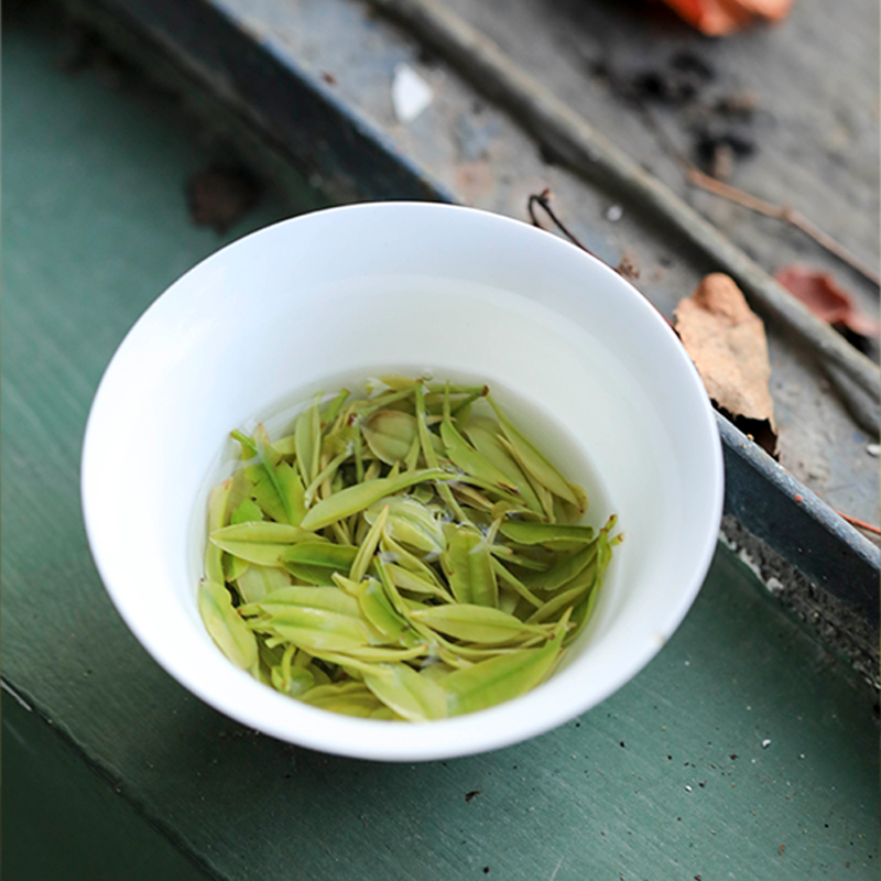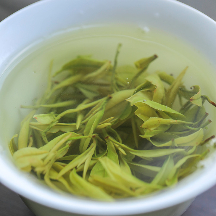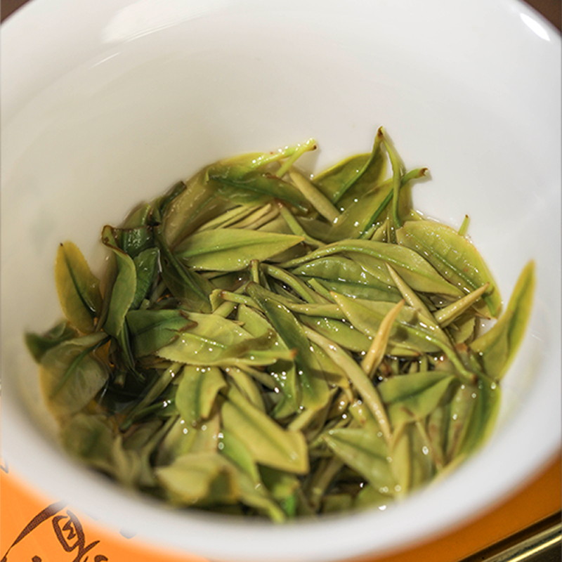 黄金芽,鲜叶金黄,茶干亮黄,茶汤明黄,叶底鹅黄,由于产量稀少,被誉为“茶中大熊猫”