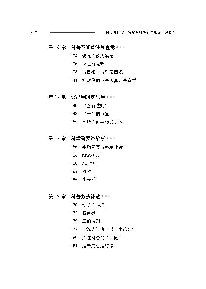 « 揭示科学传播的真正内涵,分析科普的实用价值与社会影响,探讨科普与科研的张力,解读科学传播中的直觉误区与应对方法,提出科普实践的创新路径与策略,剖析科学传播的难点与挑战。