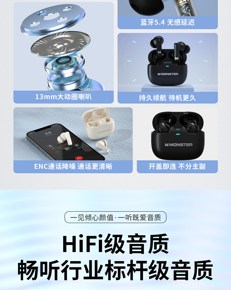 MONSTER魔声GT17无线蓝牙耳机|无线束缚,HiFi级音质