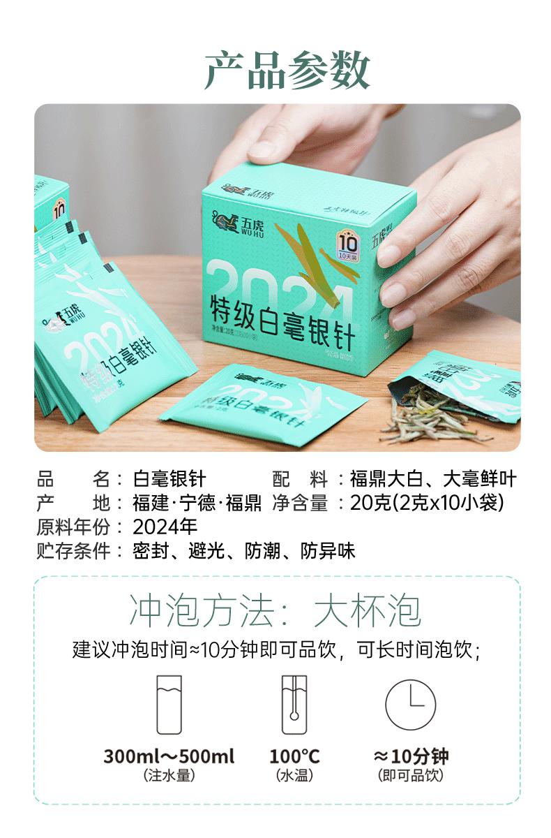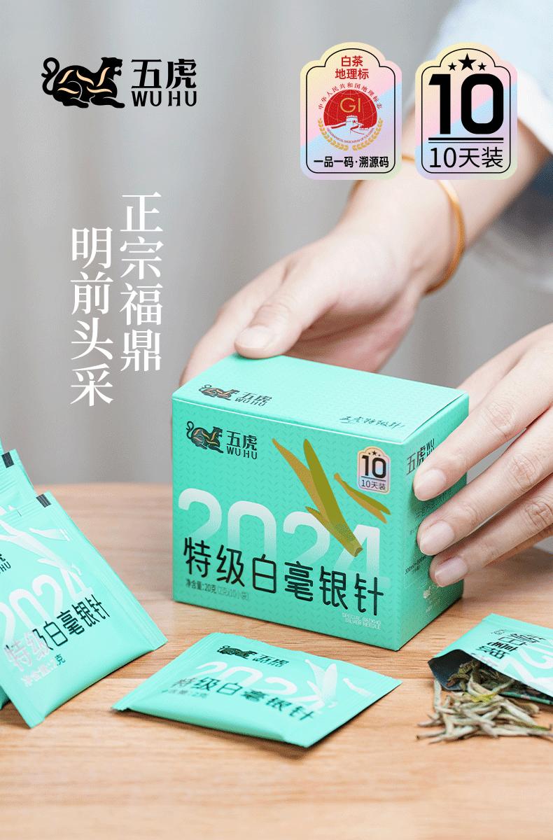 【年货】茶叶 白毫银针 白茶 春茶 福鼎白茶 茶饮 五虎 20g(10天装)