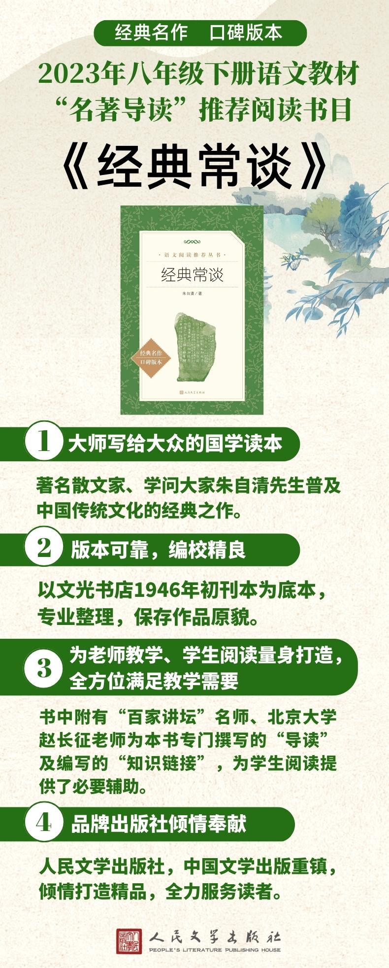 这样一本看似简单的小书,倾注了朱自清先生许多的心血和对后学的殷殷关爱。叶圣陶先生在1980年写的《重印〈经典常谈〉序》中这样评论道:“朱先生逝世已经三十二年,重看这本书,他的声音笑貌宛然在面前,表现在字里行间的他那种嚼饭哺人的孜孜不倦的精神,使我追怀不已,痛惜他死得太早了。”他这种可贵的精神,值得我们细细体会,更值得我们认真学习,代代传承。我们期待着,有更多的读者通过《经典常谈》来亲近我们的经典古籍和传统文化;我们也期待着,有更多像《经典常谈》这样优秀的普及著作面世。