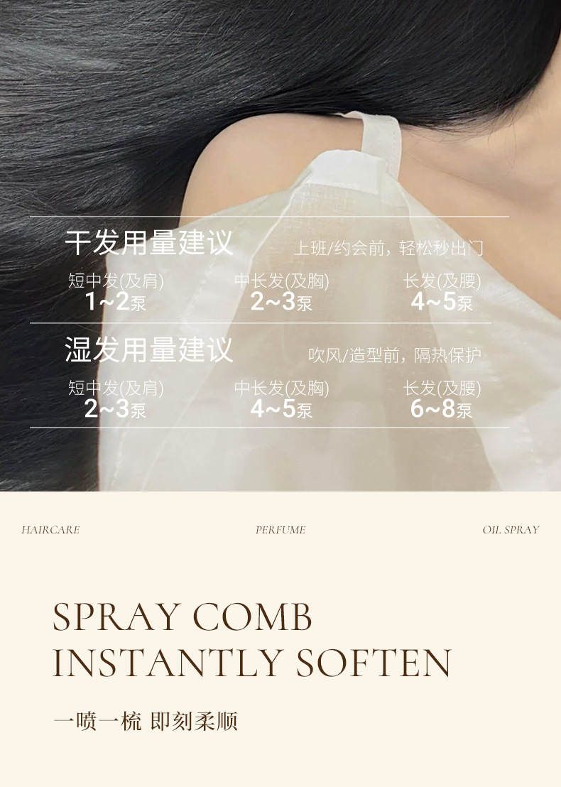 【香水润泽护发精油喷雾】香水级泵头,一喷化雾0油感,内养外护水润莹亮,改善干燥脆损,精油喷雾修护烫染受损持久留香精油护发QQ