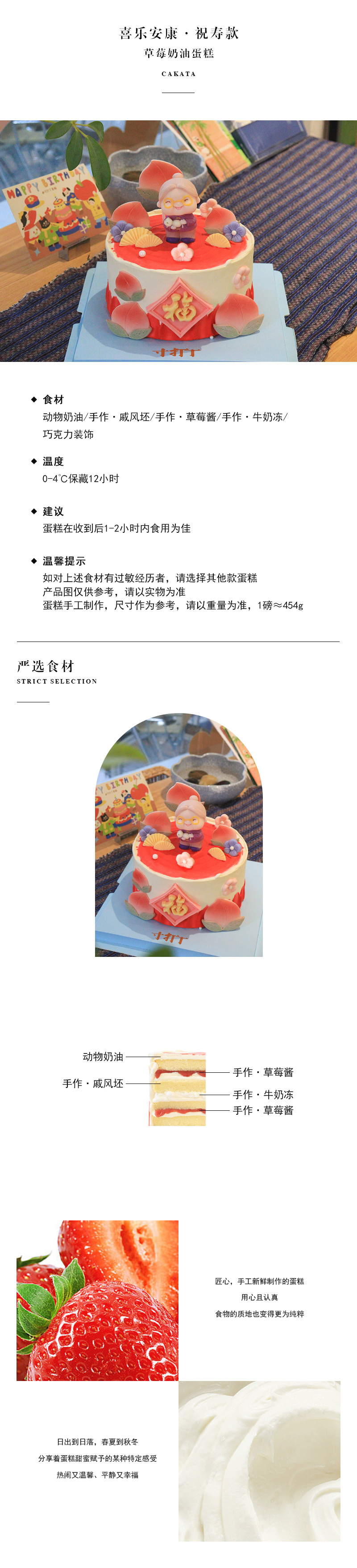 喜乐安康/祝寿款·草莓奶油蛋糕(可备注少糖)