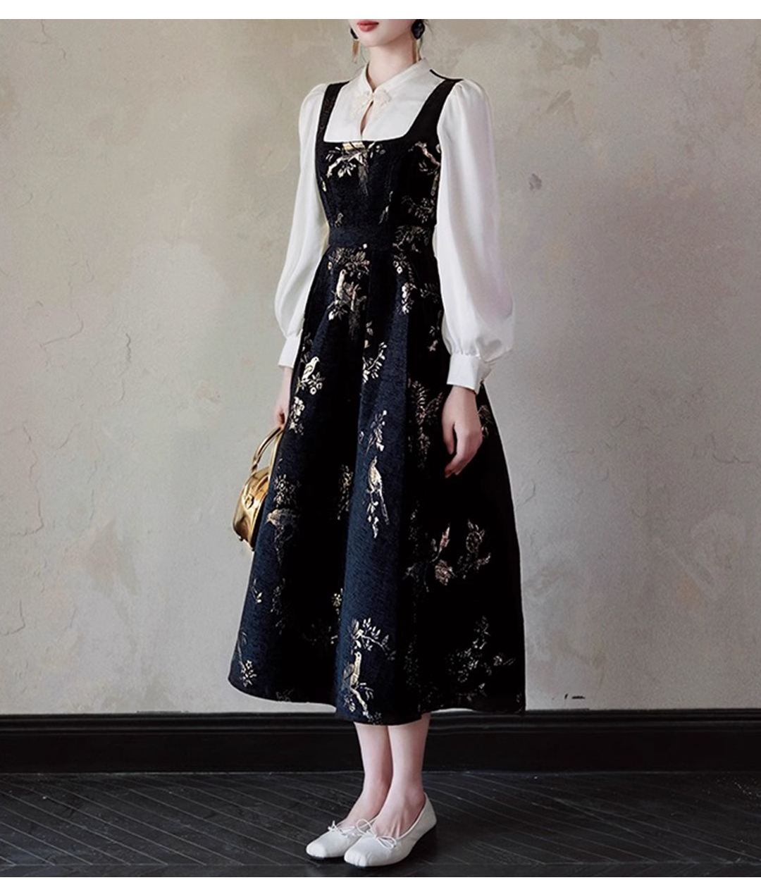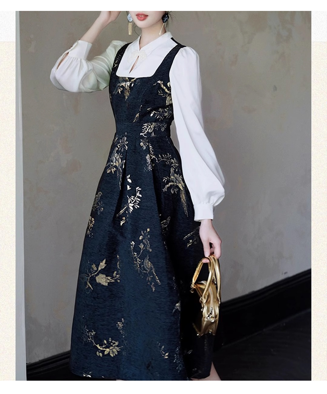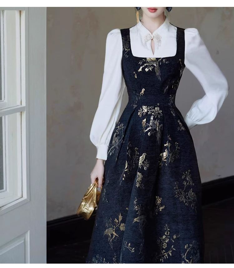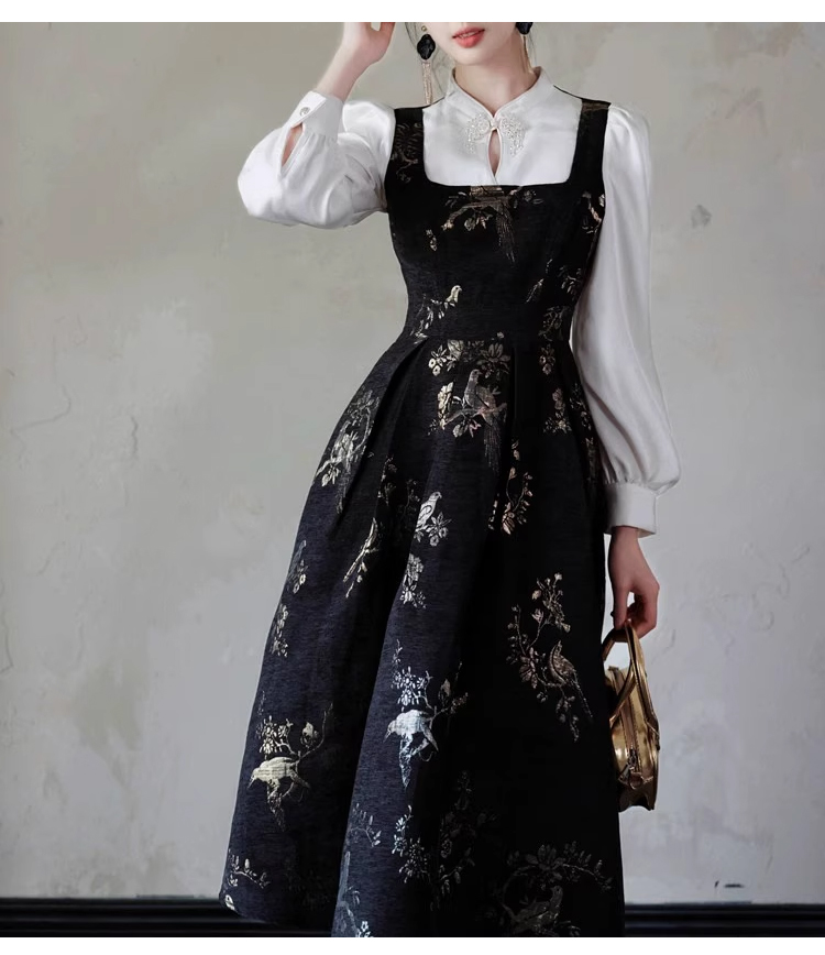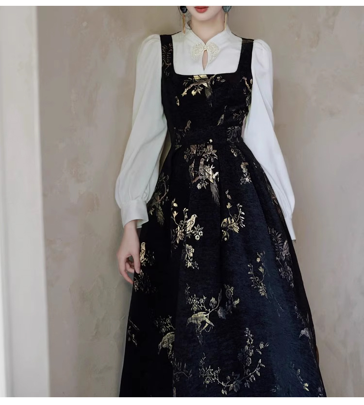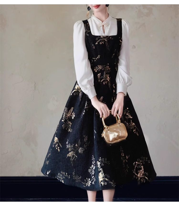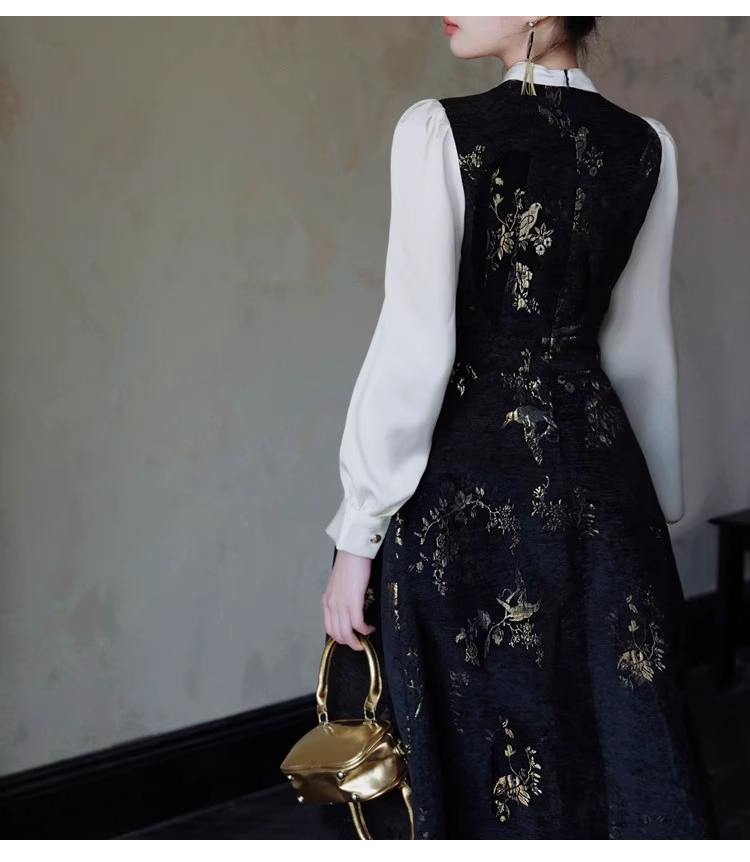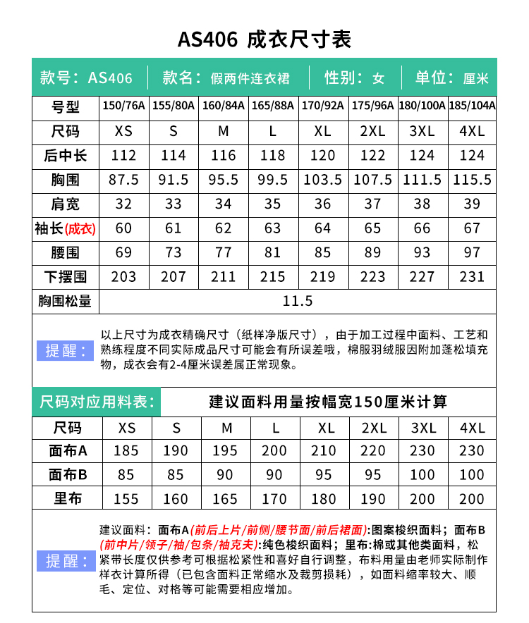 裁缝学苑AS406新中式国风假两件连衣裙纸样女装收腰复古长裙子样板打板