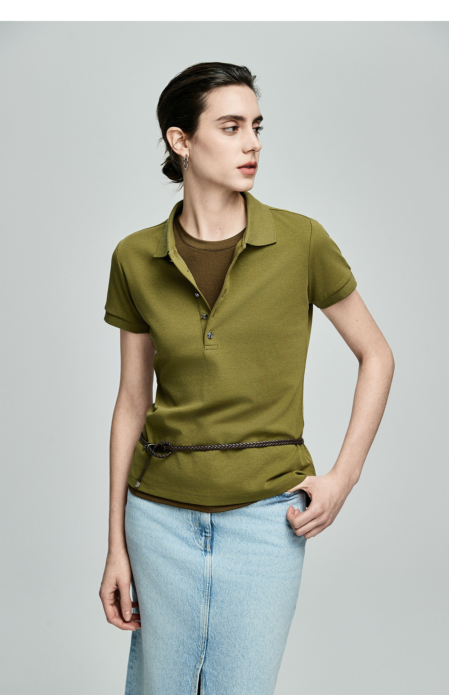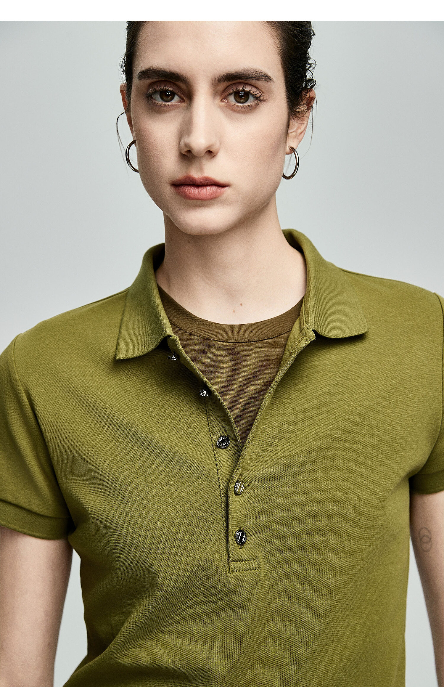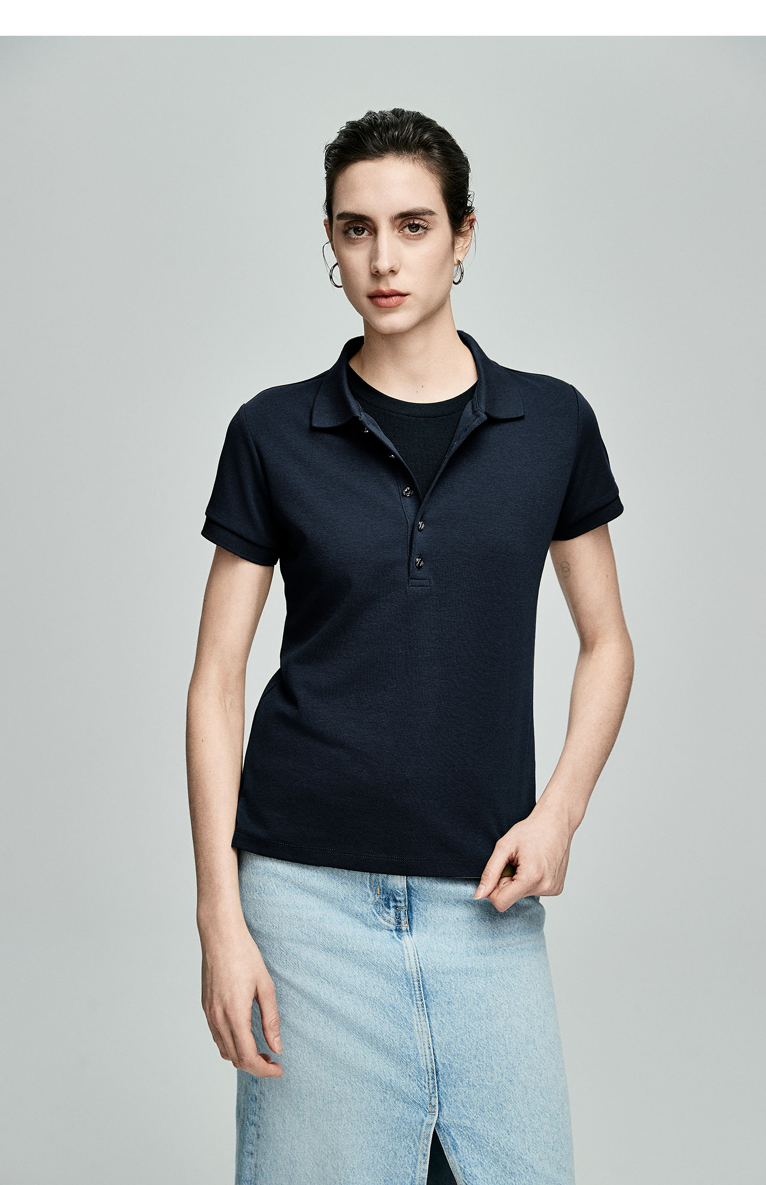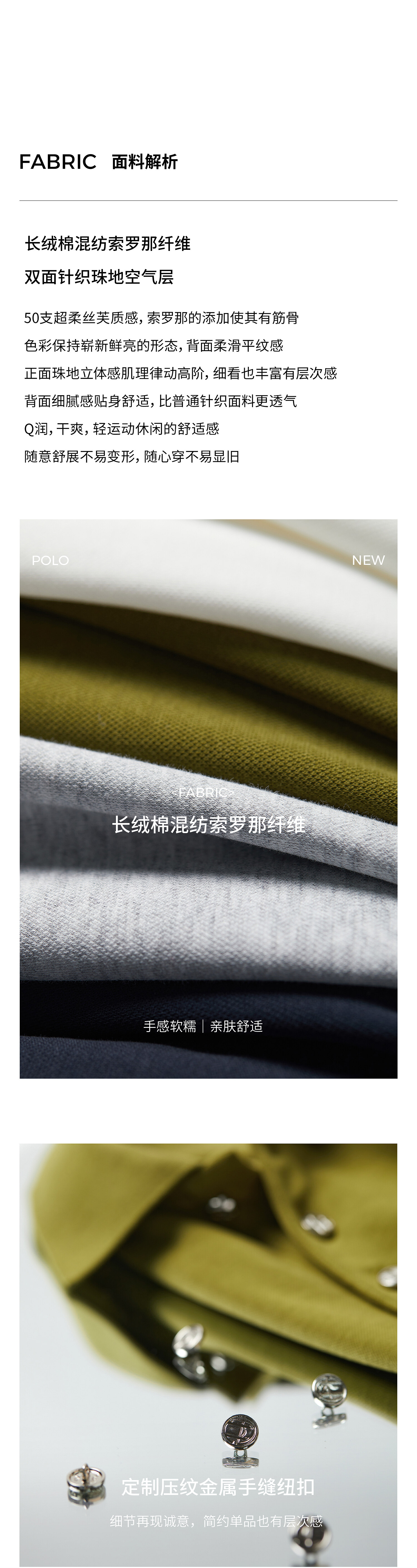 棉仓362601014-初棉50支丝芙珠地POLO法式银扣合体微修身POLO衫