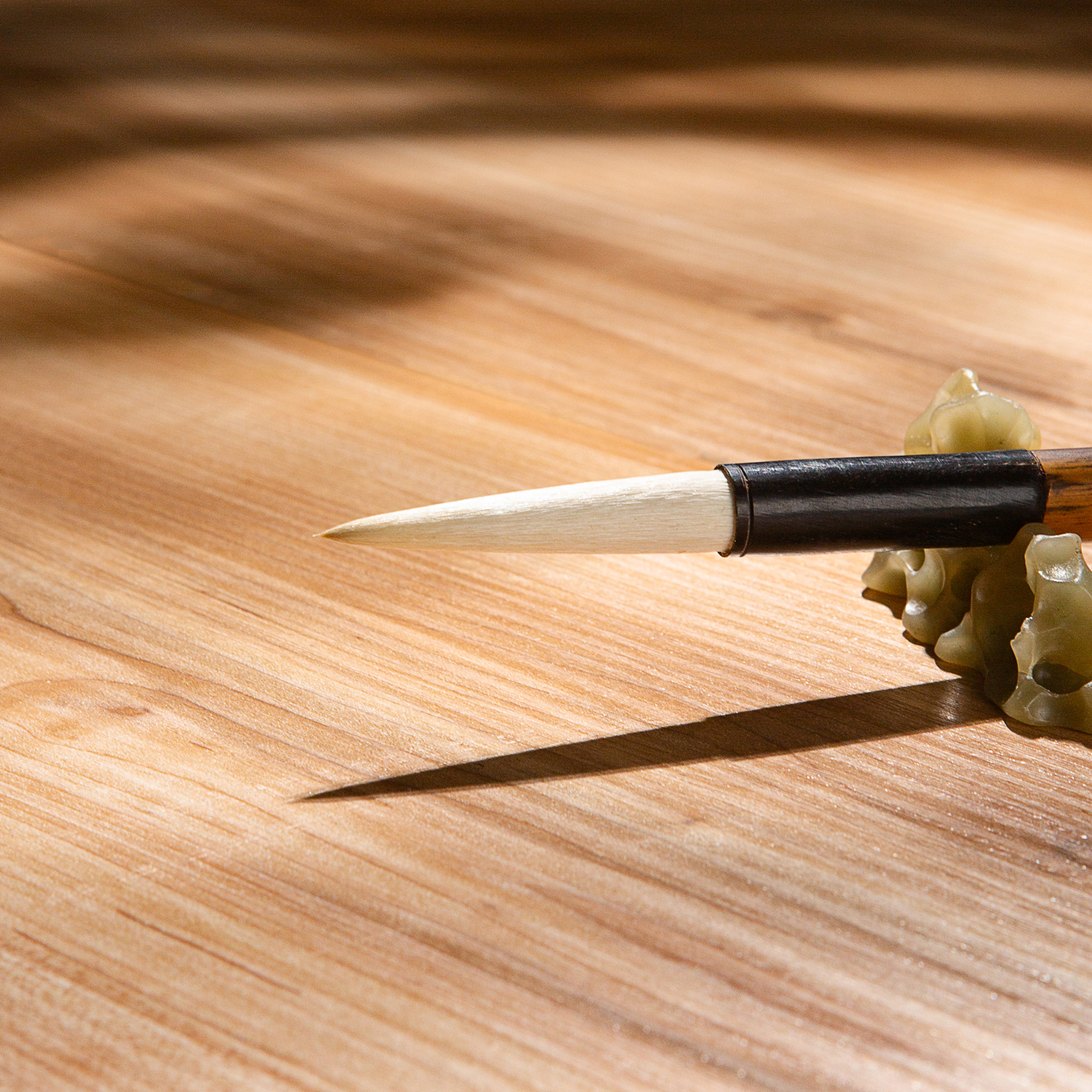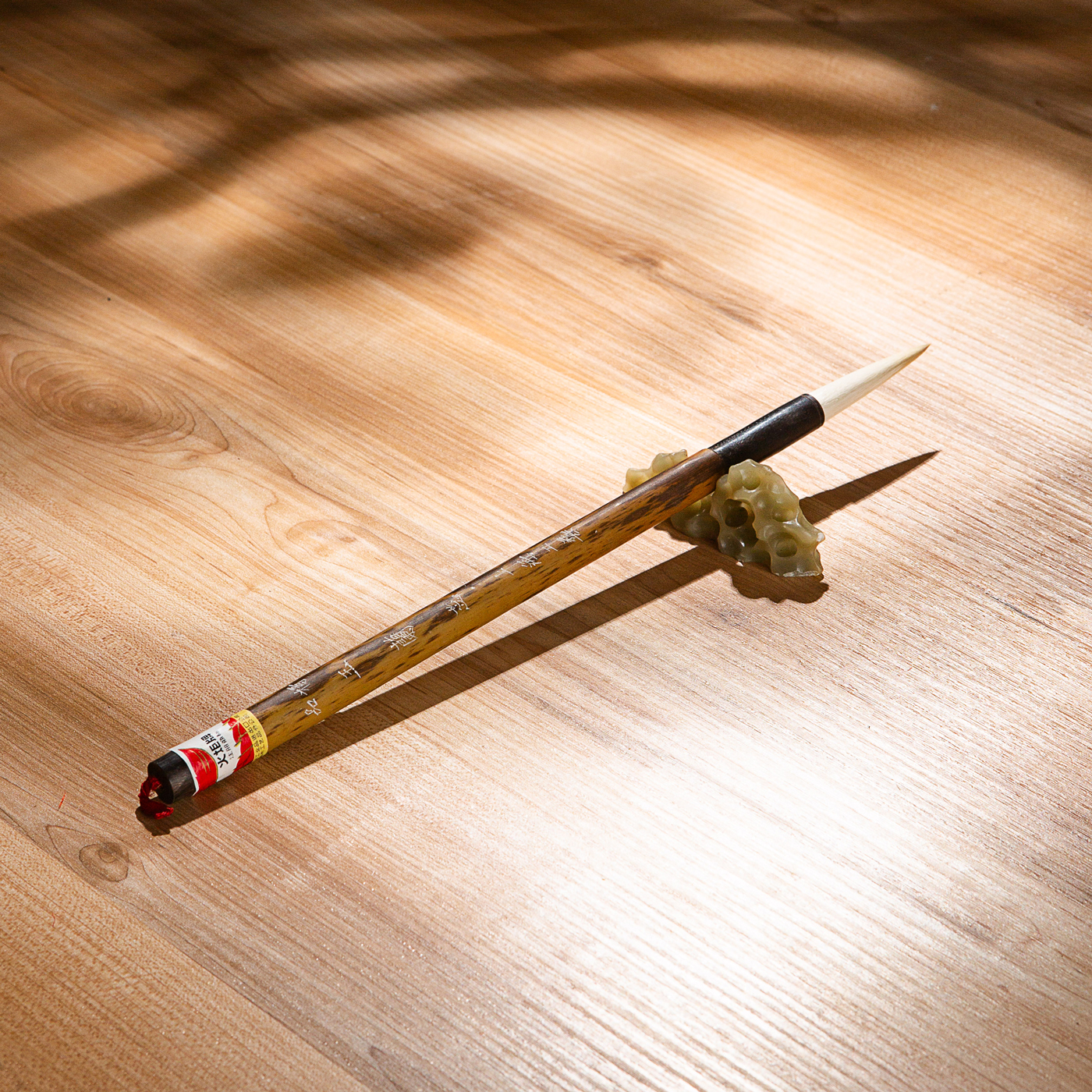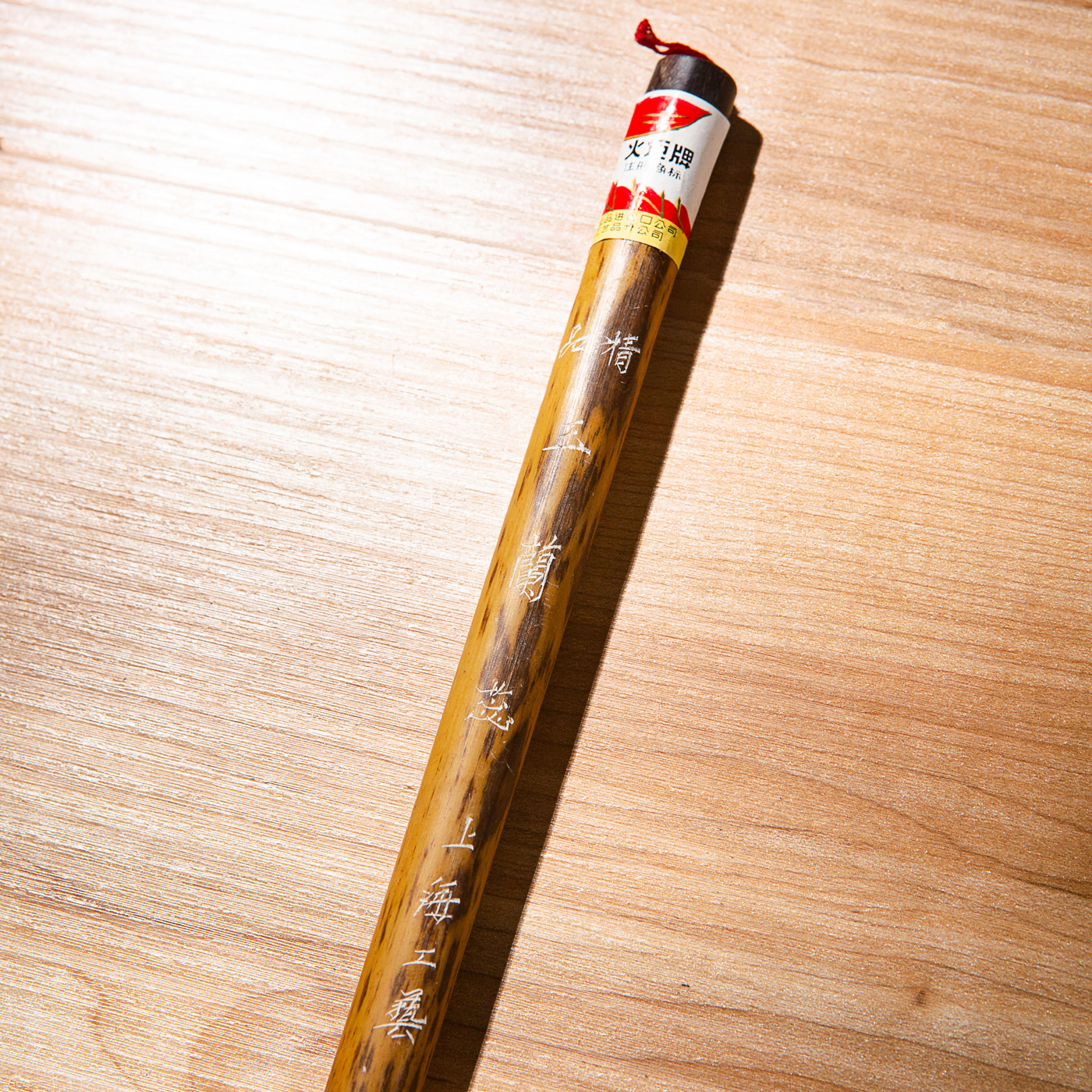 80年代火炬牌“精品玉兰蕊”老毛笔,笔锋用料为优质细嫩光锋,传统老工艺精制,“尖圆齐健”俱备,优质竹杆,手工刻字。此笔为知名好笔,存世少有,极为难得。